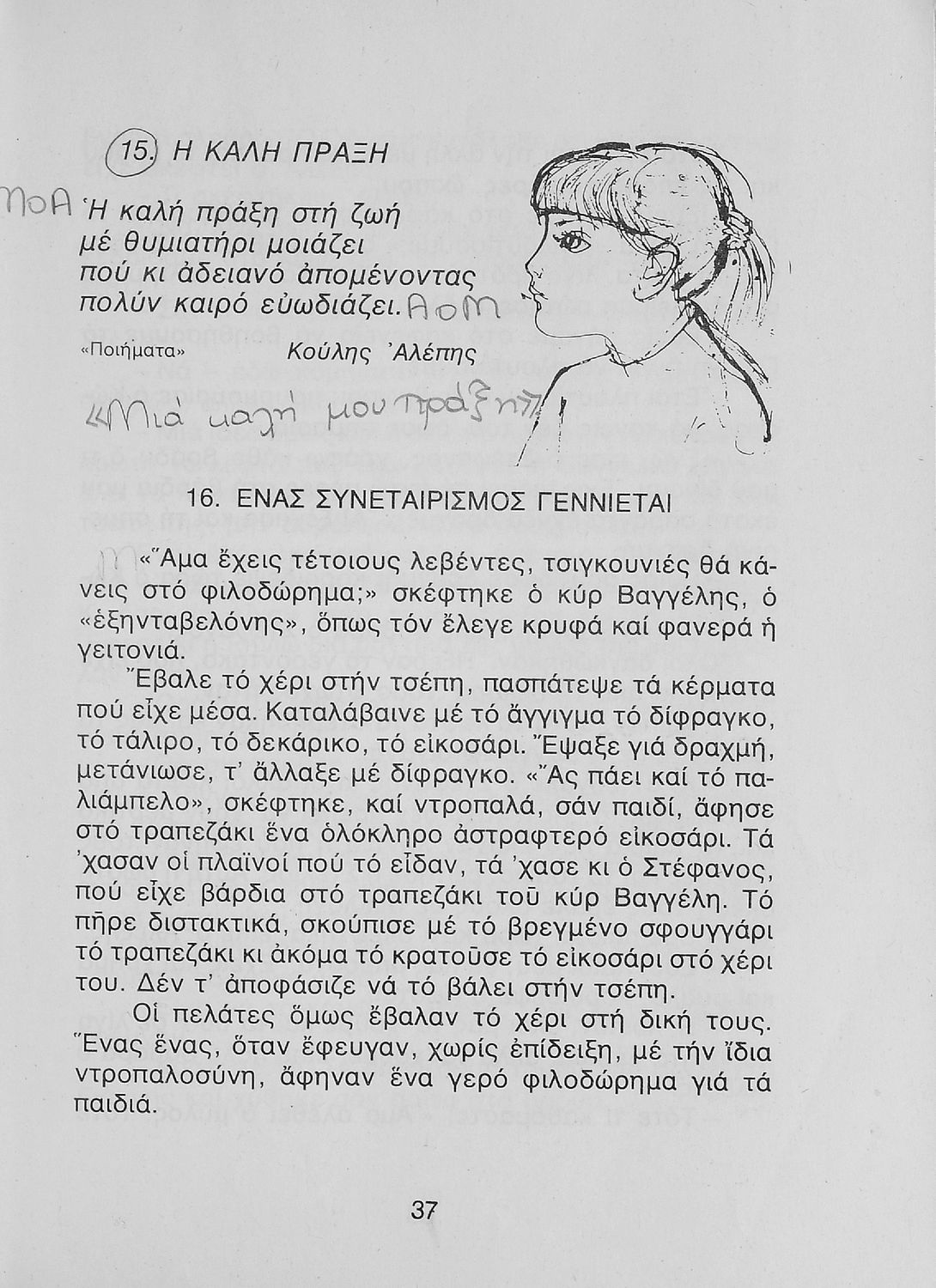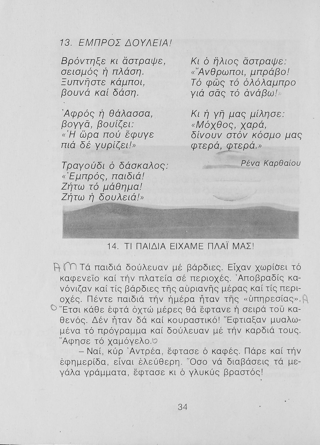 Αναγνωστικό για την Δ΄ τάξη του Δημοτικού. Περιλαμβάνει ένα κείμενο στο οποίο παρεμβάλλονται ποιήματα δημοτικά και Ελλήνων ποιητών.