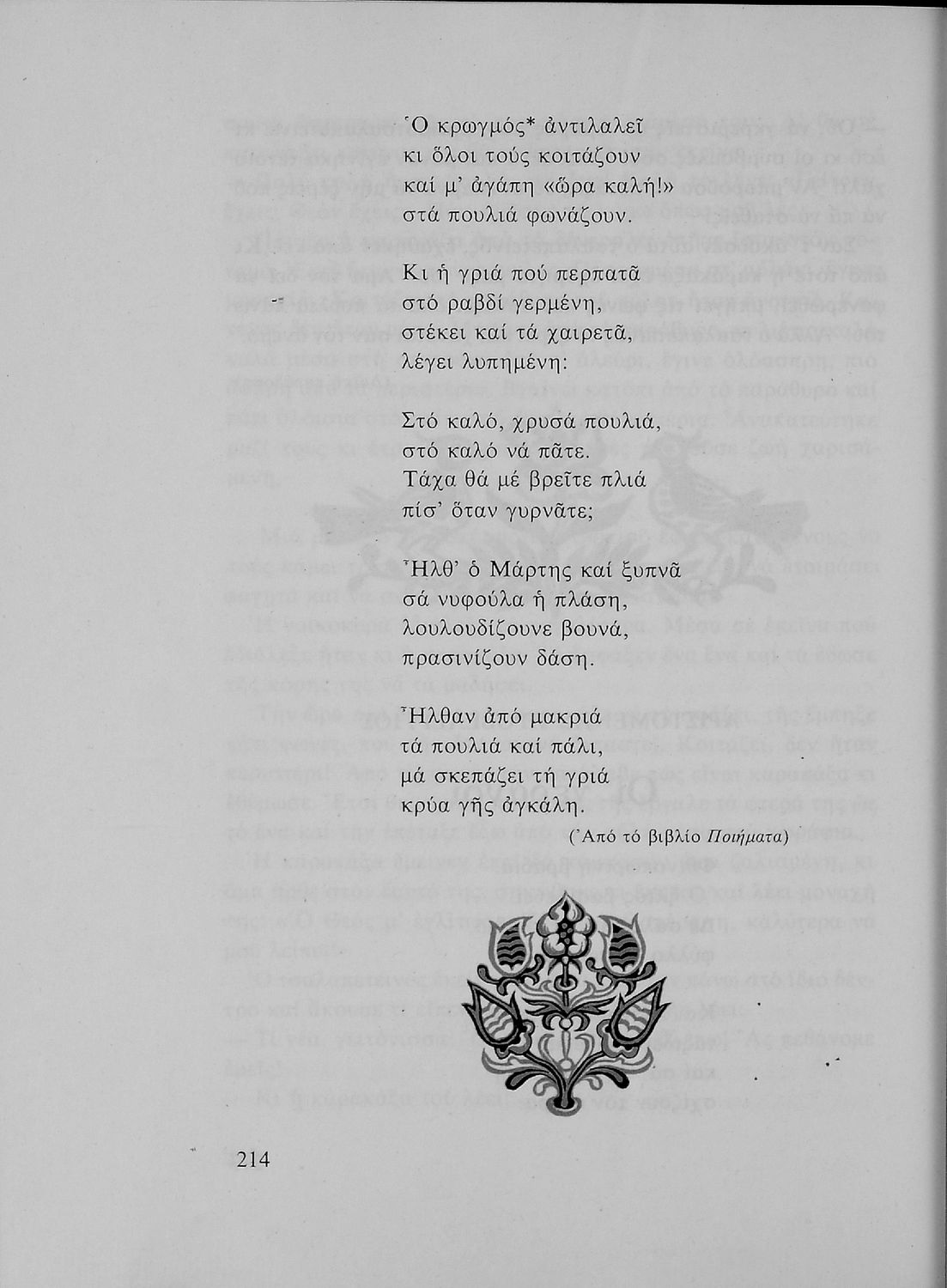 Αναγνωστικό που περιλαμβάνει πεζά και ποιήματα της νέας ελληνικής λογοτεχνίας για τους μαθητές του Δημοτικού. Το βιβλίο είναι αφιερωμένο στη μνήμη του Ζαχαρία Παπαντωνίου και αναδημοσιεύει αρκετά κείμενα από ...