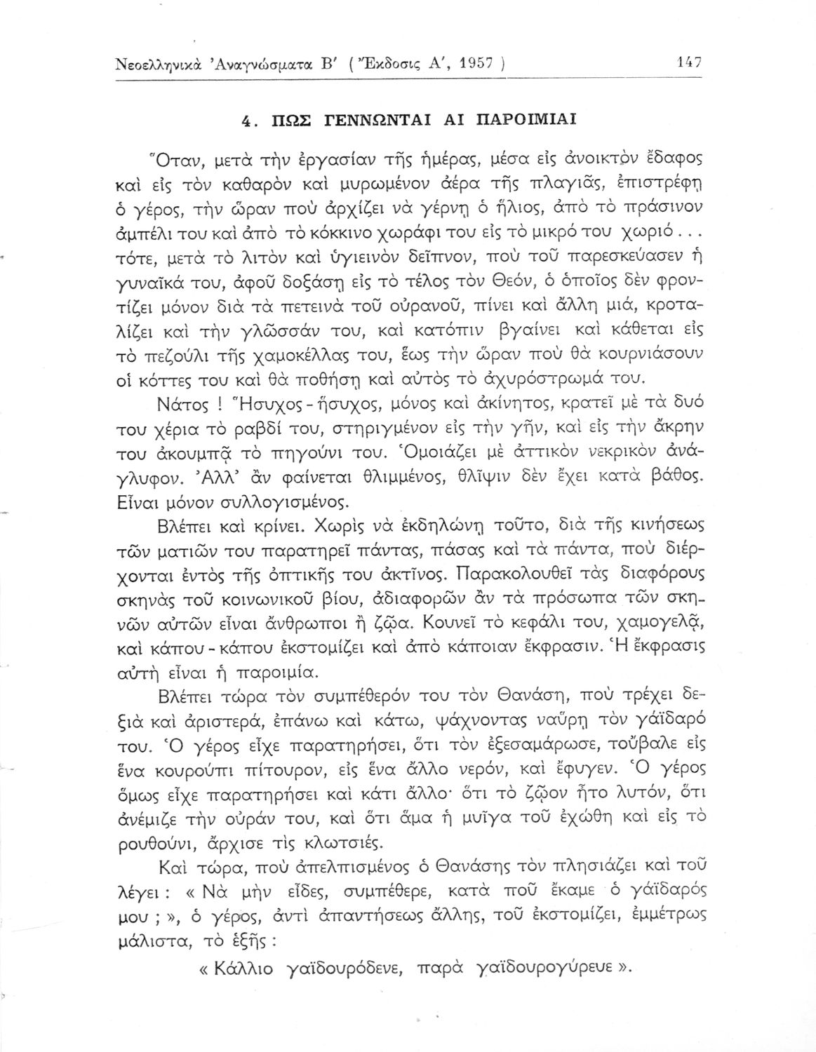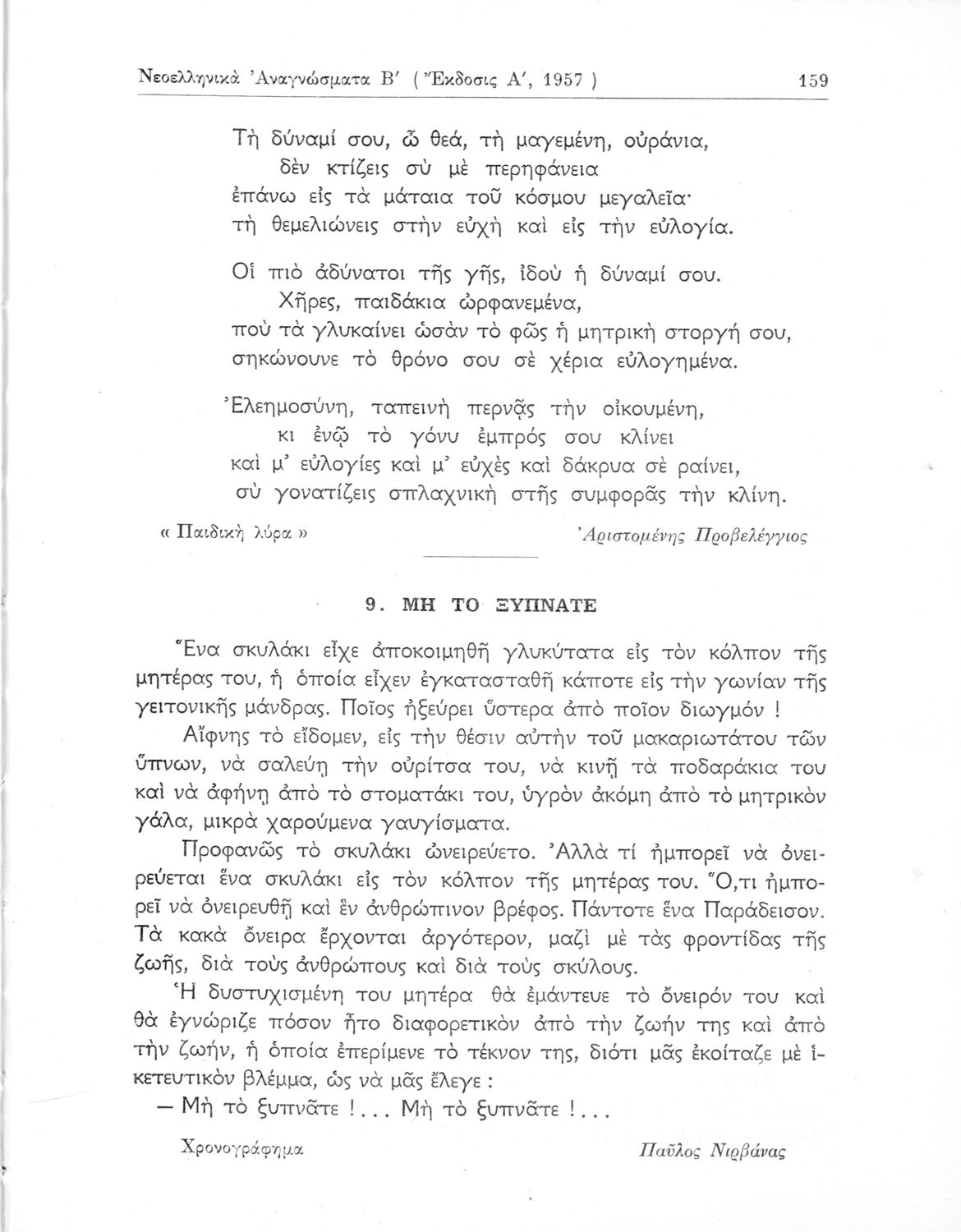 Σχολικό εγχειρίδιο Νέων Ελληνικών Δ΄ Γυμνασίου και Β΄ Αστικού Σχολείου που περιέχει πεζά και ποιήματα Ελλήνων συγγραφέων εμπνευσμένα από τη θρησκευτική και κοινωνική ζωή, την ελληνική μυθολογία, την αρχαία και