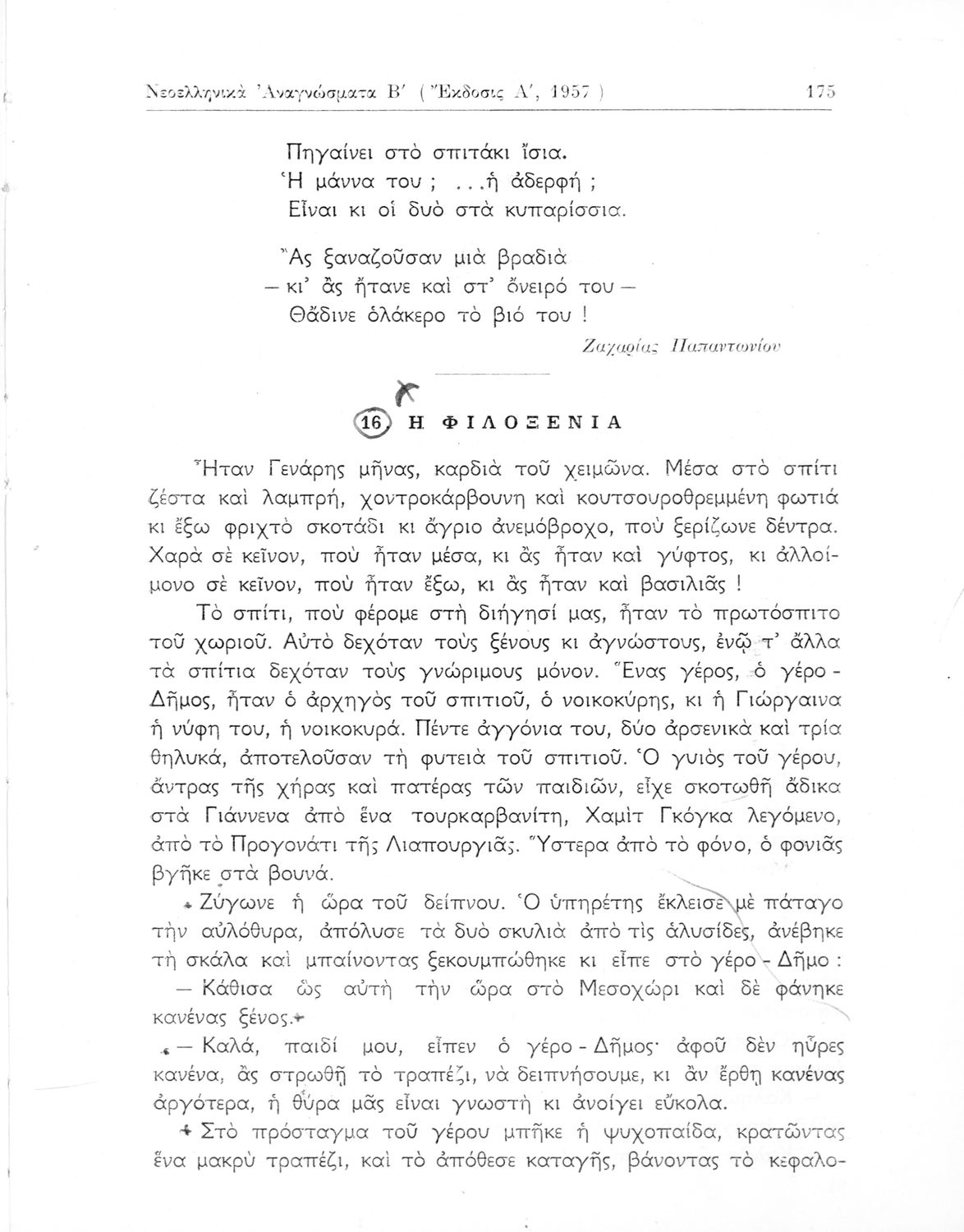 Σχολικό εγχειρίδιο Νέων Ελληνικών Δ΄ Γυμνασίου και Β΄ Αστικού Σχολείου που περιέχει πεζά και ποιήματα Ελλήνων συγγραφέων εμπνευσμένα από τη θρησκευτική και κοινωνική ζωή, την ελληνική μυθολογία, την αρχαία και