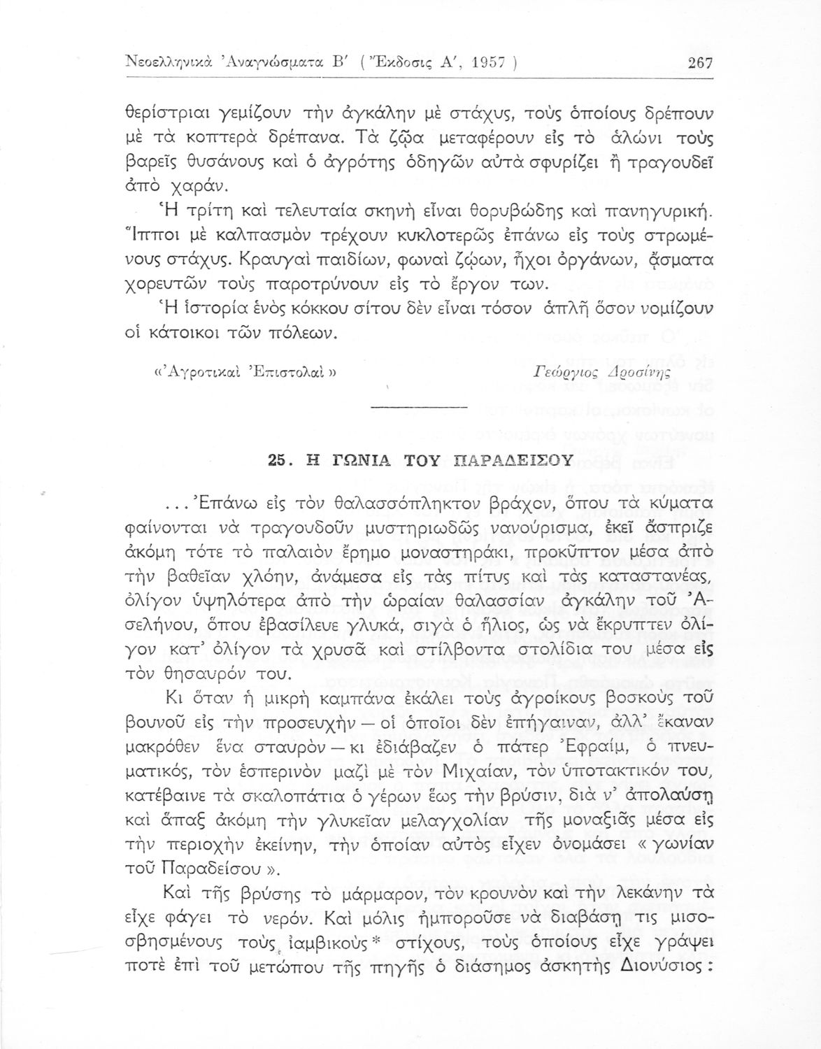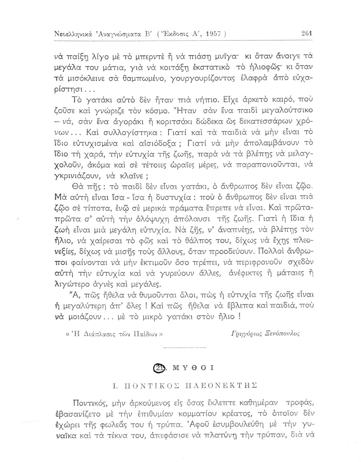 Σχολικό εγχειρίδιο Νέων Ελληνικών Δ΄ Γυμνασίου και Β΄ Αστικού Σχολείου που περιέχει πεζά και ποιήματα Ελλήνων συγγραφέων εμπνευσμένα από τη θρησκευτική και κοινωνική ζωή, την ελληνική μυθολογία, την αρχαία και