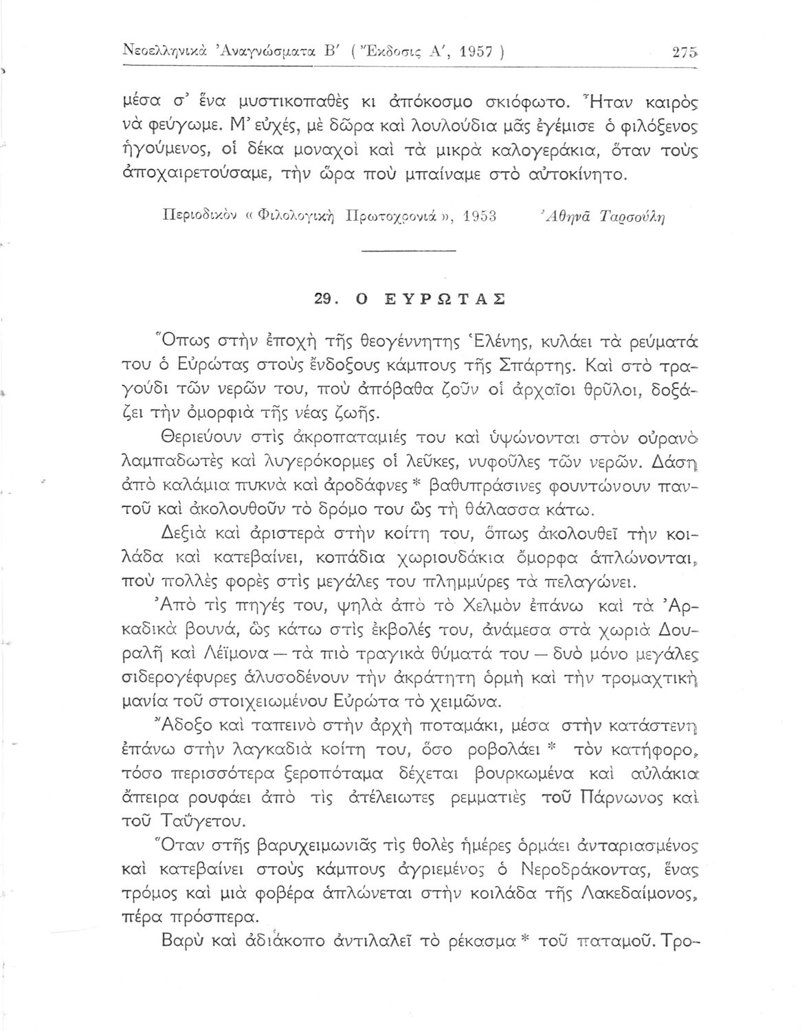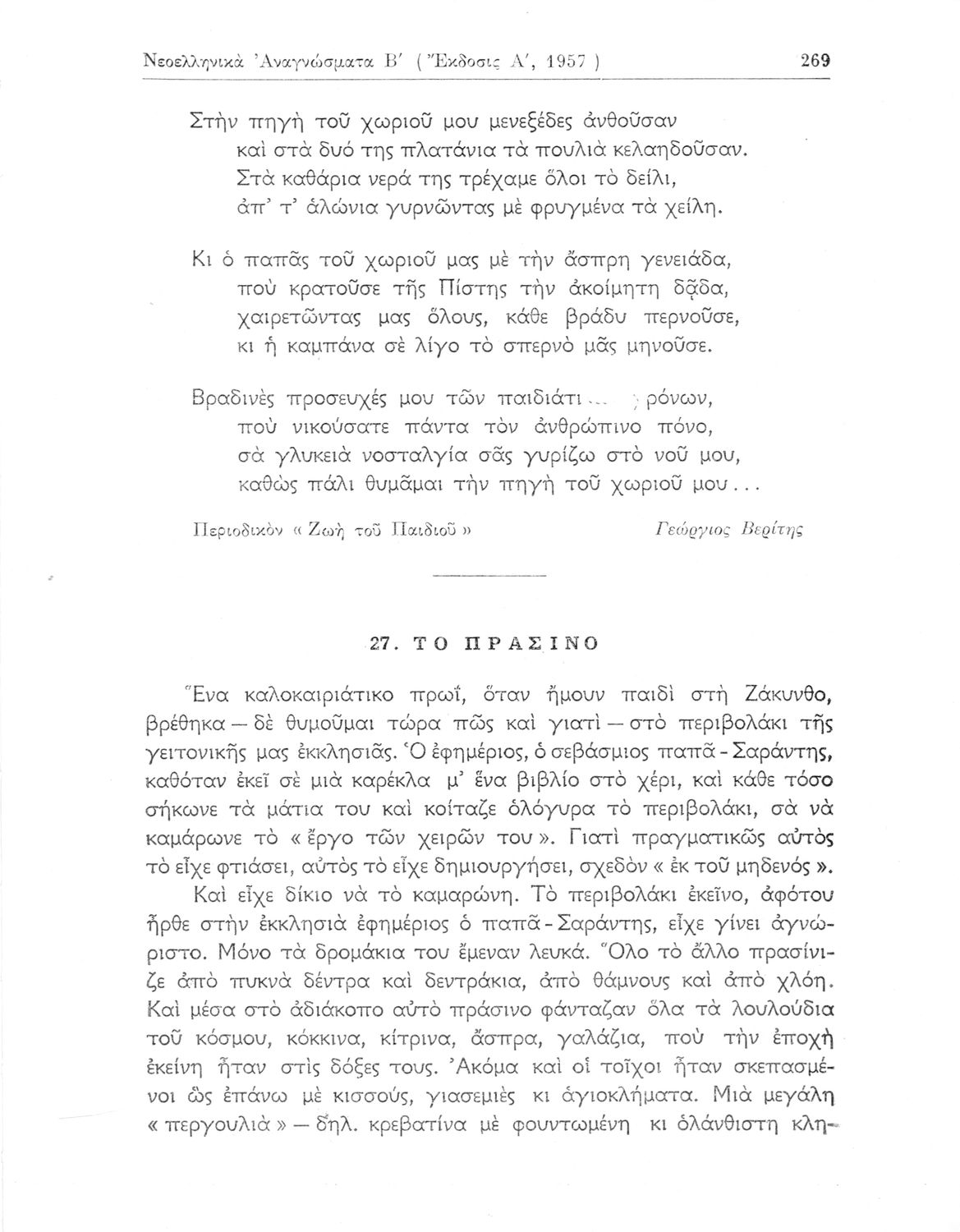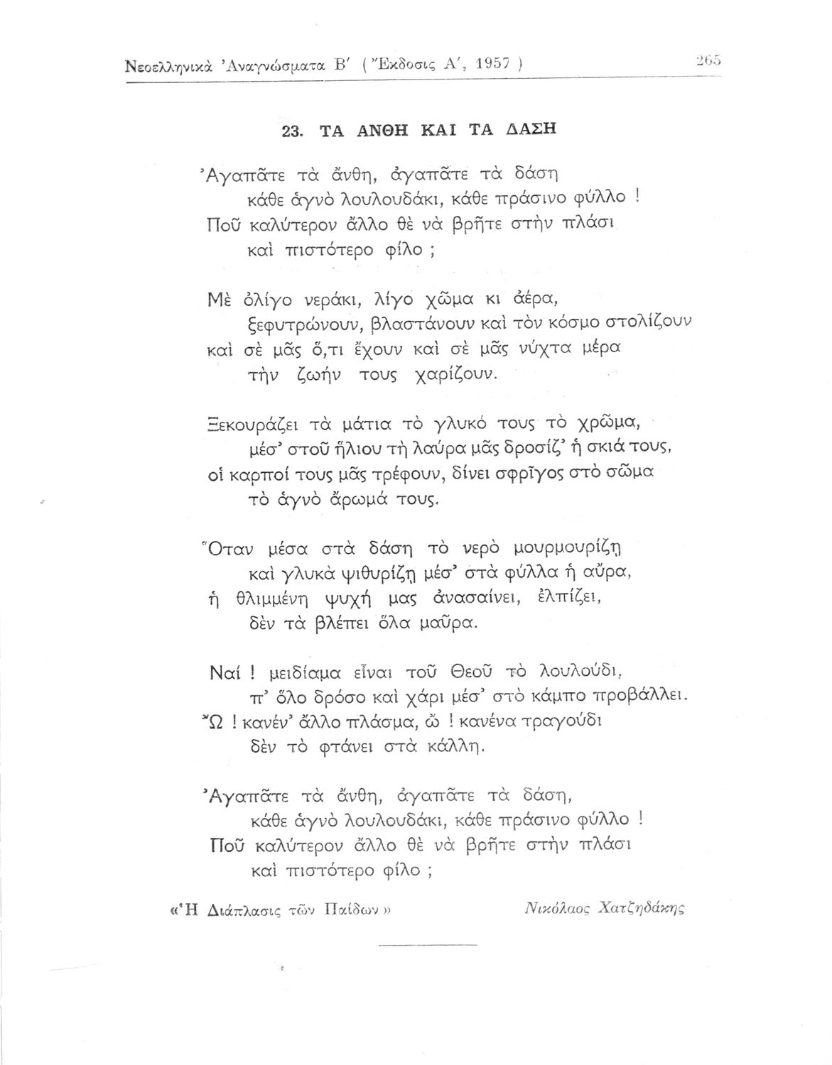 Σχολικό εγχειρίδιο Νέων Ελληνικών Β' Γυμνασίου που περιέχει ποιήματα και πεζά Ελλήνων συγγραφέων εμπνευσμένα από τη θρησκευτική, εθνική, οικογενειακή και κοινωνική ζωή και την ελληνική φύση. Περιέχει παράρτημα