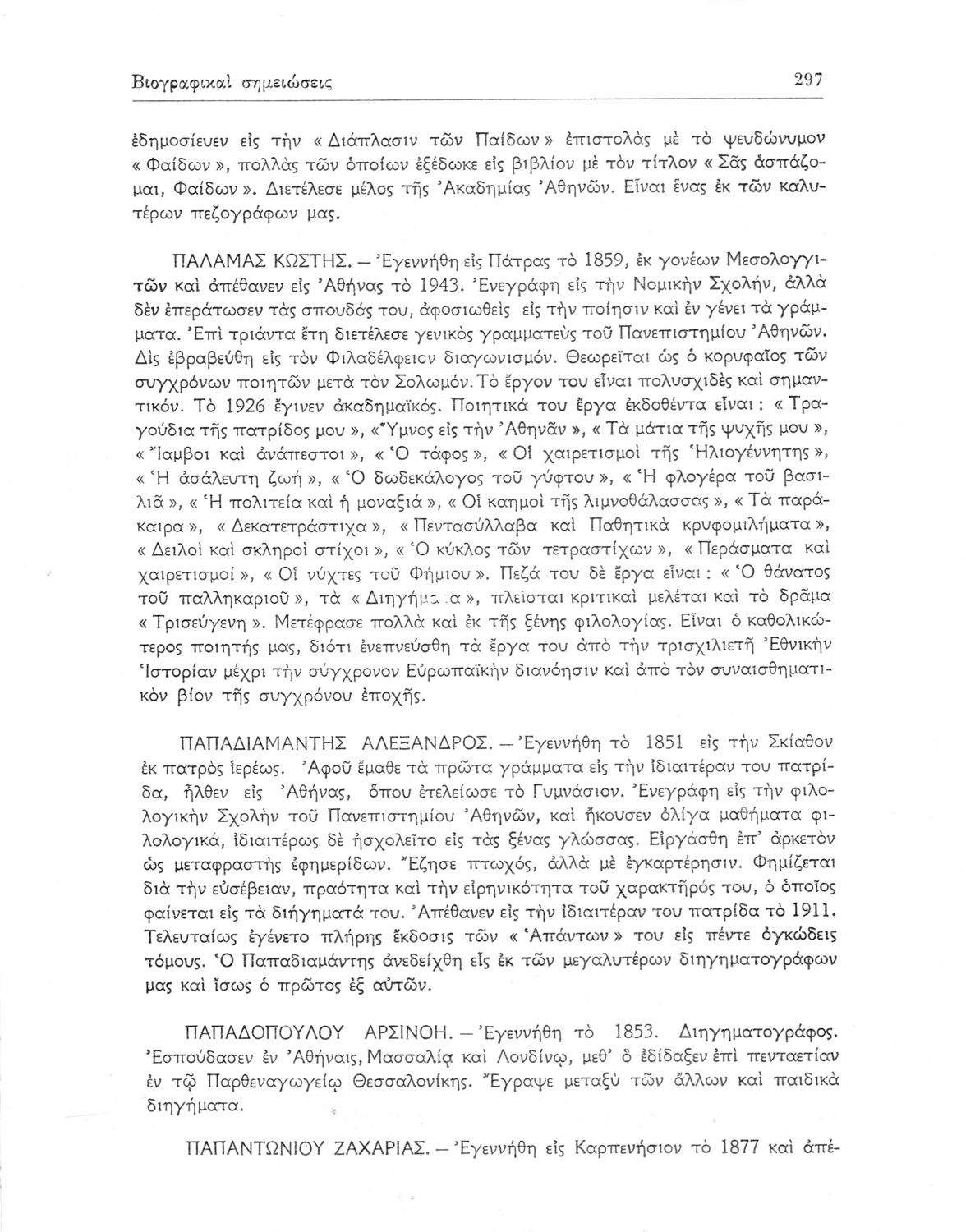 Σχετιζόμενοι όροι:  Βάμβας, Κοραής, Παλαμάς, Παπαδιαμάντης