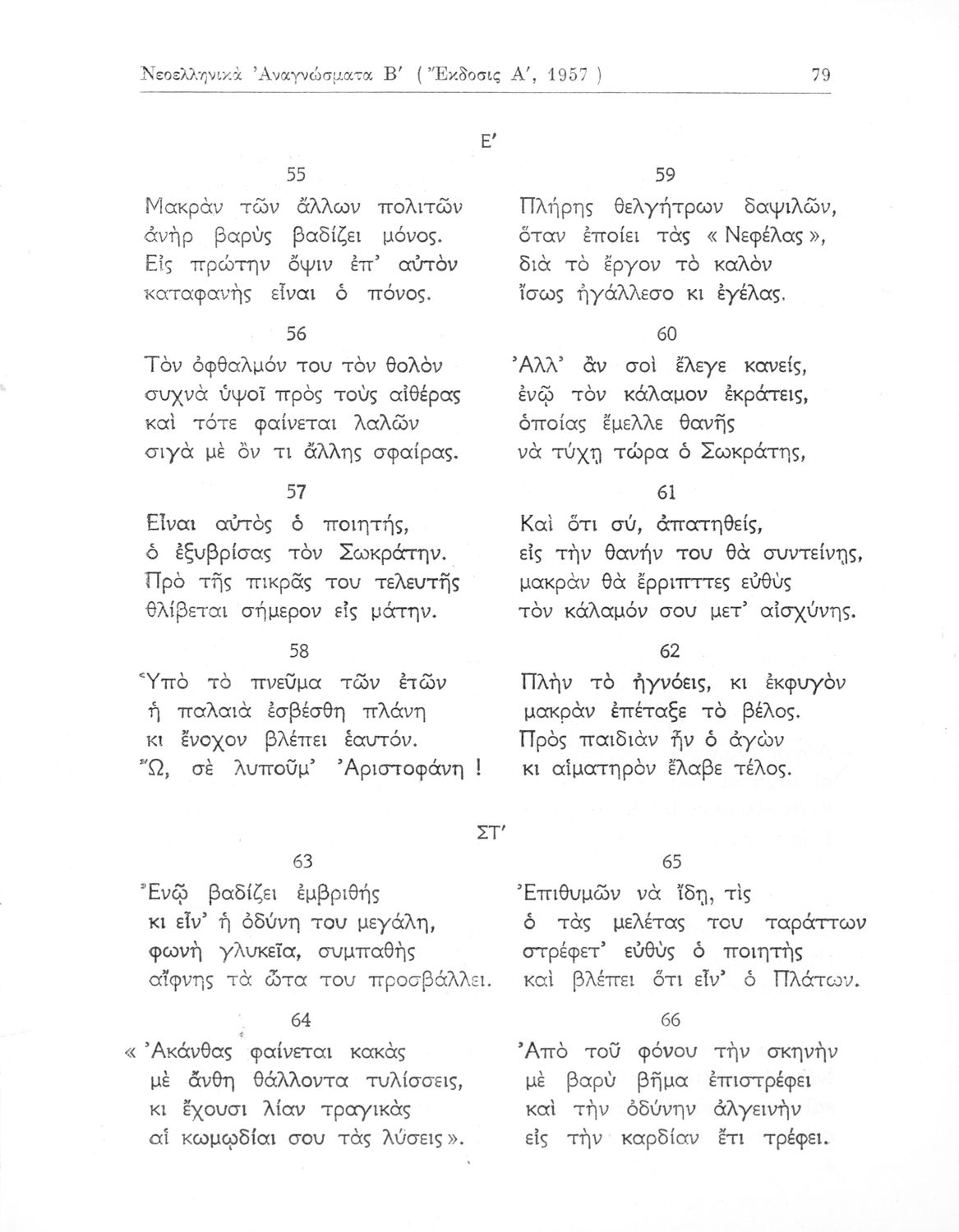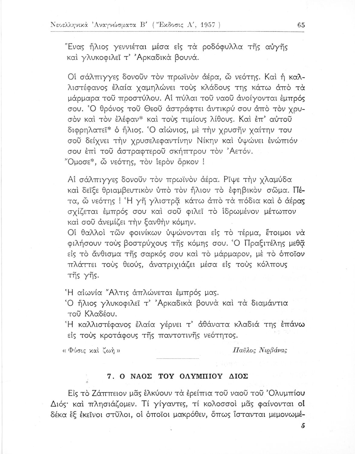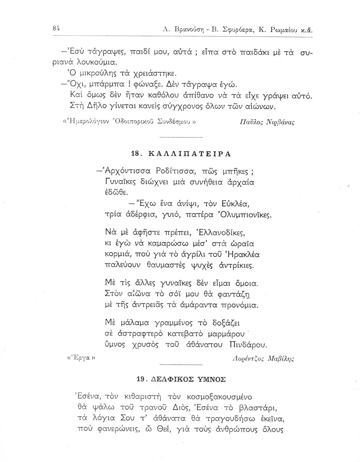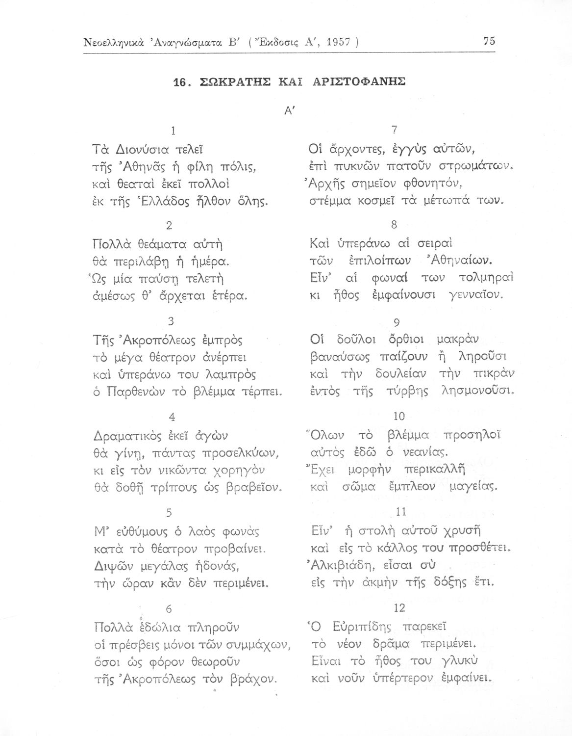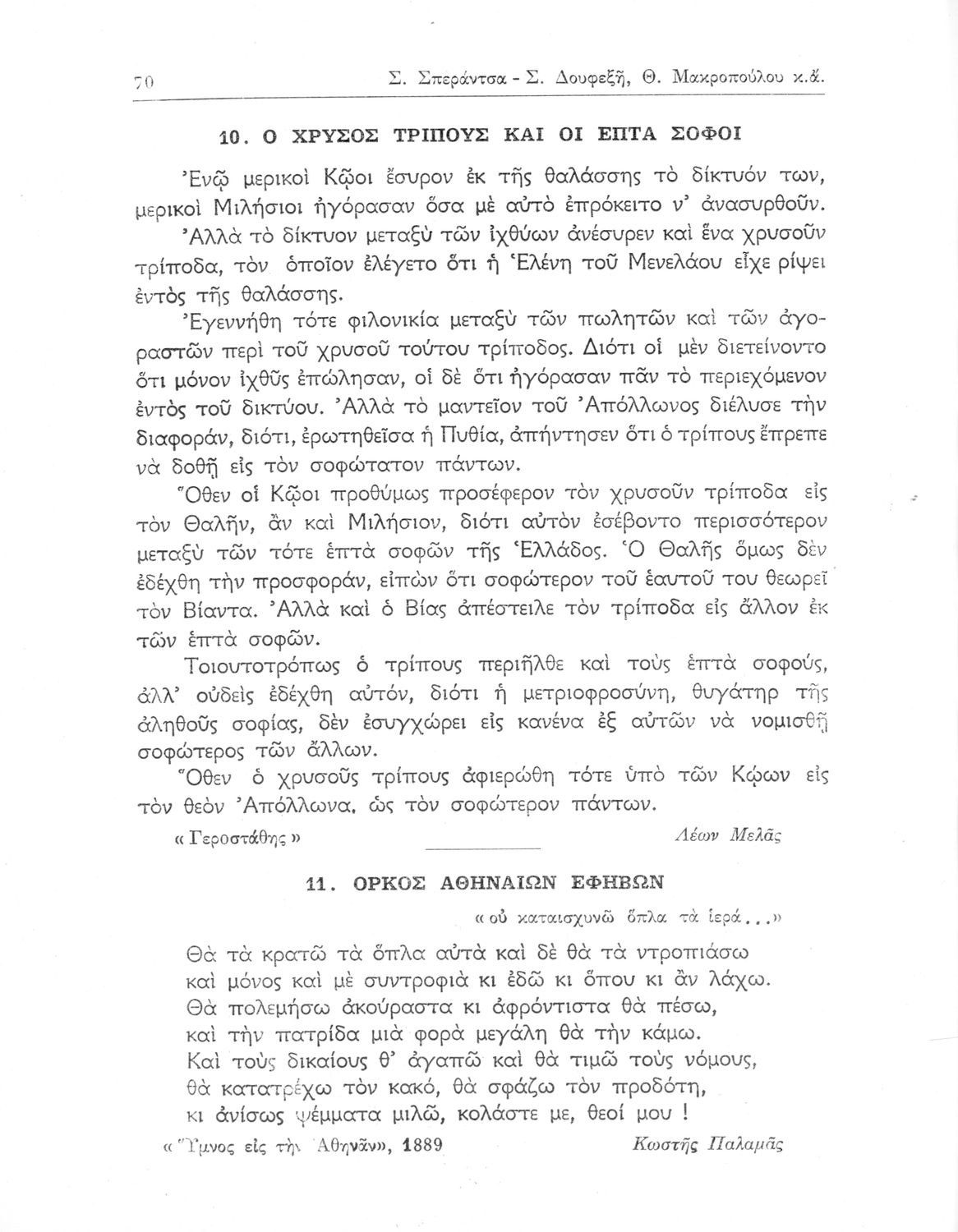 Σχολικό εγχειρίδιο Νέων Ελληνικών Δ΄ Γυμνασίου και Β΄ Αστικού Σχολείου που περιέχει πεζά και ποιήματα Ελλήνων συγγραφέων εμπνευσμένα από τη θρησκευτική και κοινωνική ζωή, την ελληνική μυθολογία, την αρχαία και