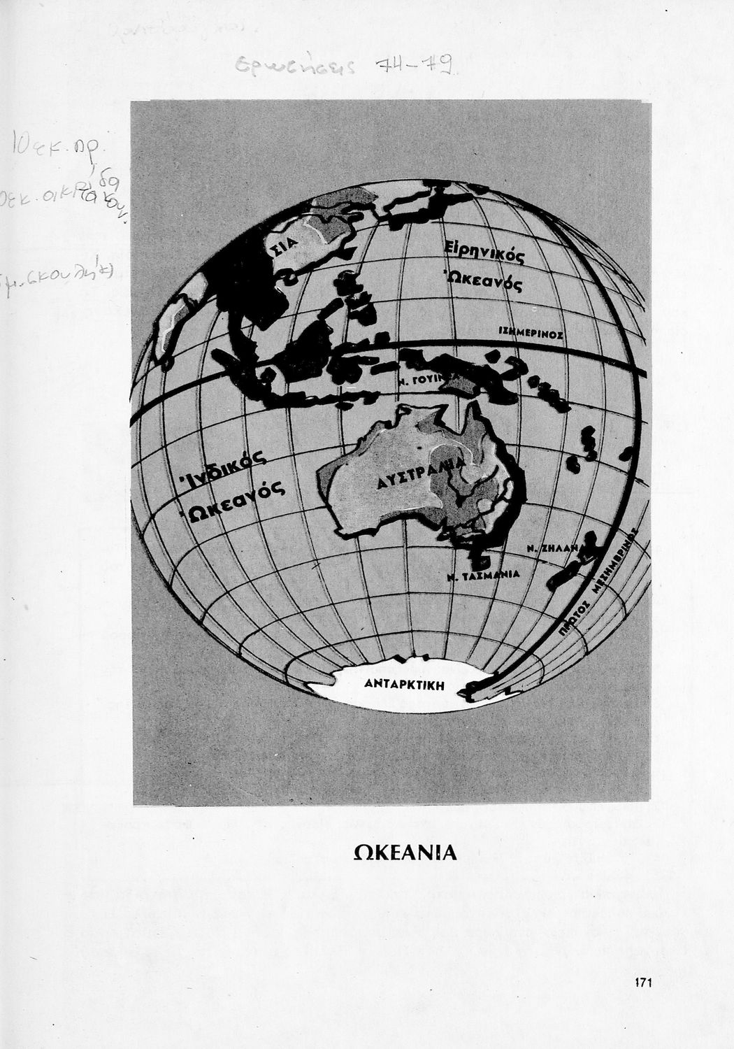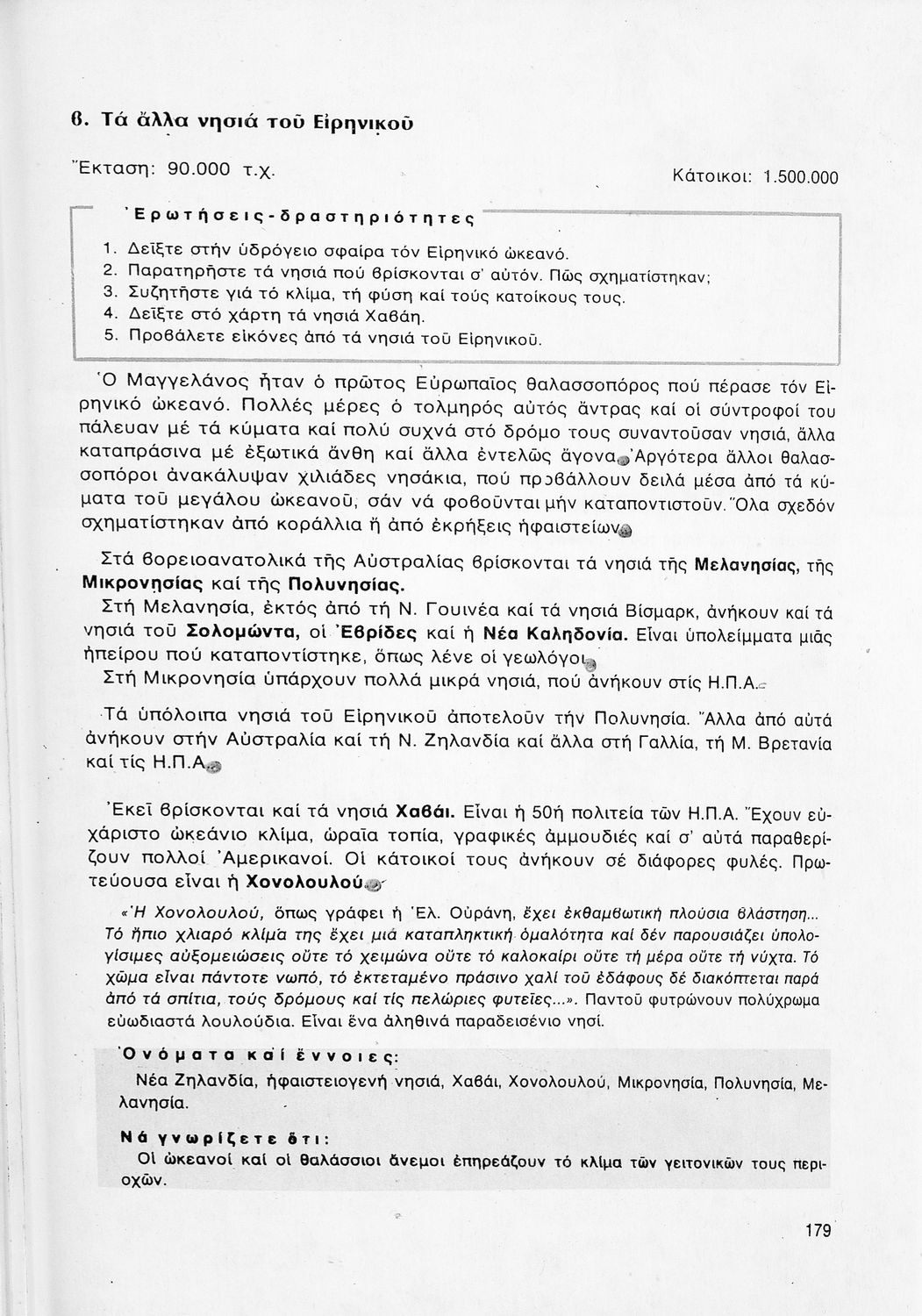 Σχολικό εγχειρίδιο Γεωγραφίας ΣΤ΄ Δημοτικού που περιλαμβάνει εισαγωγή στη φυσική, μαθηματική και πολιτική γεωγραφία και εξετάζει την Ελλάδα και ενδεικτικές χώρες και περιοχές από τις πέντε ηπείρους, εκτός της Ευρώπης, από γεωφυσική και πολιτική άποψη. Περιέχει και στοιχεία ανθρωπογεωγραφίας.