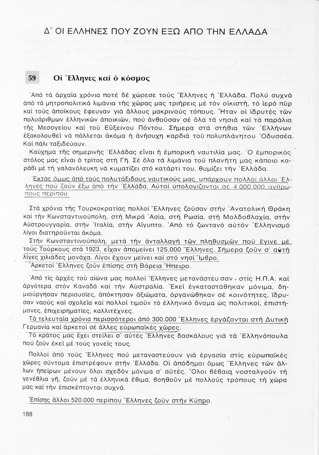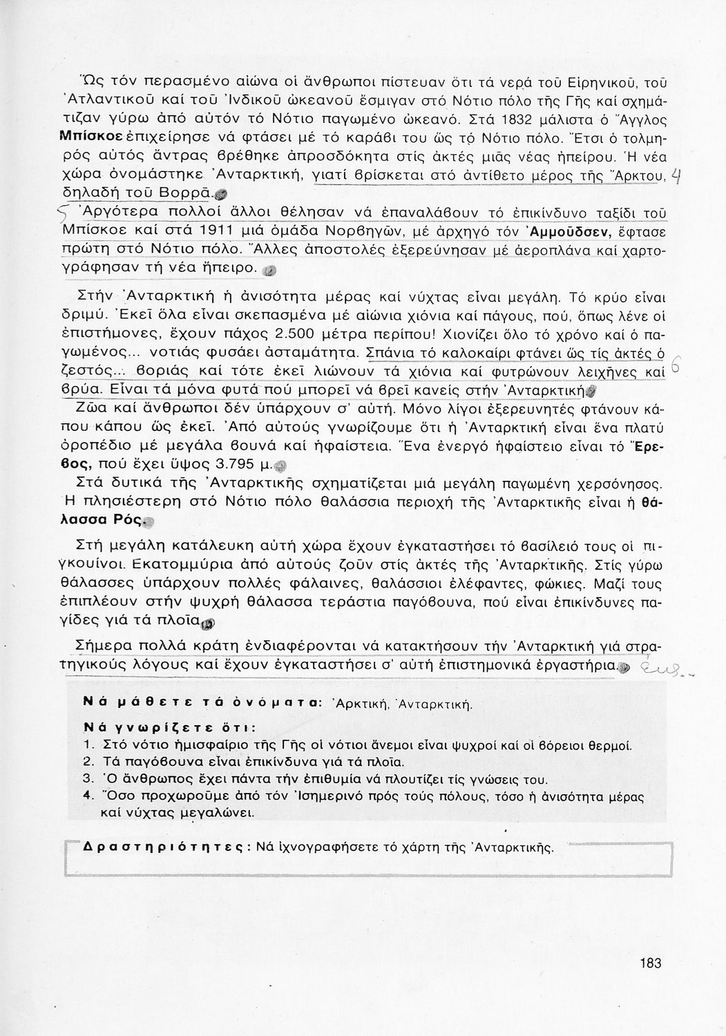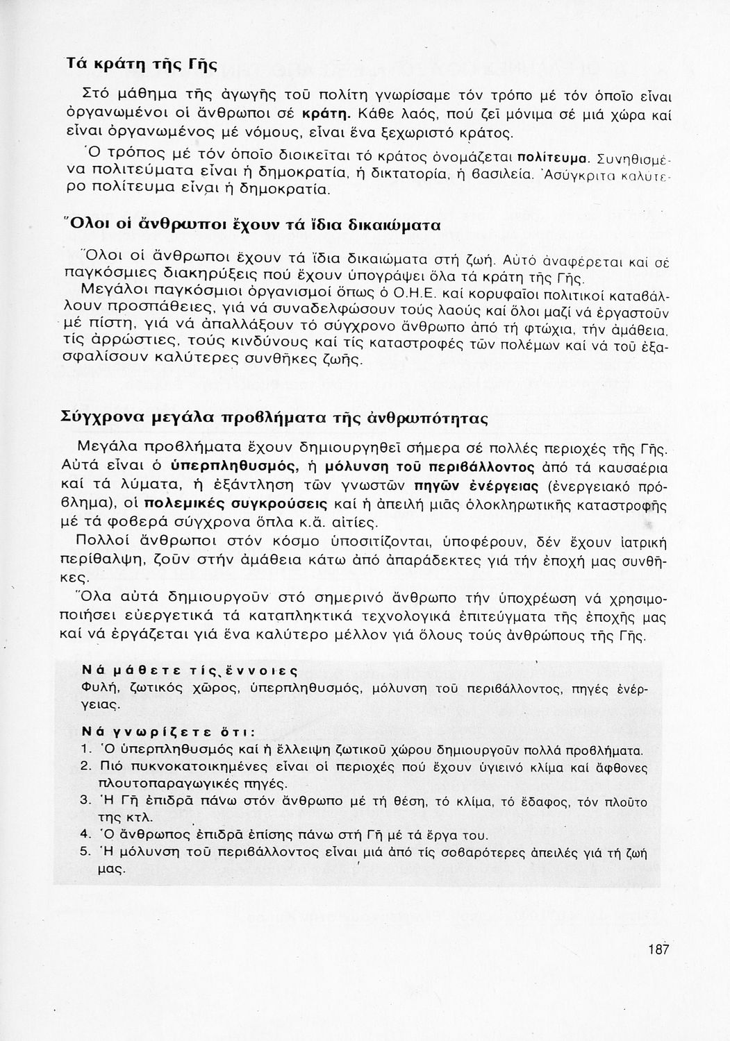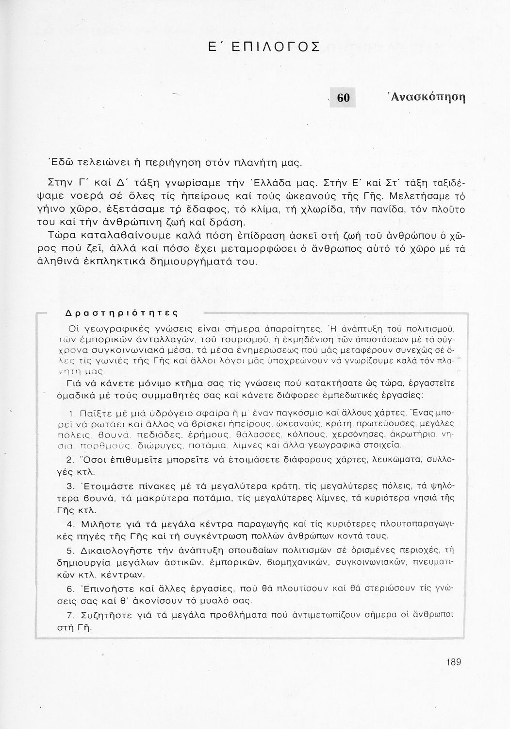 Σχολικό εγχειρίδιο Γεωγραφίας ΣΤ΄ Δημοτικού που περιλαμβάνει εισαγωγή στη φυσική, μαθηματική και πολιτική γεωγραφία και εξετάζει την Ελλάδα και ενδεικτικές χώρες και περιοχές από τις πέντε ηπείρους, εκτός της Ευρώπης, από γεωφυσική και πολιτική άποψη. Περιέχει και στοιχεία ανθρωπογεωγραφίας.
