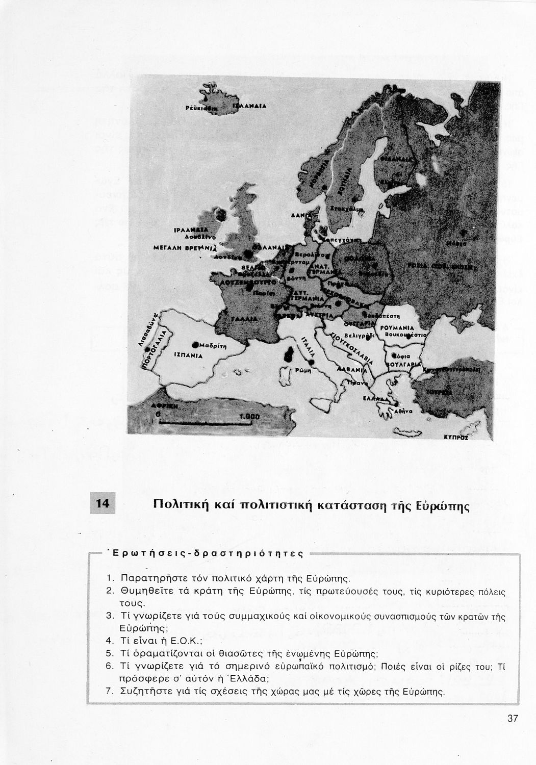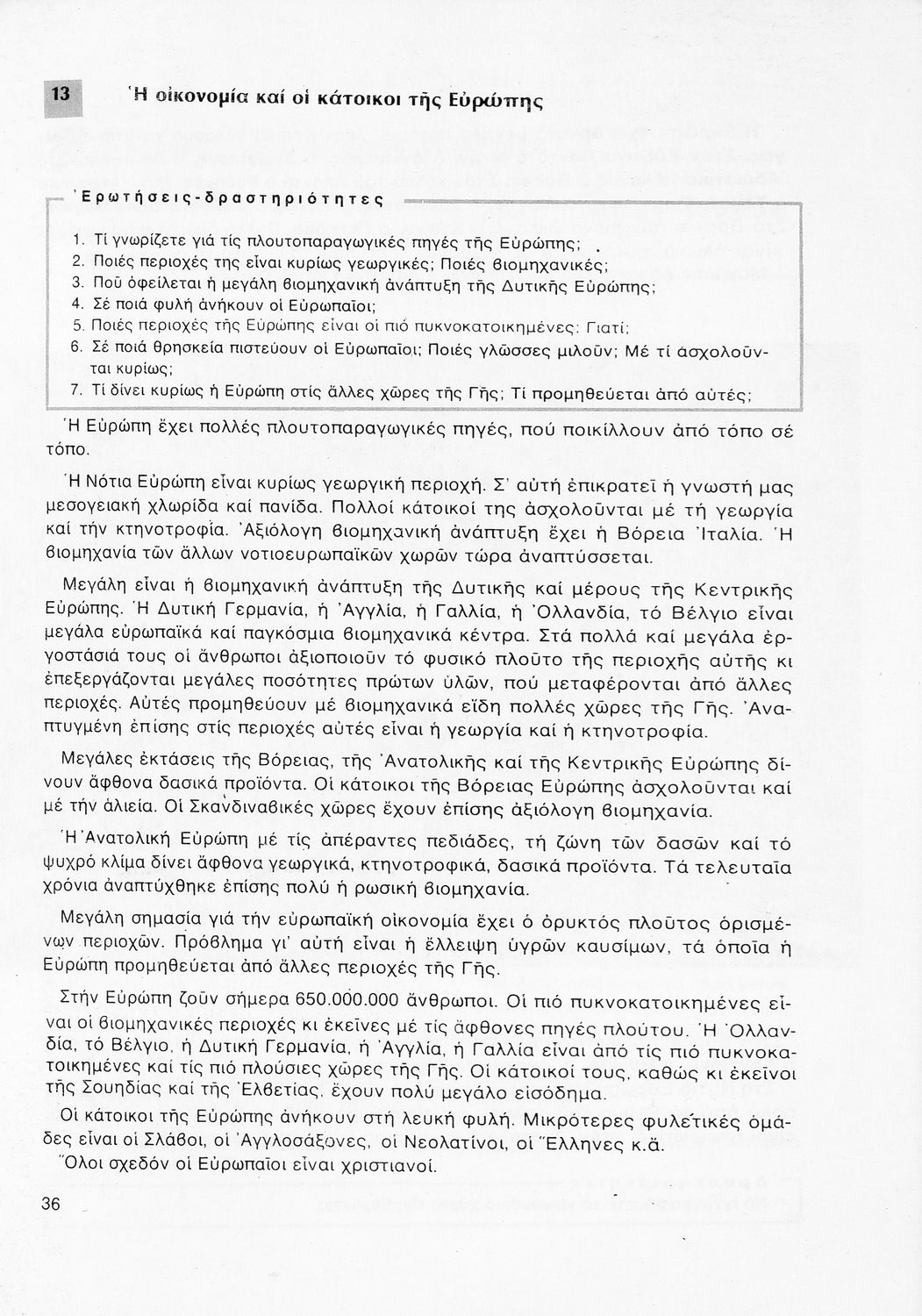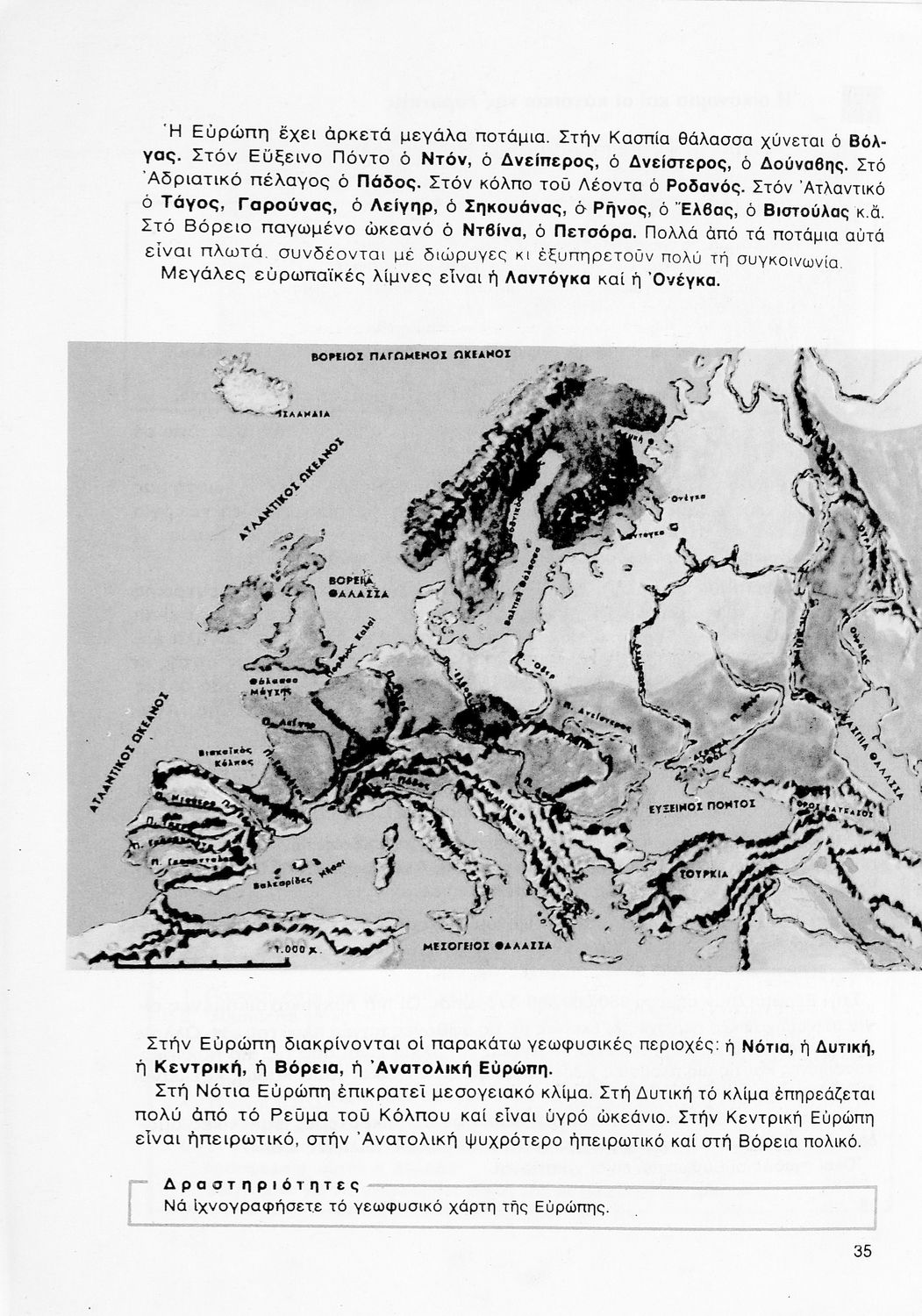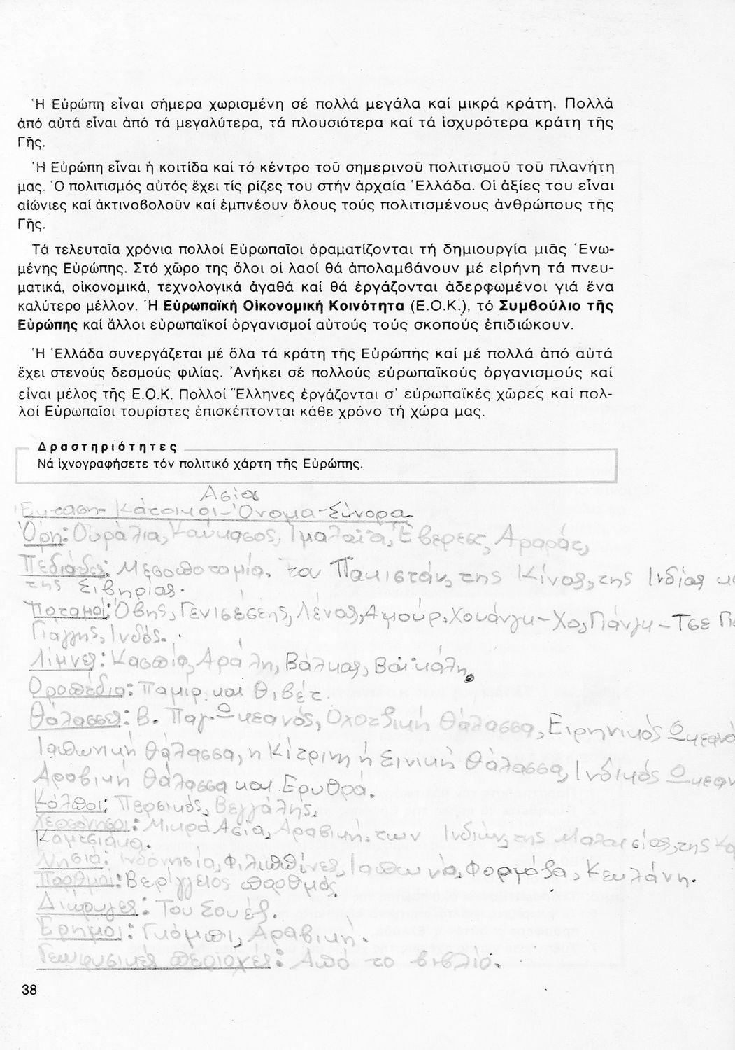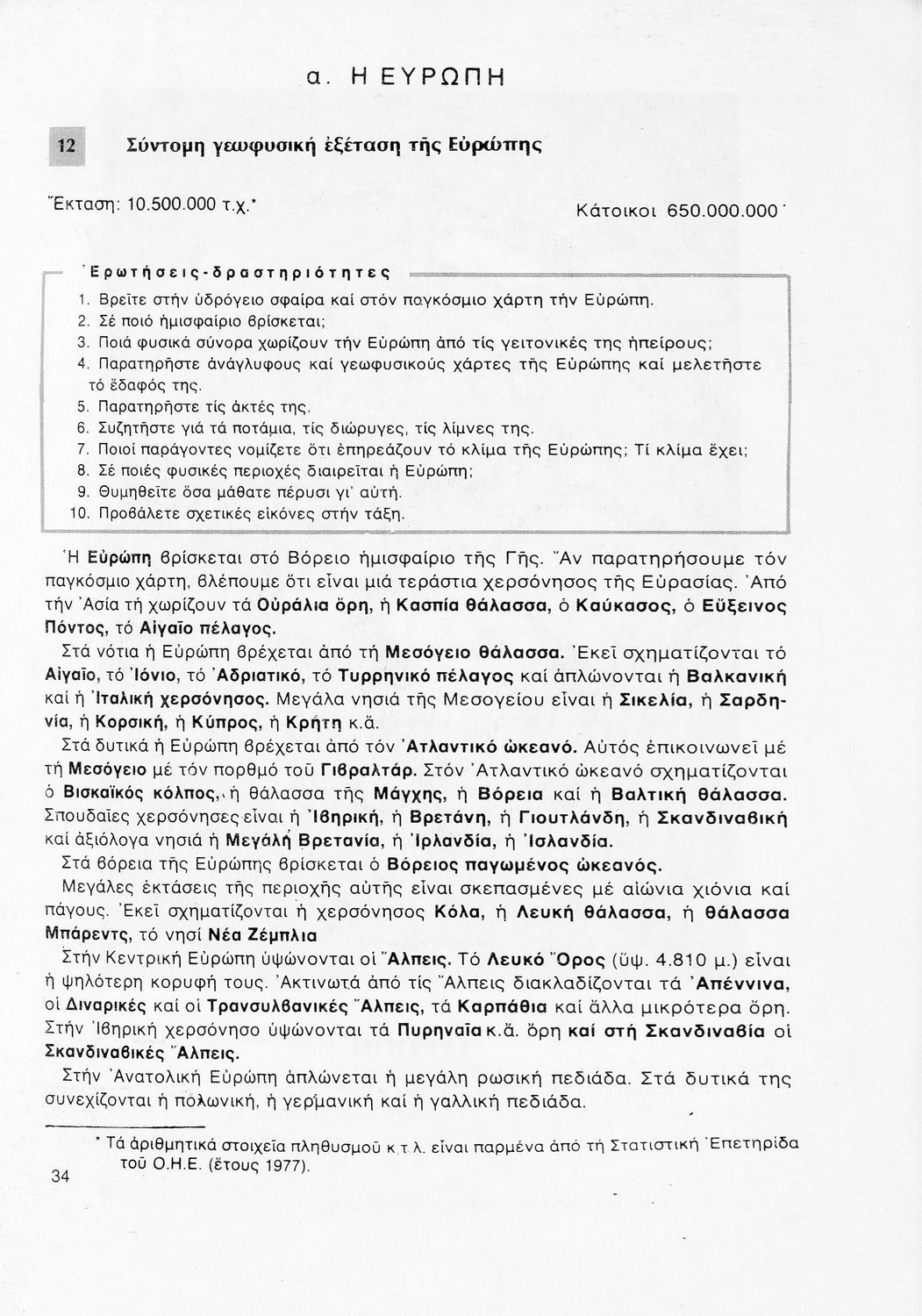 Μαθητικό βοήθημα Γεωγραφίας ΣΤ΄ Δημοτικού που περιλαμβάνει στοιχεία μαθηματικής, πολιτικής και φυσικής γεωγραφίας των χωρών της Ευρώπης.