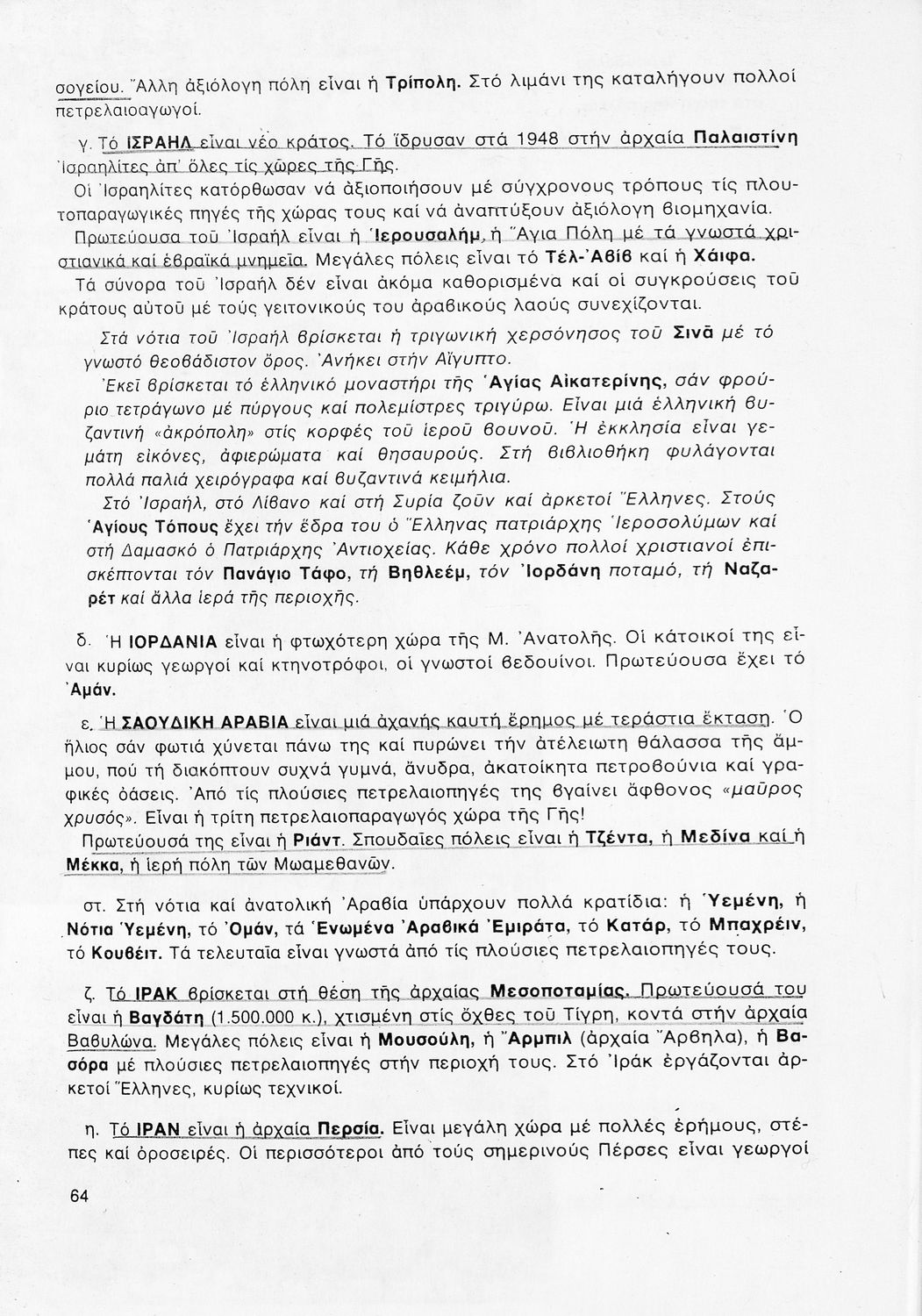 Μαθητικό βοήθημα Γεωγραφίας για την Γ΄ και Δ΄ Δημοτικού που περιέχει χάρτες περιοχών της Ελλάδας τις οποίες εξετάζει από γεωφυσική, πολιτική και οικονομική άποψη.
