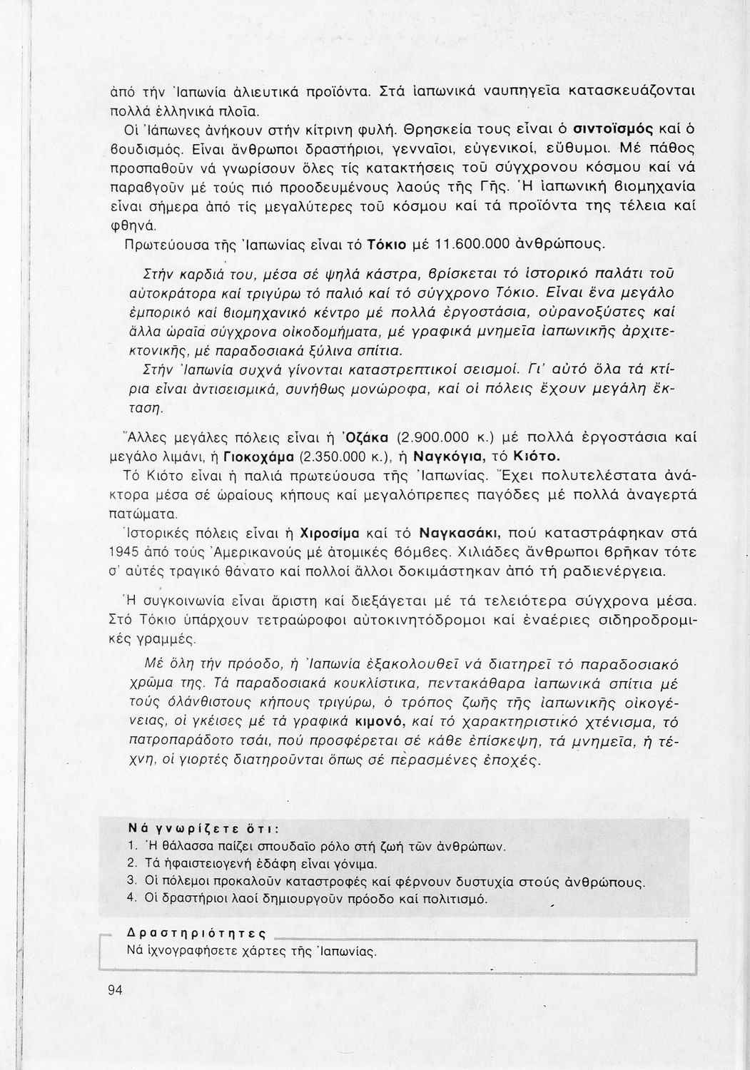 Βαθμίδα εκπαίδευσης: Πρωτοβάθμια Τάξη: ΣΤ' Δημοτικού Μάθημα: Γεωγραφία Γλώσσα: Δημοτική Παρουσίαση περιεχομένου: Σχολικό εγχειρίδιο Γεωγραφίας ΣΤ΄ Δημοτικού που περιλαμβάνει εισαγωγή στη φυσική, μαθηματική και πολιτική γεωγραφία και εξετάζει την Ελλάδα και ενδεικτικές χώρες και περιοχές από τις πέντε ηπείρους, εκτός της Ευρώπης, από γεωφυσική και πολιτική άποψη. Περιέχει και στοιχεία ανθρωπογεωγραφίας. |
