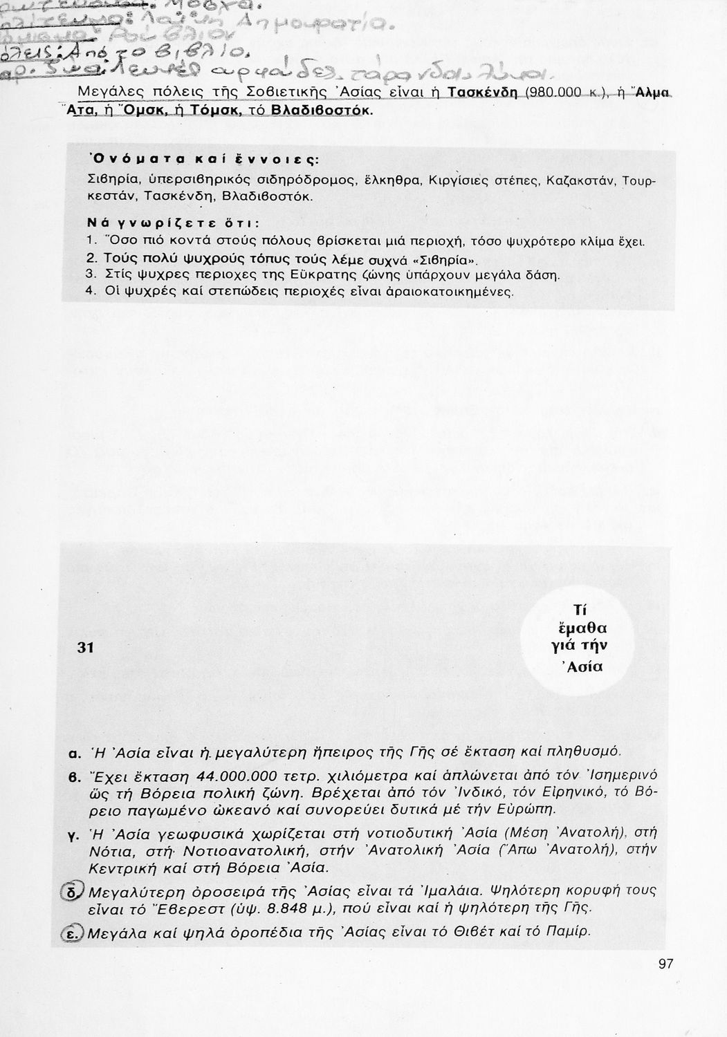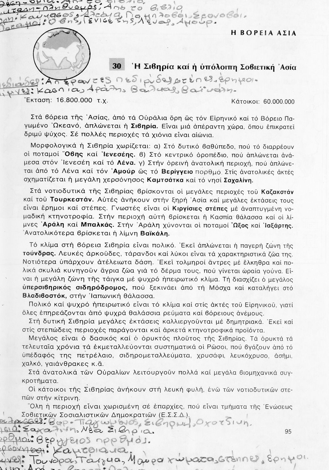 Σχολικό εγχειρίδιο Γεωγραφίας ΣΤ΄ Δημοτικού που περιλαμβάνει εισαγωγή στη φυσική, μαθηματική και πολιτική γεωγραφία και εξετάζει την Ελλάδα και ενδεικτικές χώρες και περιοχές από τις πέντε ηπείρους, εκτός της Ευρώπης, από γεωφυσική και πολιτική άποψη. Περιέχει και στοιχεία ανθρωπογεωγραφίας.