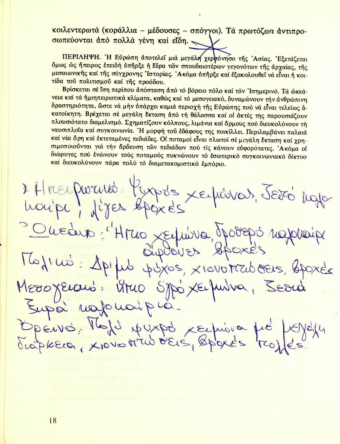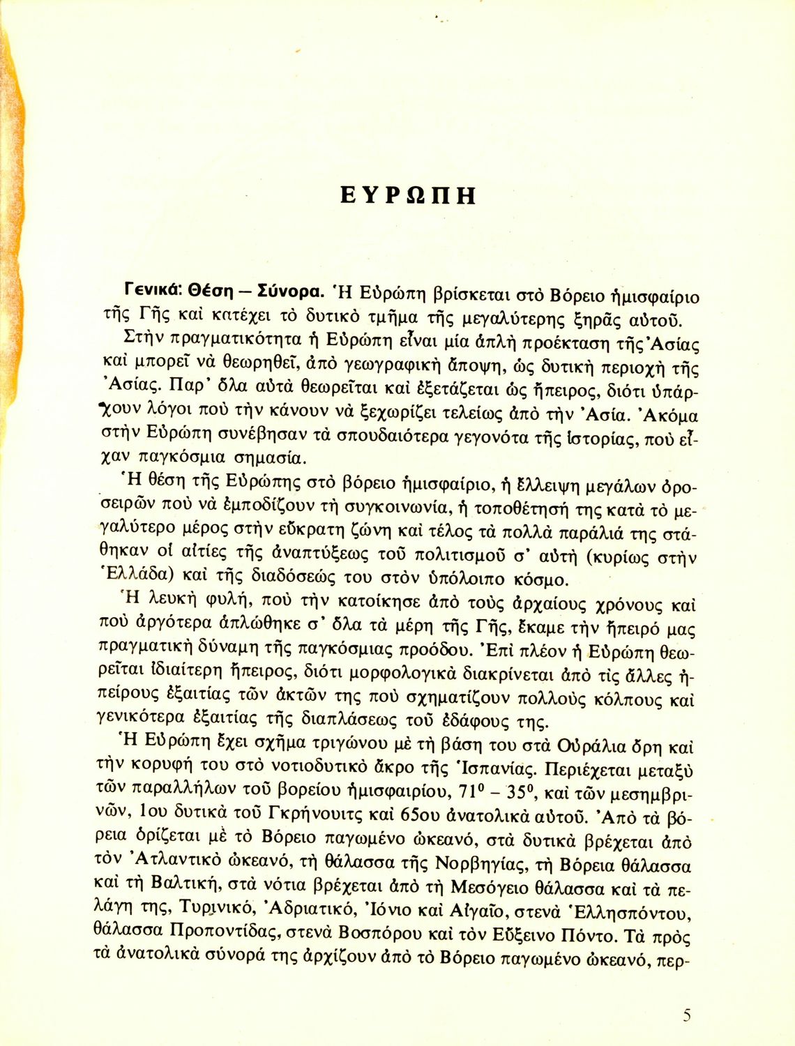 Σχολικό εγχειρίδιο Γεωγραφίας Β΄ Γυμνασίου που περιλαμβάνει εισαγωγή στη φυσική και πολιτισμική γεωγραφία της Ευρώπης και εξετάζει τις χώρες της από γεωμορφολογική, οικονομική και πολιτική άποψη.