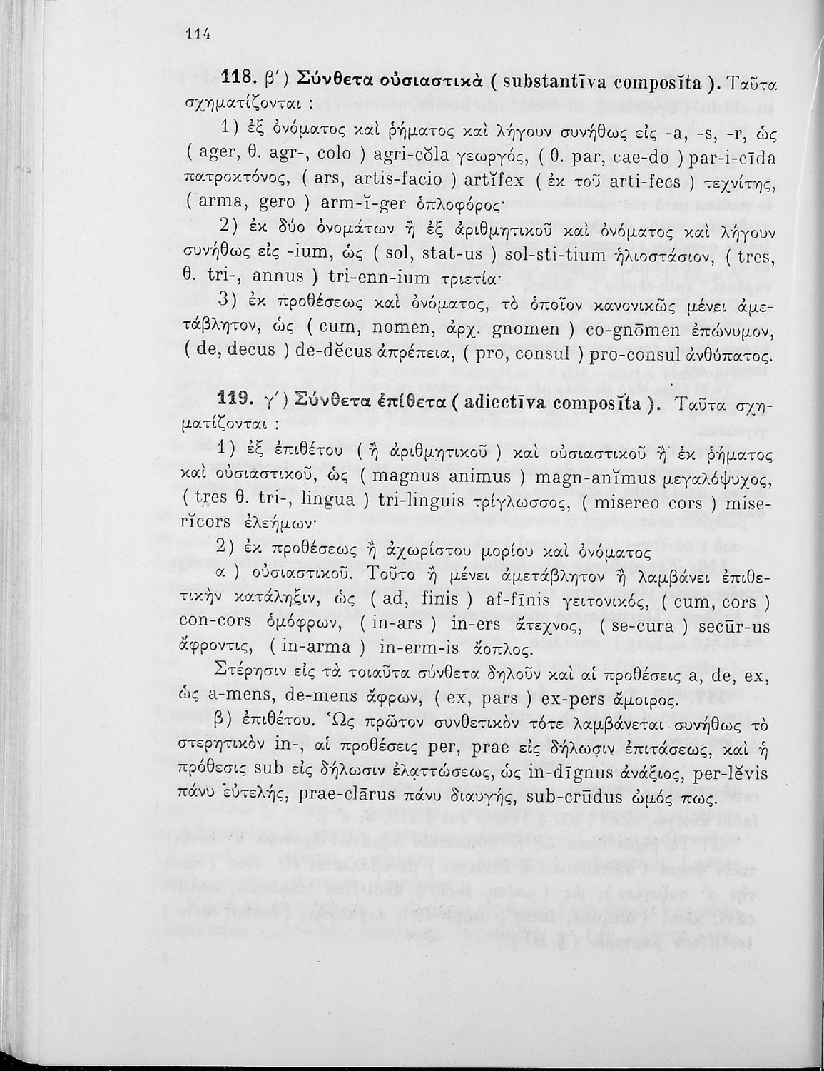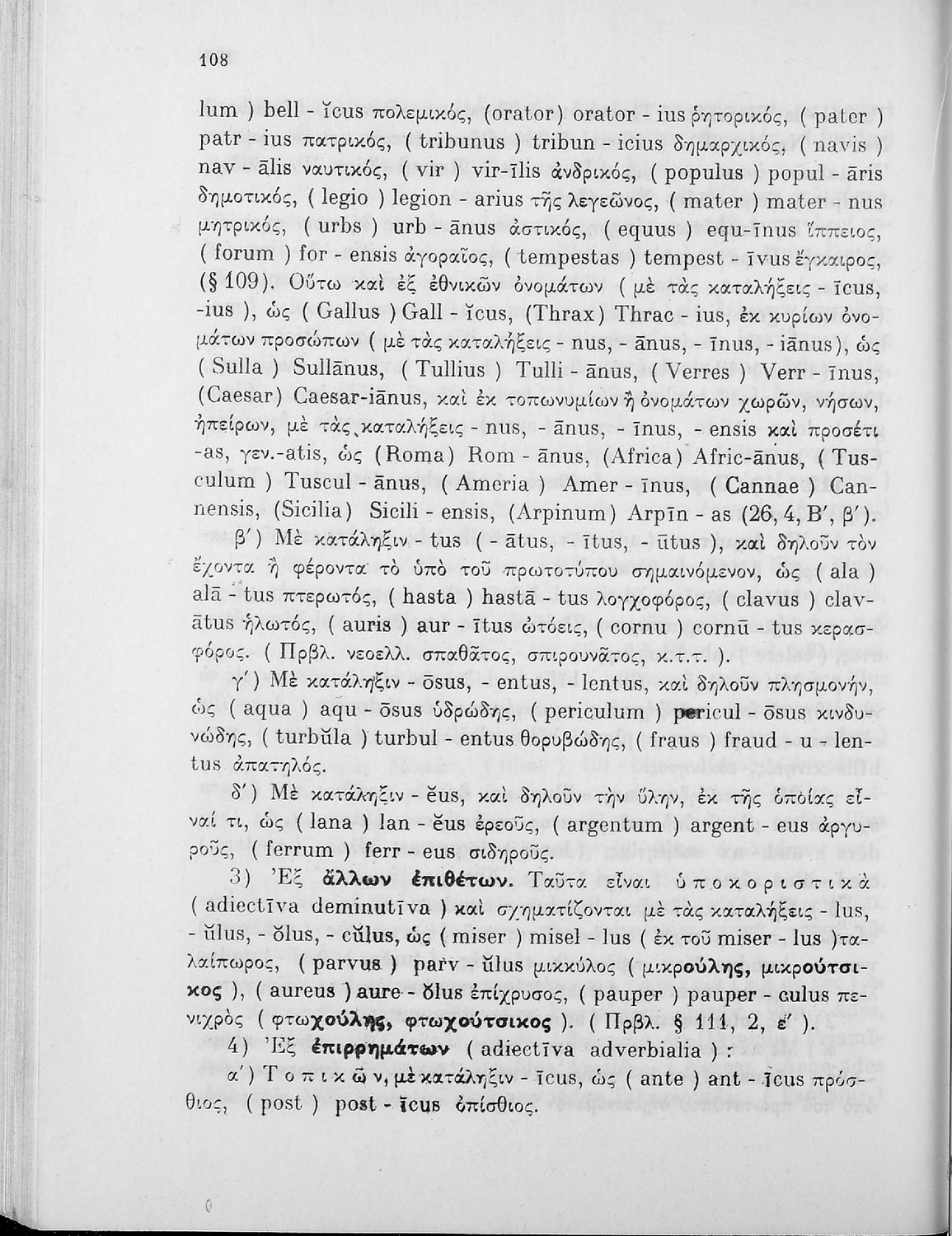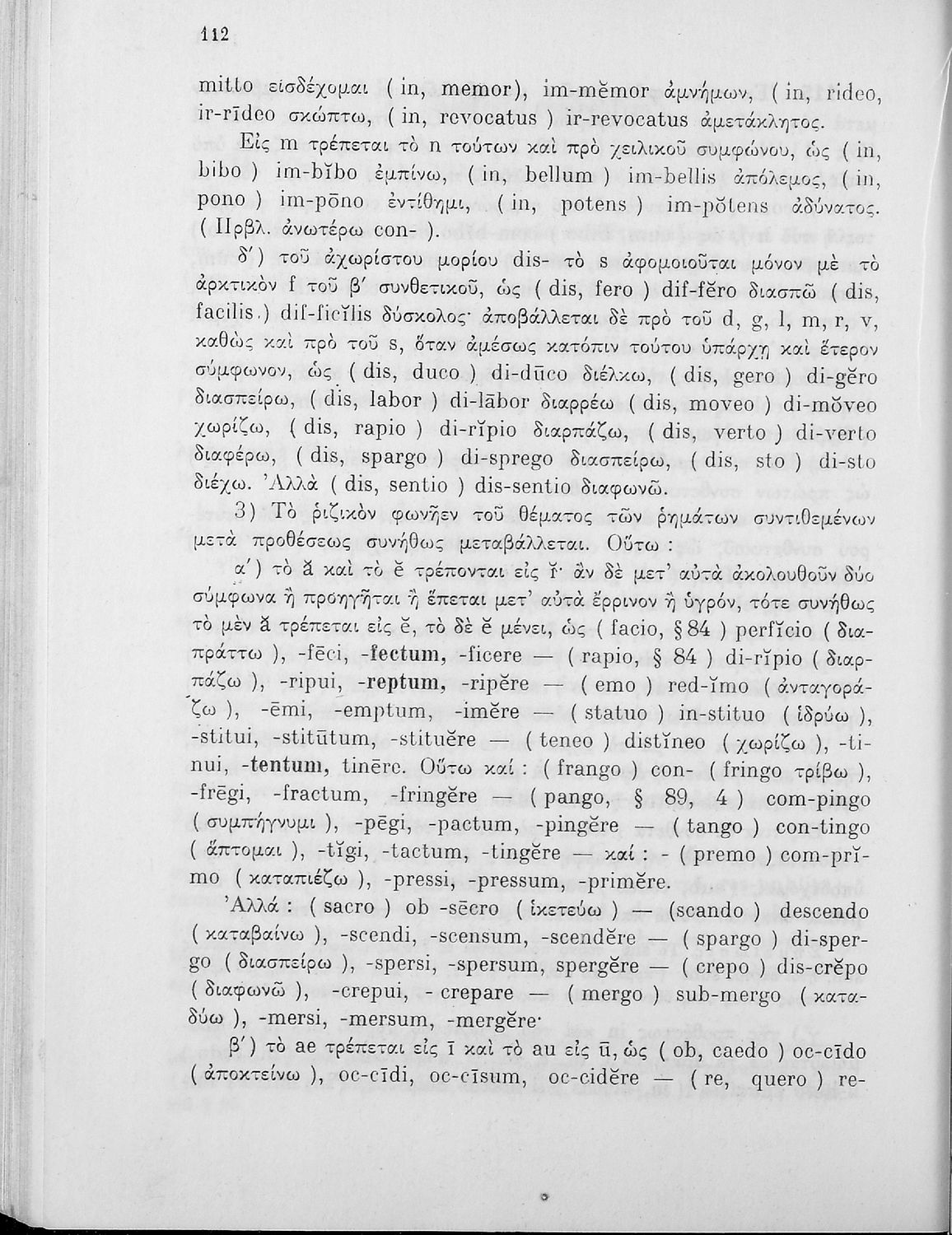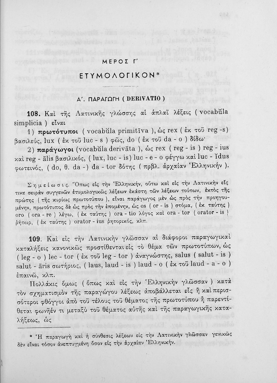 Σχολικό εγχειρίδιο Λατινικών Γυμνασίου που περιλαμβάνει γραμματική και συντακτικό και είναι χωρισμένο σε φθογγολογικό, τυπολογικό και ετυμολογικό μέρος.
