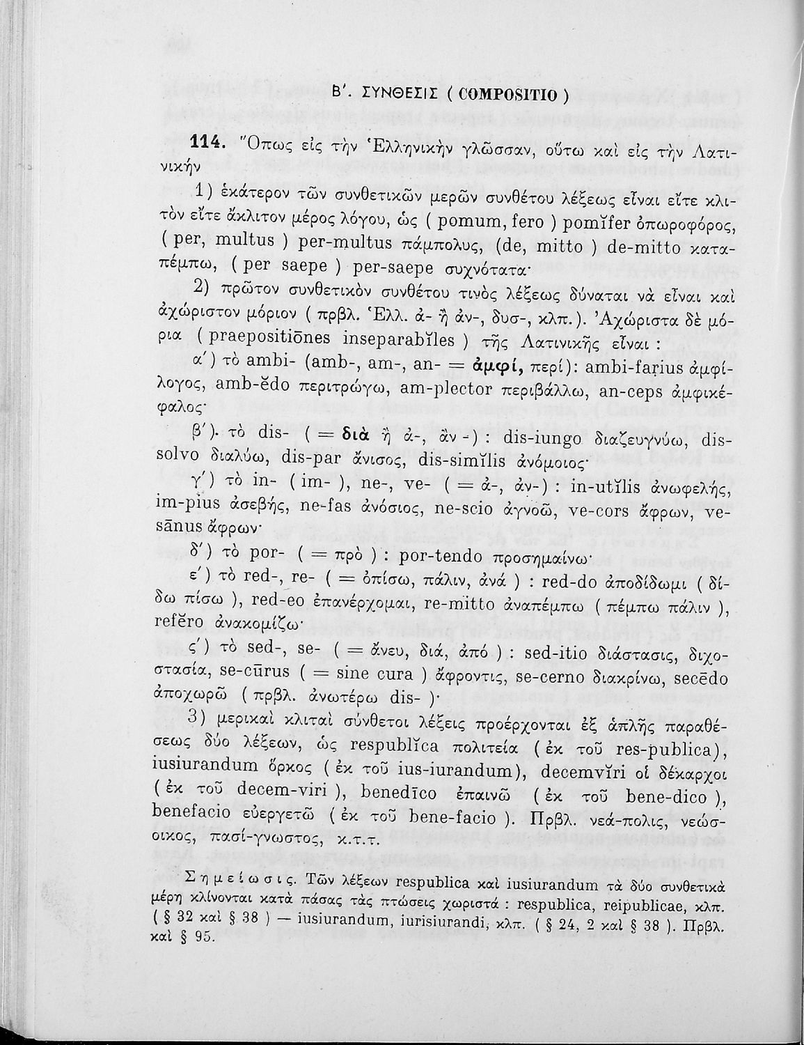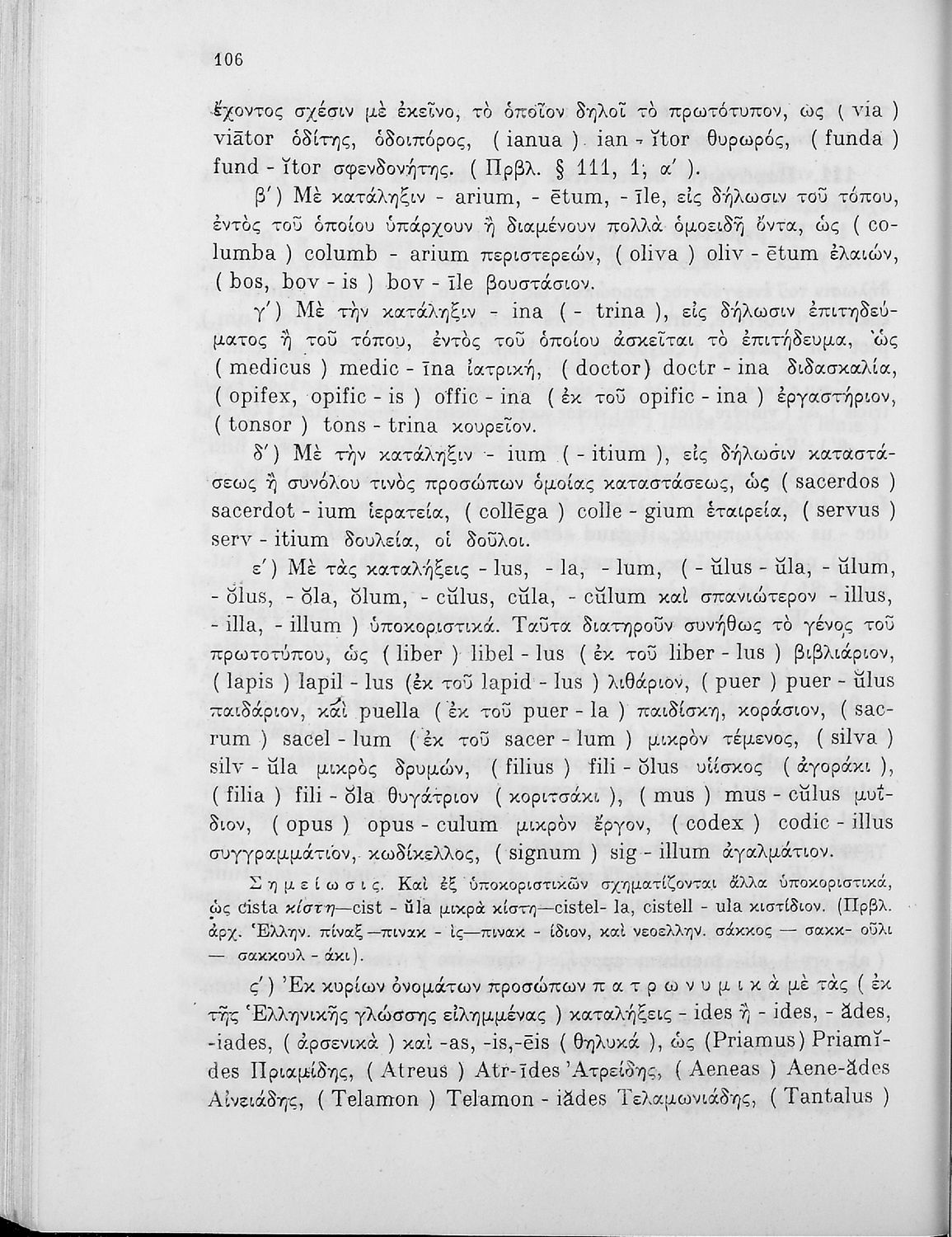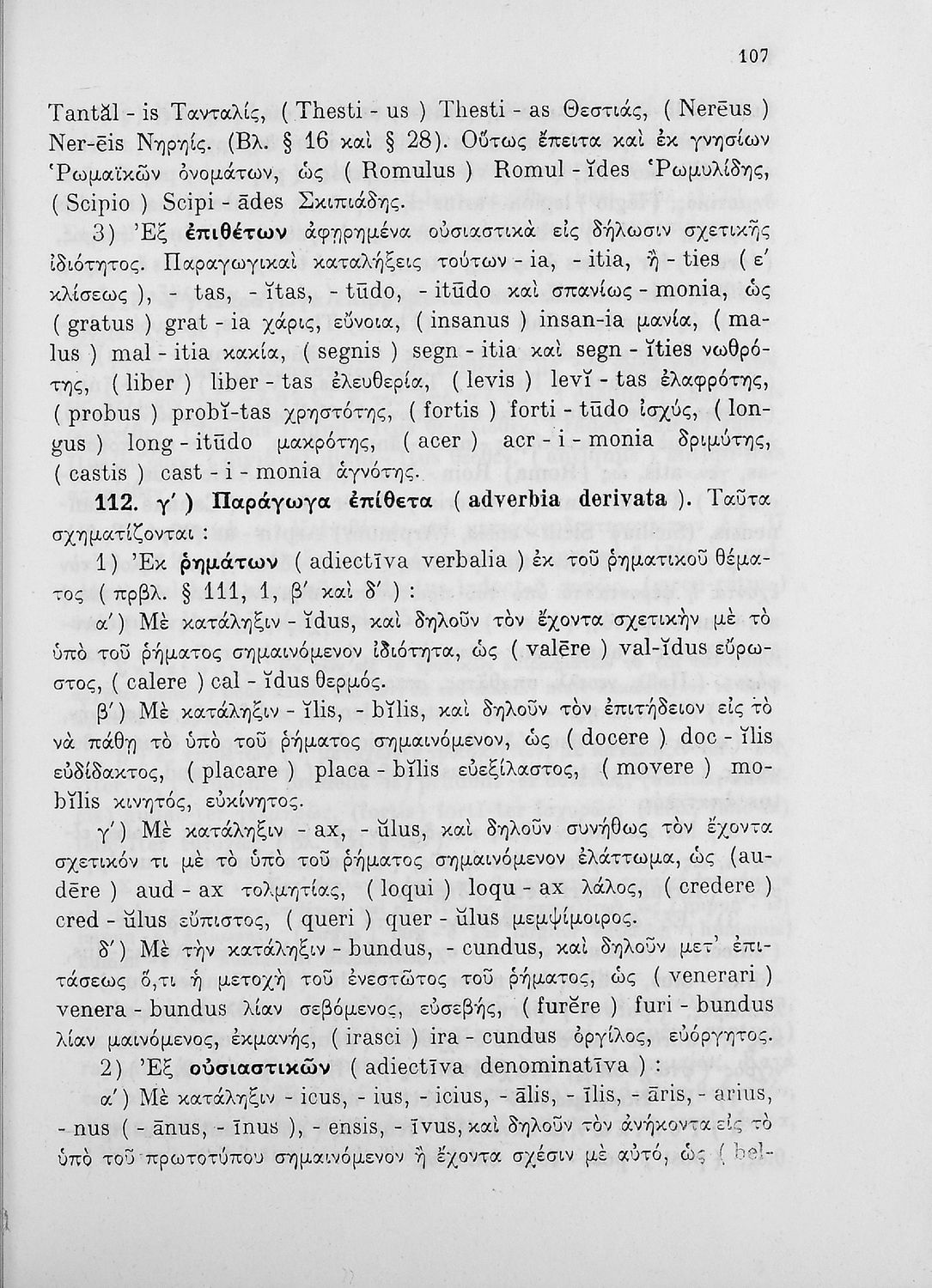 Σχολικό εγχειρίδιο Λατινικών Γυμνασίου που περιλαμβάνει γραμματική και συντακτικό και είναι χωρισμένο σε φθογγολογικό, τυπολογικό και ετυμολογικό μέρος.