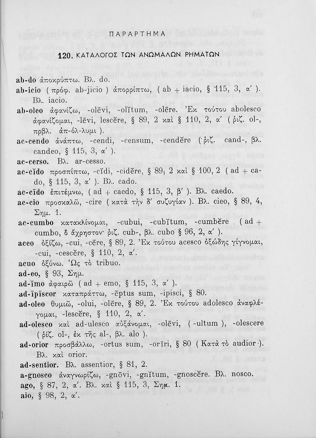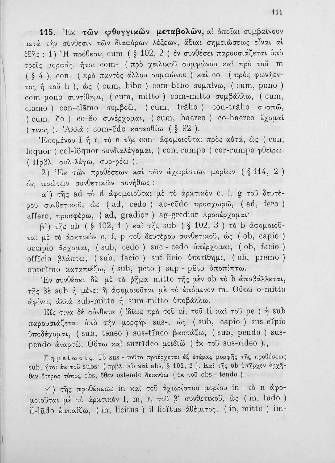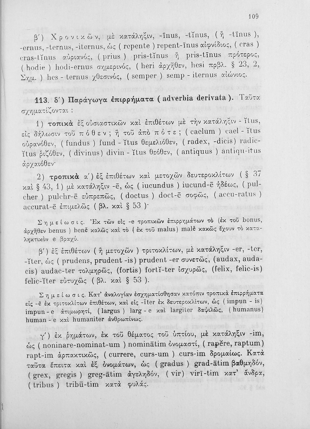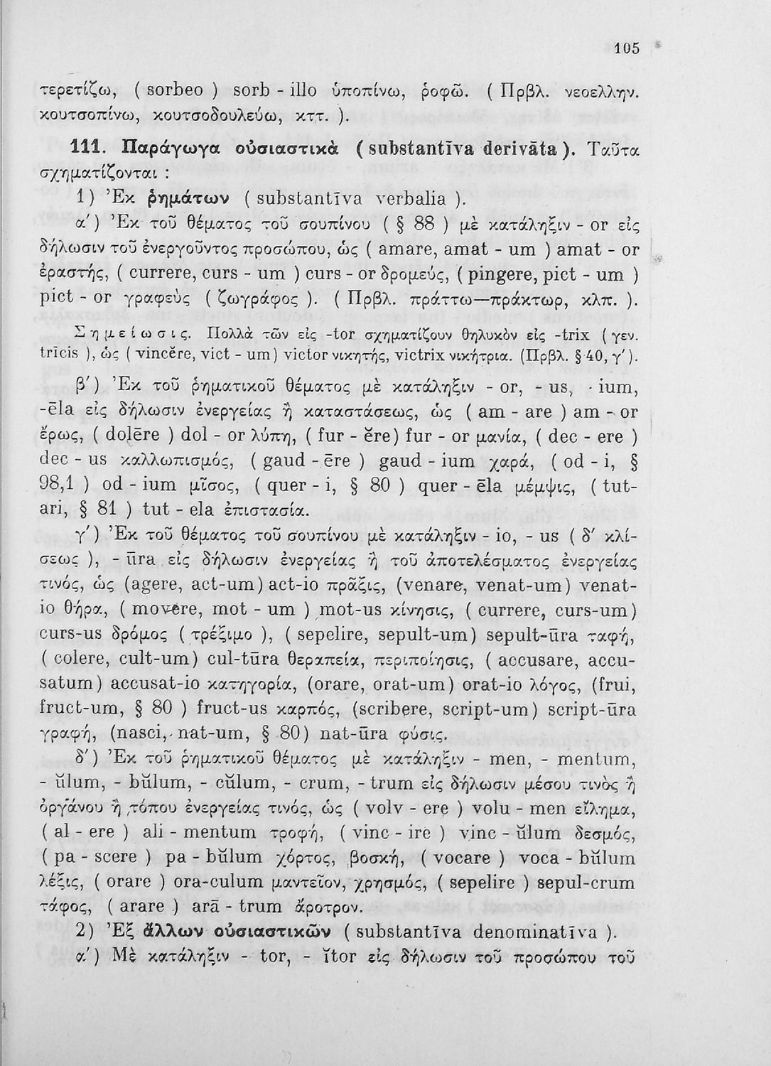 Σχολικό εγχειρίδιο Λατινικών Γυμνασίου που περιλαμβάνει γραμματική και συντακτικό και είναι χωρισμένο σε φθογγολογικό, τυπολογικό και ετυμολογικό μέρος.