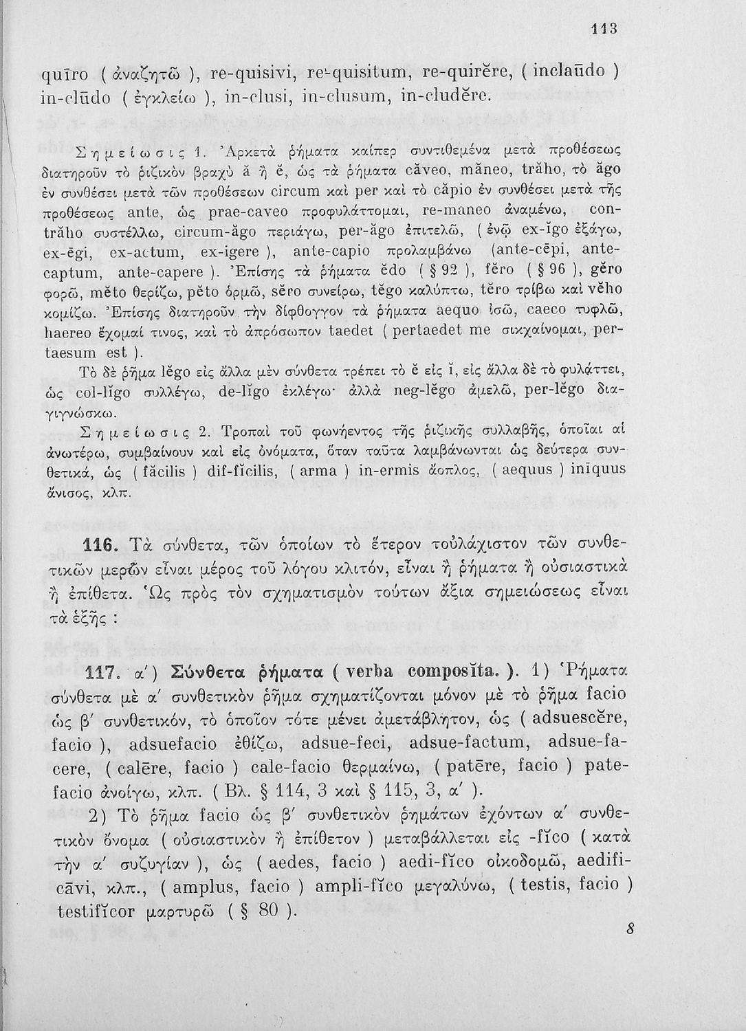 Σχολικό εγχειρίδιο Λατινικών Α΄, Β΄, Γ' Γυμνασίου που περιλαμβάνει γραμματική και συντακτικό και είναι χωρισμένο σε φθογγολογικό, τυπολογικό και ετυμολογικό μέρος.