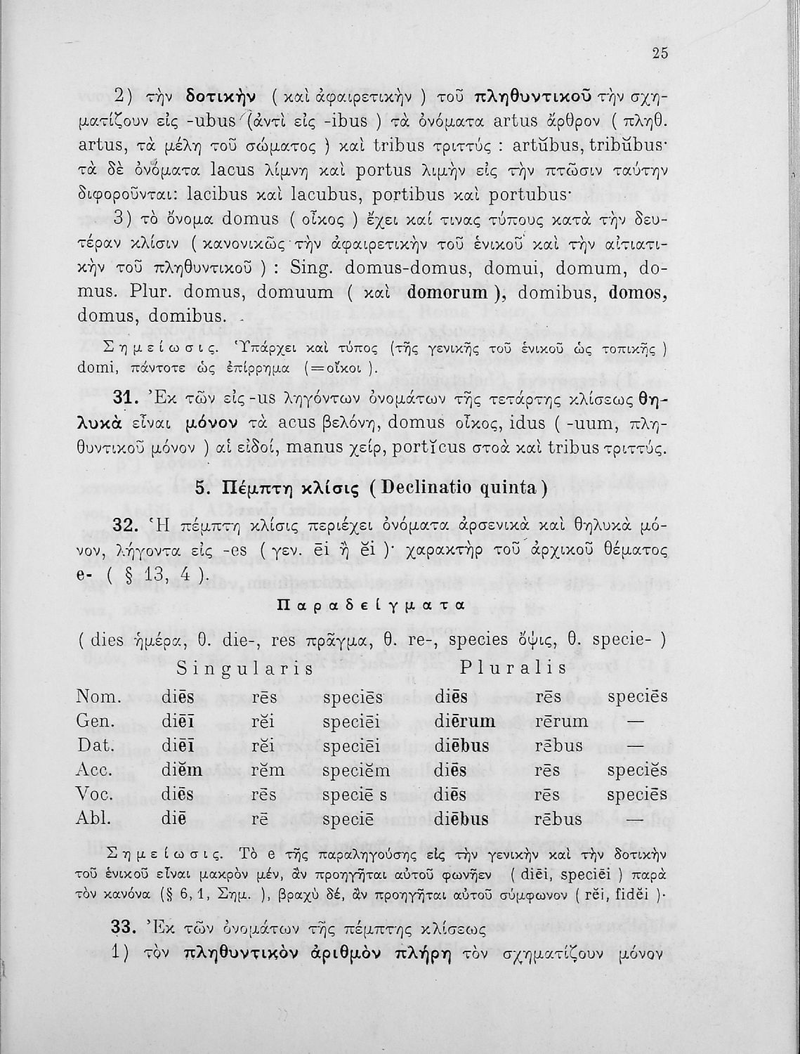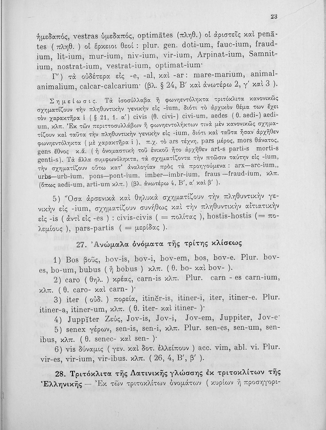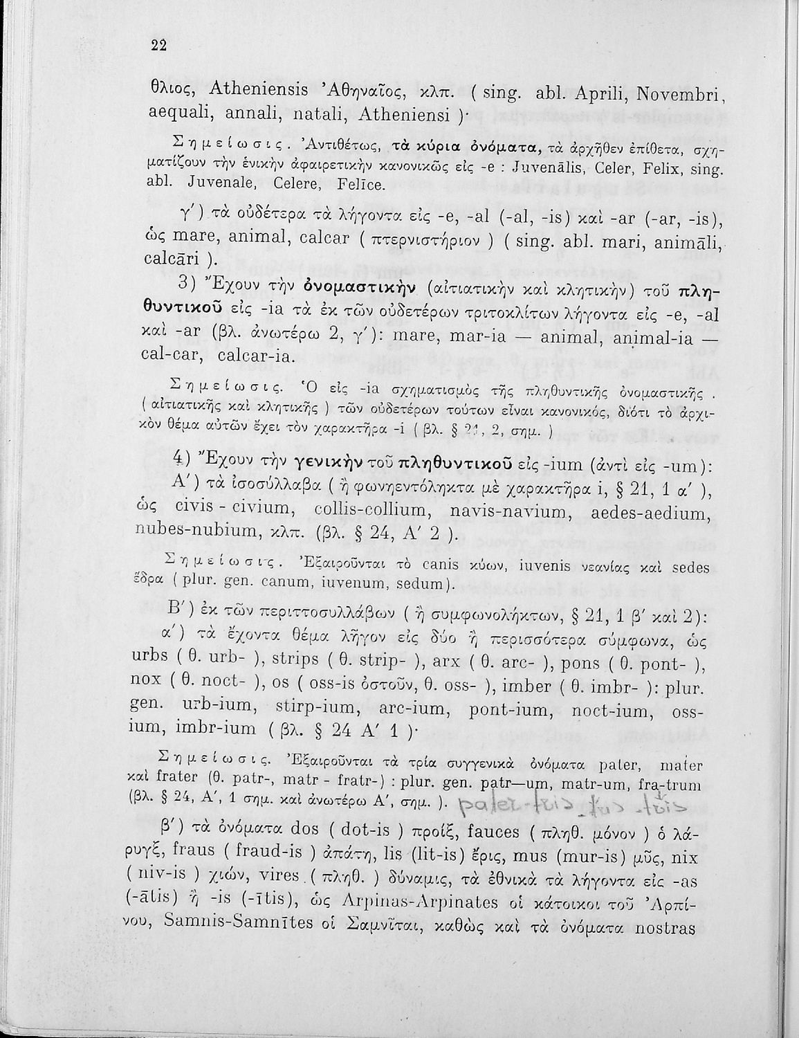 Σχολικό εγχειρίδιο Λατινικών Γυμνασίου που περιλαμβάνει γραμματική και συντακτικό και είναι χωρισμένο σε φθογγολογικό, τυπολογικό και ετυμολογικό μέρος.
