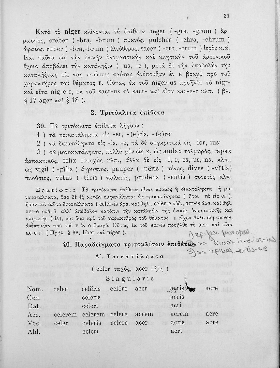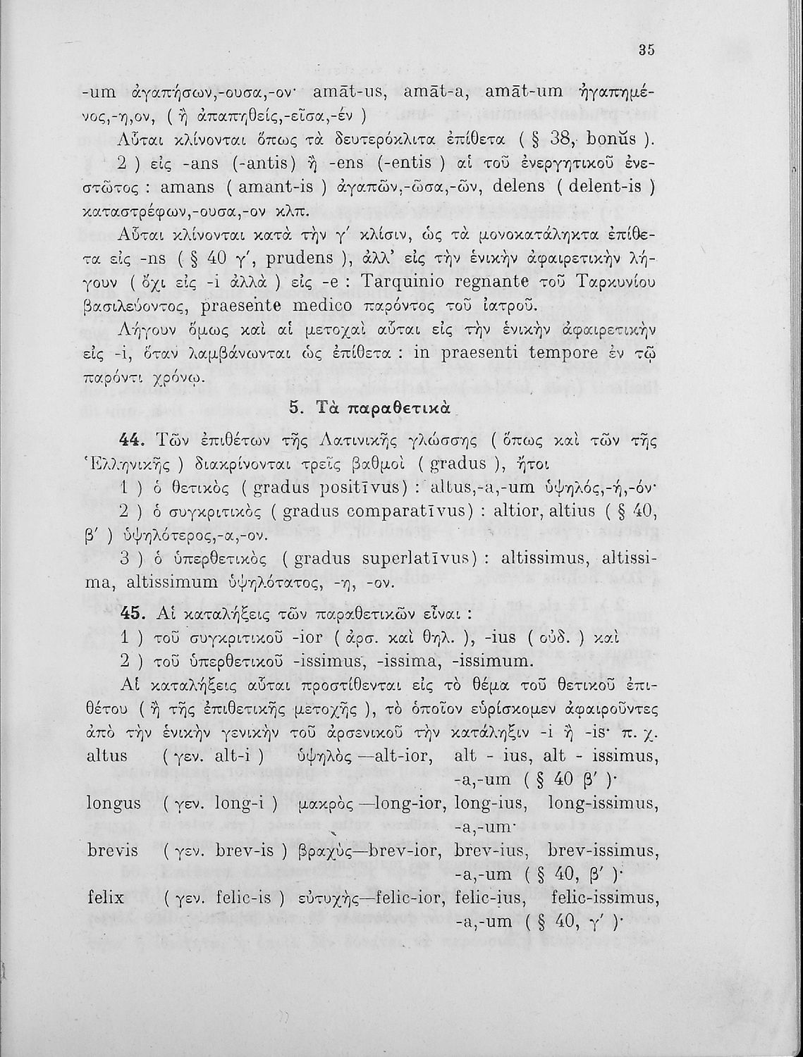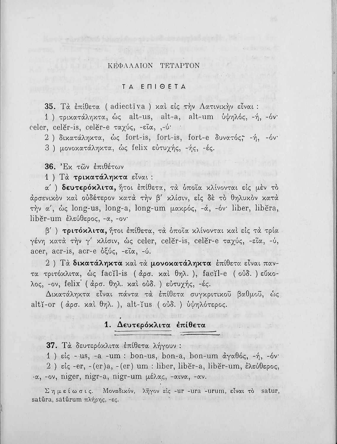 Σχολικό εγχειρίδιο Λατινικών Γυμνασίου που περιλαμβάνει γραμματική και συντακτικό και είναι χωρισμένο σε φθογγολογικό, τυπολογικό και ετυμολογικό μέρος.