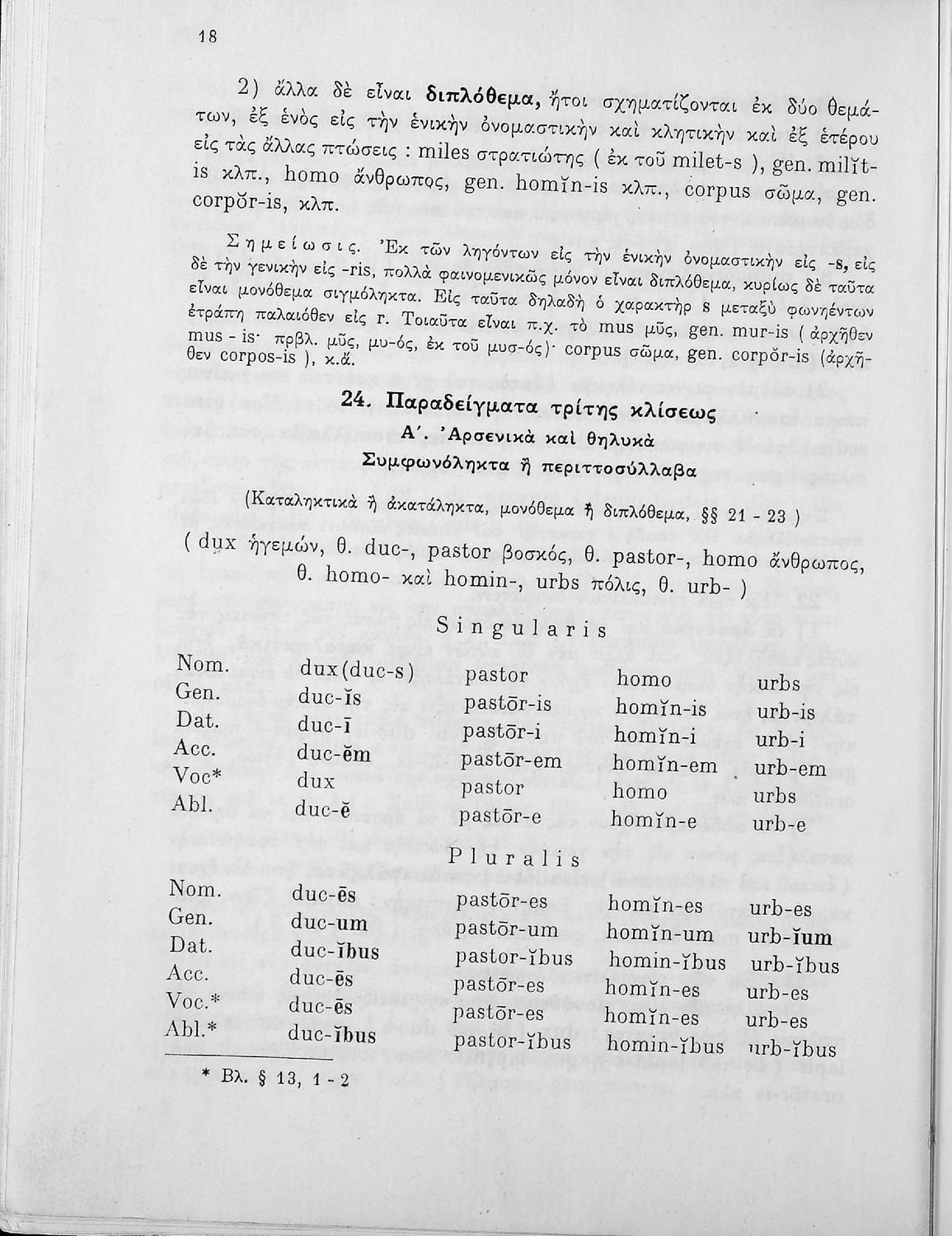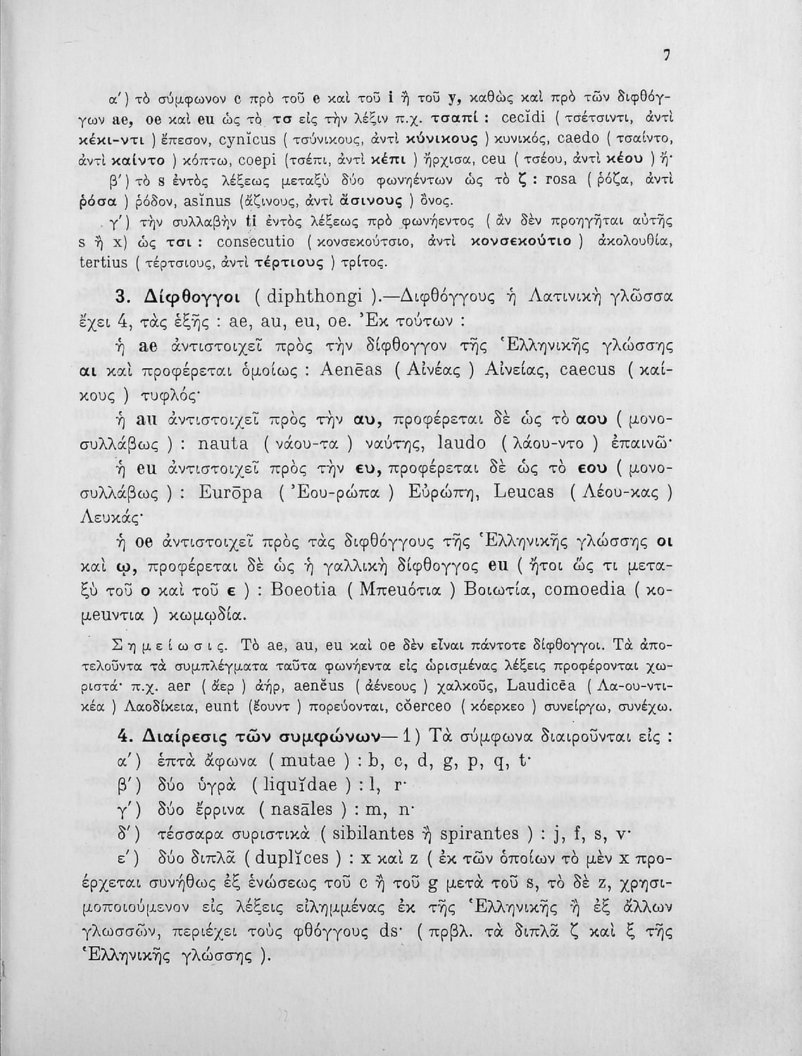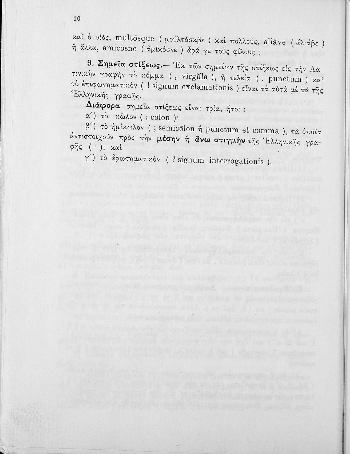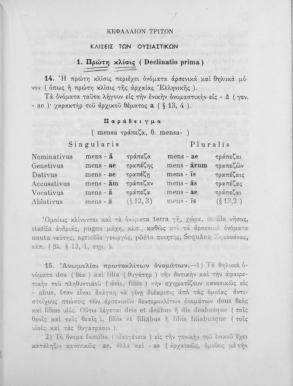 Σχολικό εγχειρίδιο Λατινικών Γυμνασίου που περιλαμβάνει γραμματική και συντακτικό και είναι χωρισμένο σε φθογγολογικό, τυπολογικό και ετυμολογικό μέρος.