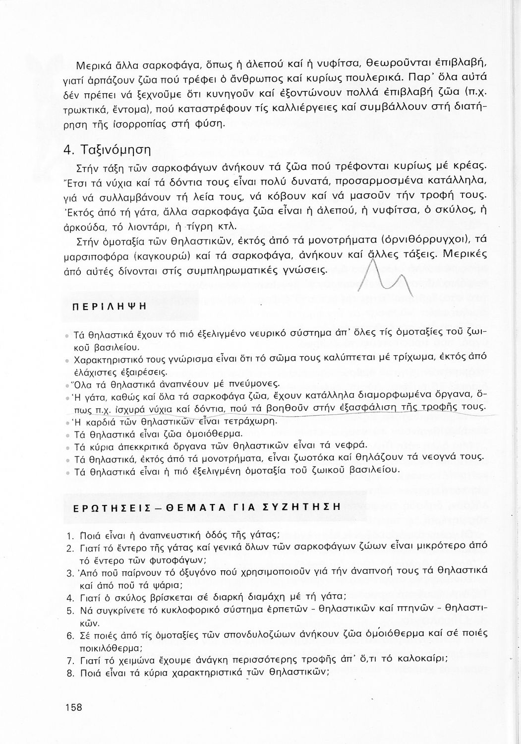 Σχολικό εγχειρίδιο Ζωολογίας και Φυτολογίας για την Α΄ Γυμνασίου που παρουσιάζει ζώα και φυτά με βάση τη συνομοταξία στην οποία ανήκουν.