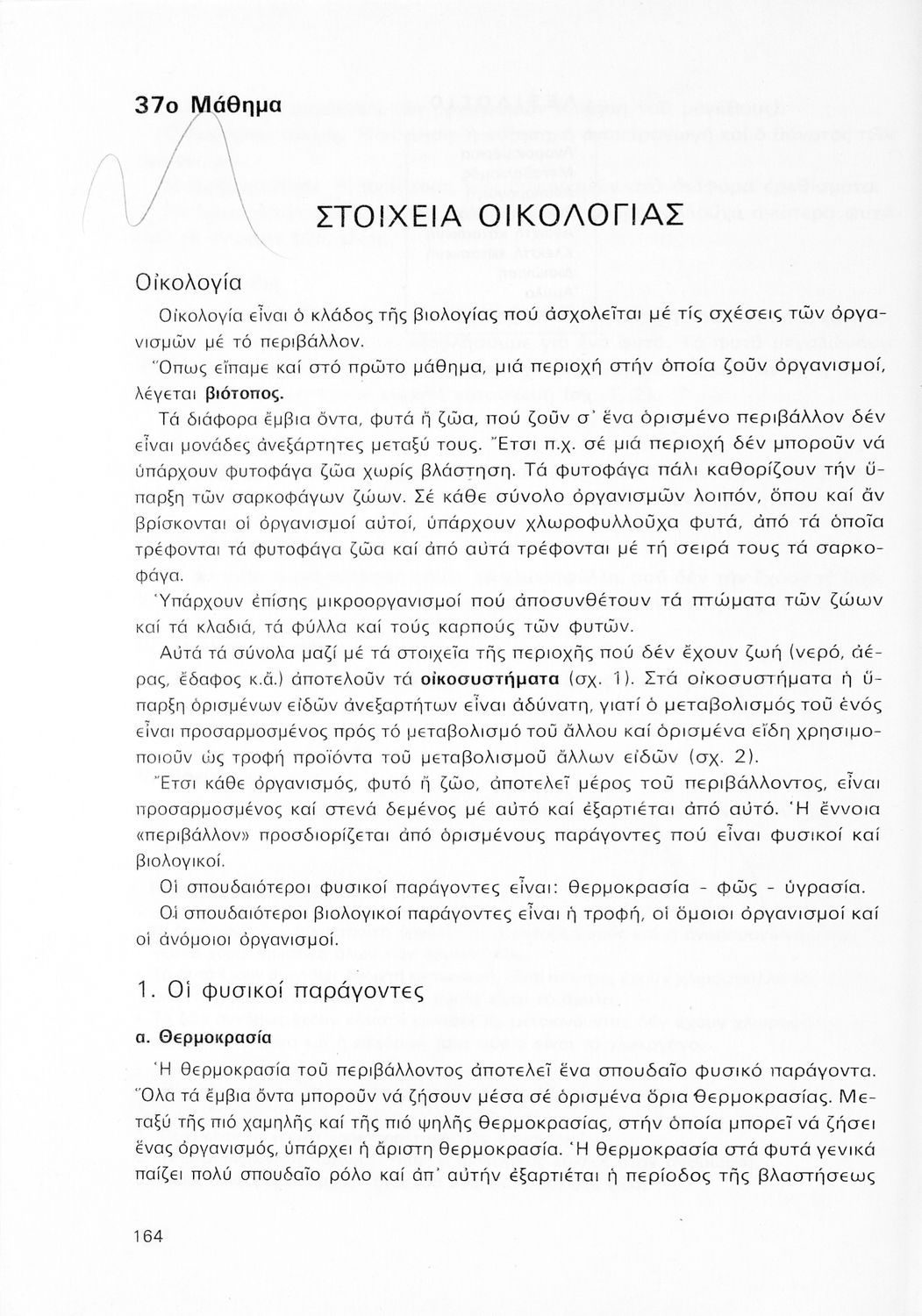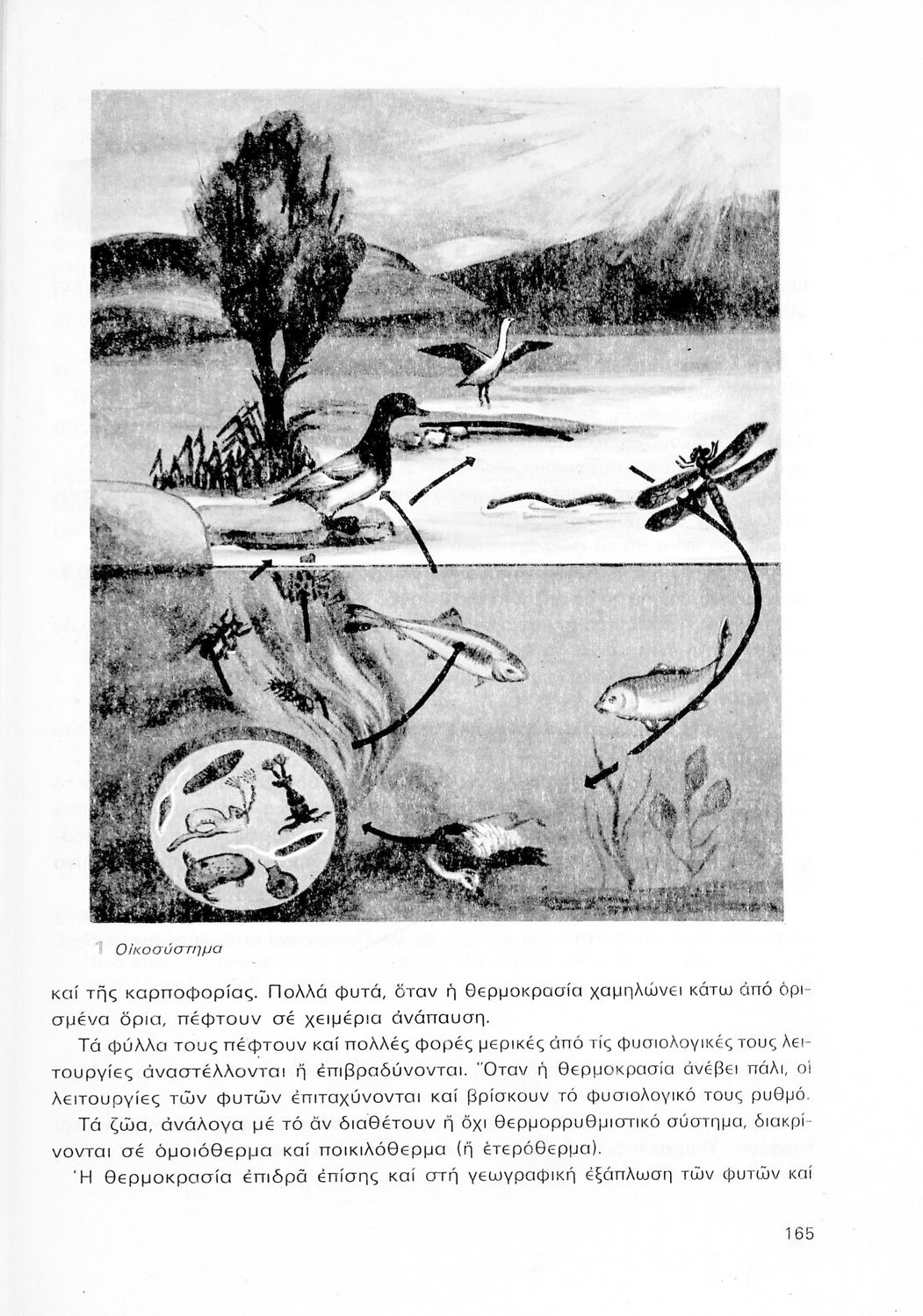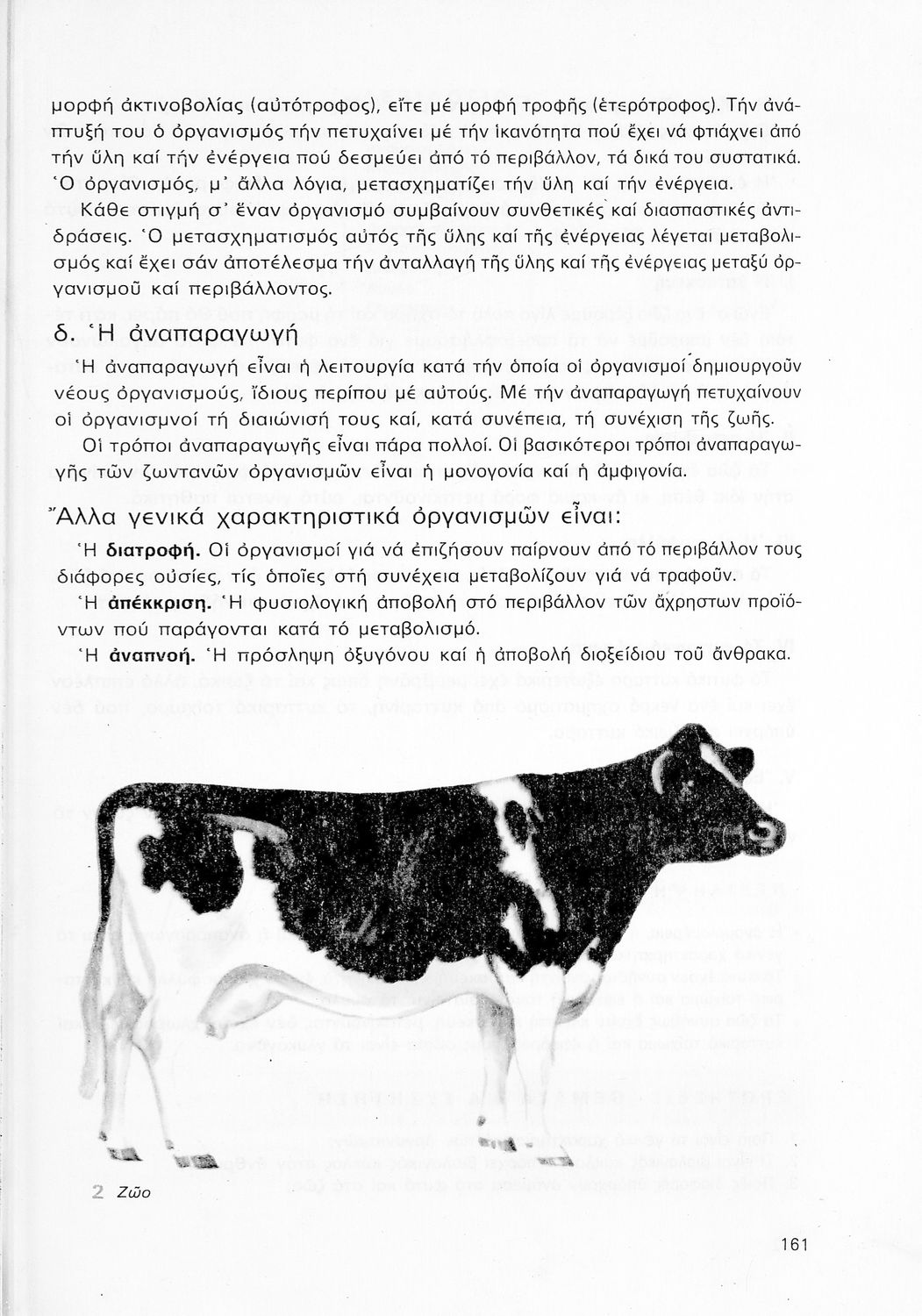 Σχολικό εγχειρίδιο Ζωολογίας Α΄ Γυμνασίου που εστιάζει στη φυσιολογία και ανατομία και παρουσιάζει τα διάφορα ζώα ανάλογα με την συνομοταξία στην οποία ανήκουν. Φέρει το σύμβολο της δικτατορίας.