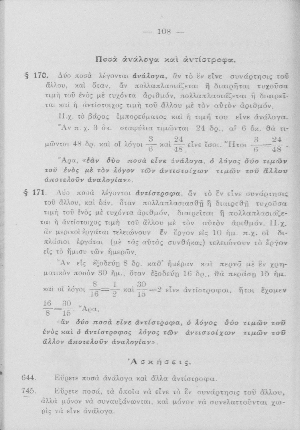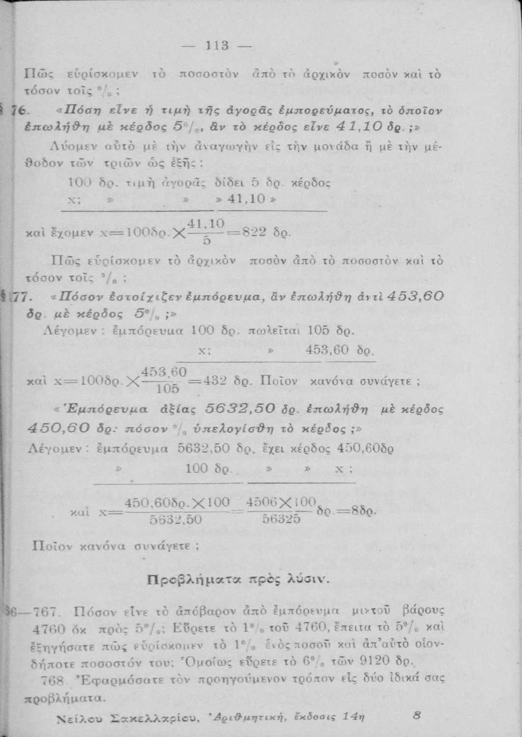 Σχολικό εγχειρίδιο Αριθμητικής για τα Ημιγυμνάσια και Γυμνάσια χωρισμένο σε θεωρία και ασκήσεις. Περιλαμβάνει και στοιχεία λογιστικής και καταστιχογραφίας. Ο συγγραφέας ήταν καθηγητής στο Πανεπιστήμιο Αθηνών.