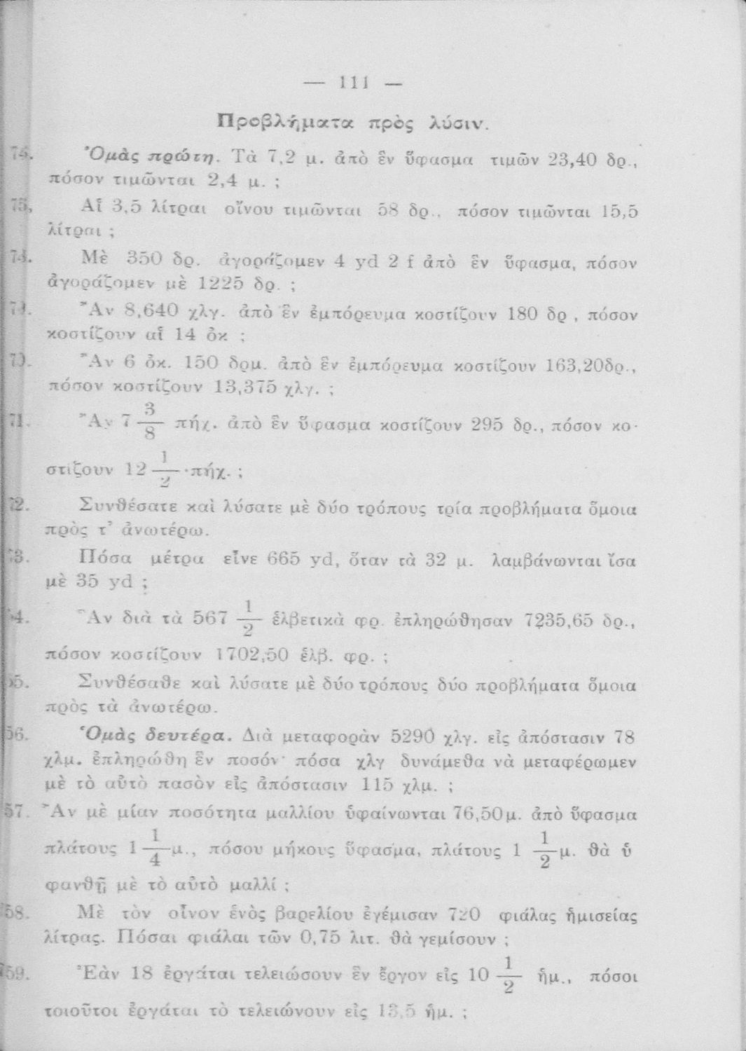 Σχολικό εγχειρίδιο Αριθμητικής για τα Ελληνικά Σχολεία χωρισμένο σε θεωρία και ασκήσεις που εστιάζει στις αριθμητικές πράξεις και τα κλάσματα. Περιέχει και παράρτημα λογιστικής.