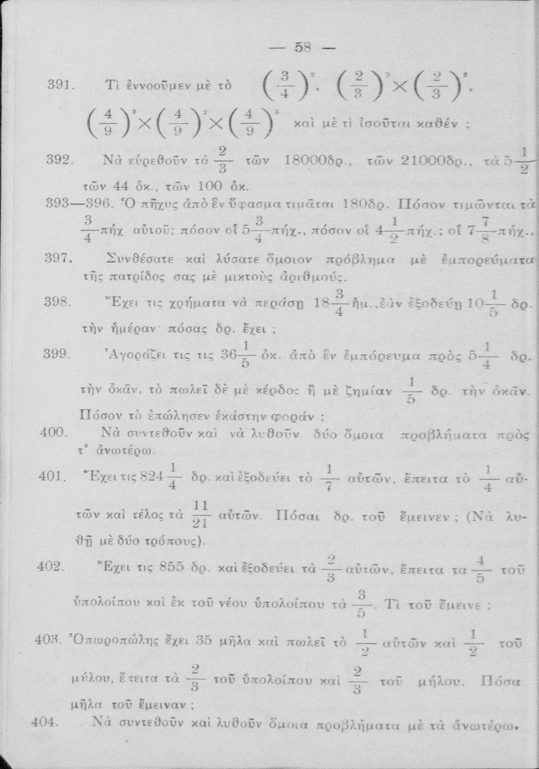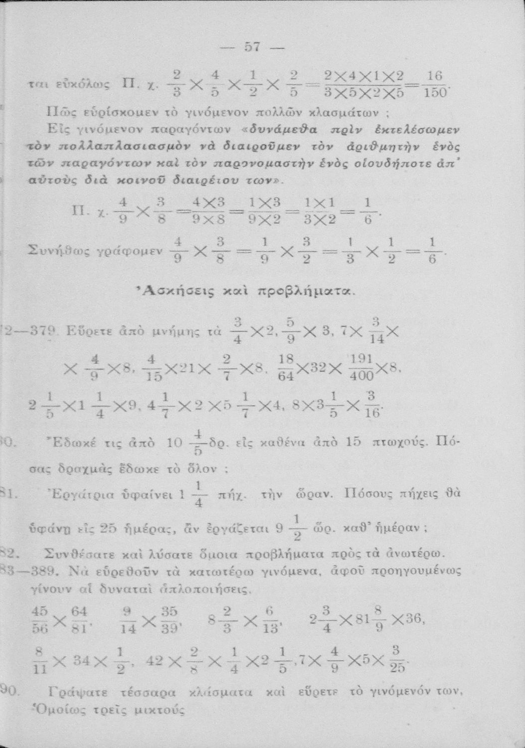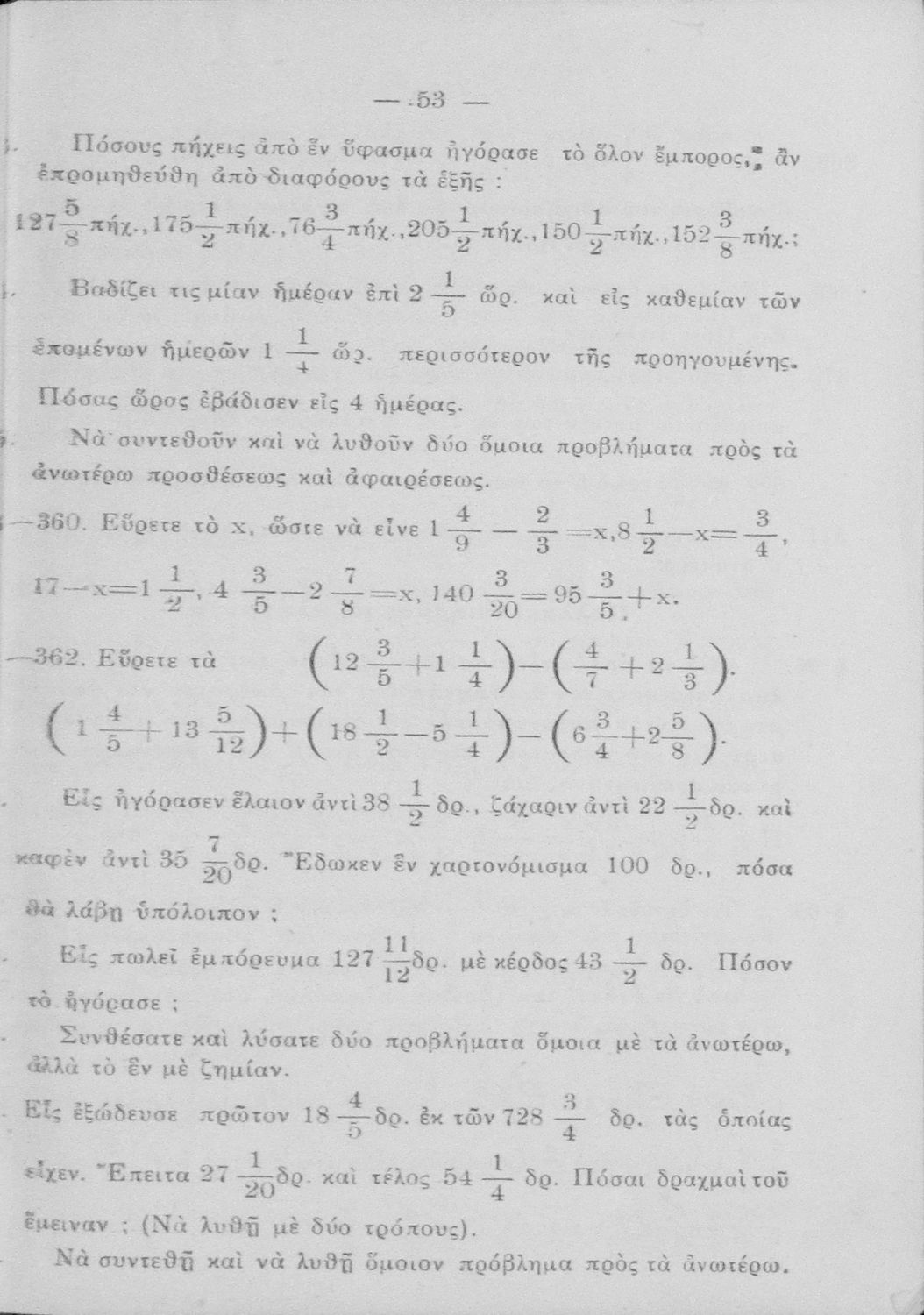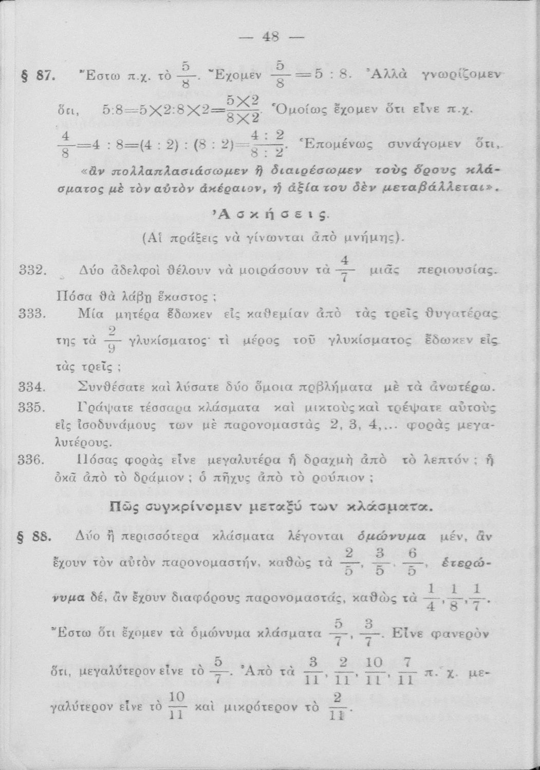 Σχολικό εγχειρίδιο Αριθμητικής για τα Ελληνικά Σχολεία χωρισμένο σε θεωρία και ασκήσεις που εστιάζει στις αριθμητικές πράξεις και τα κλάσματα. Περιέχει και παράρτημα λογιστικής.