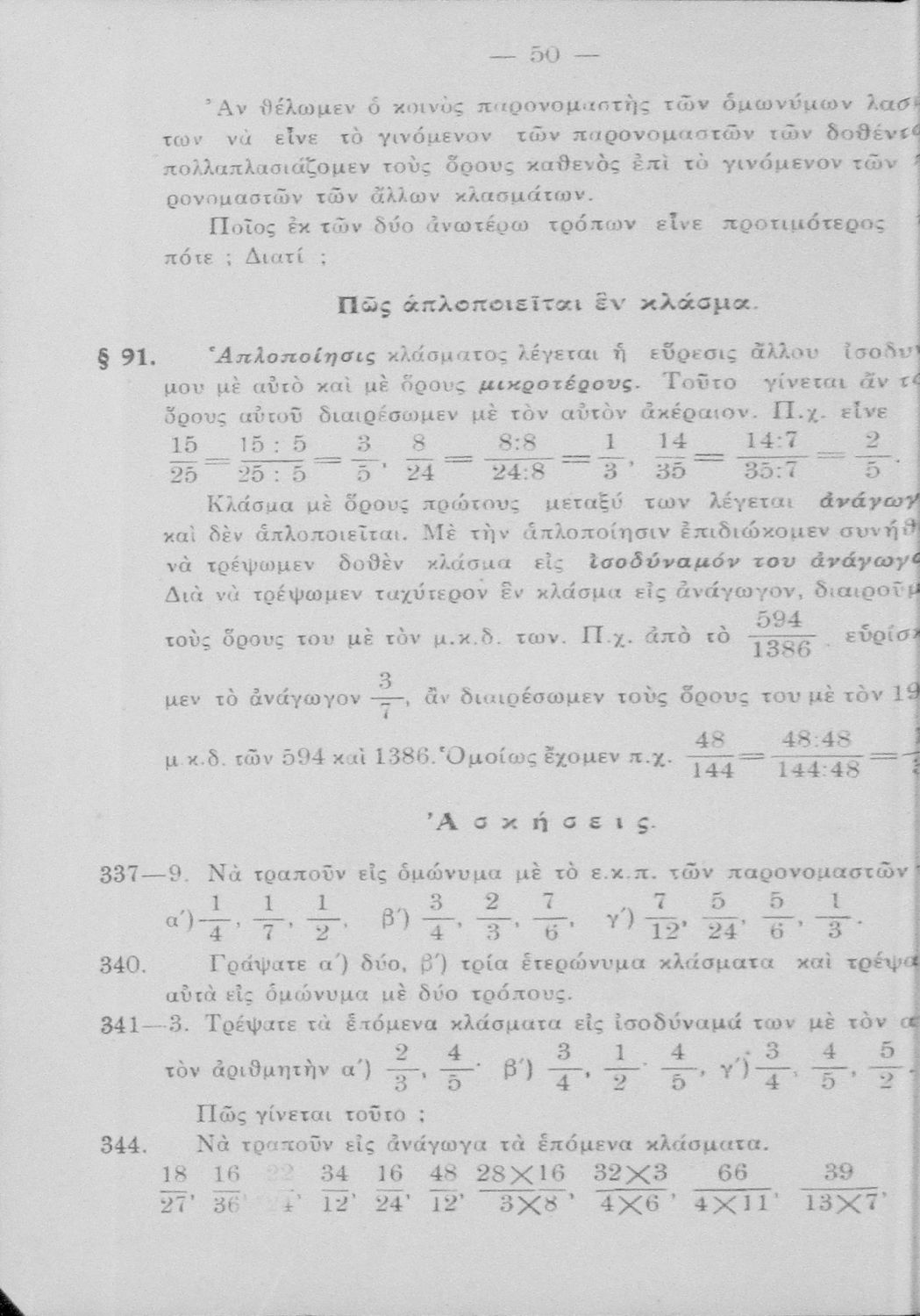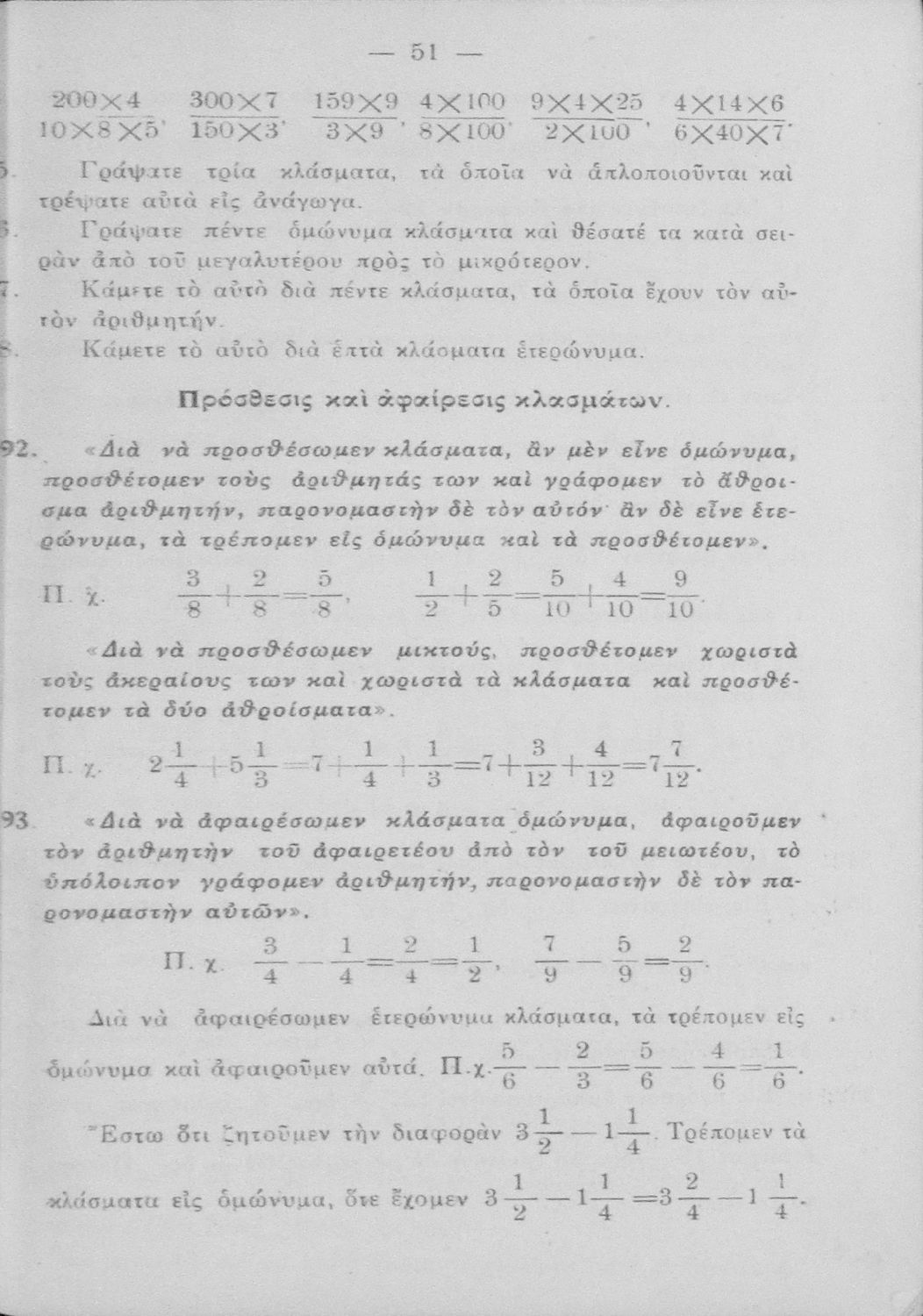 Σχολικό εγχειρίδιο Αριθμητικής Γυμνασίου που είναι χωρισμένο σε θεωρία και ασκήσεις και εστιάζει στις αριθμητικές πράξεις, τα κλάσματα και τις μεθόδους.