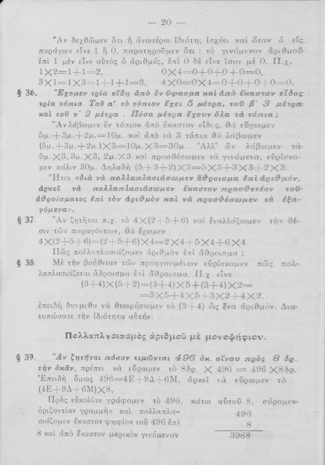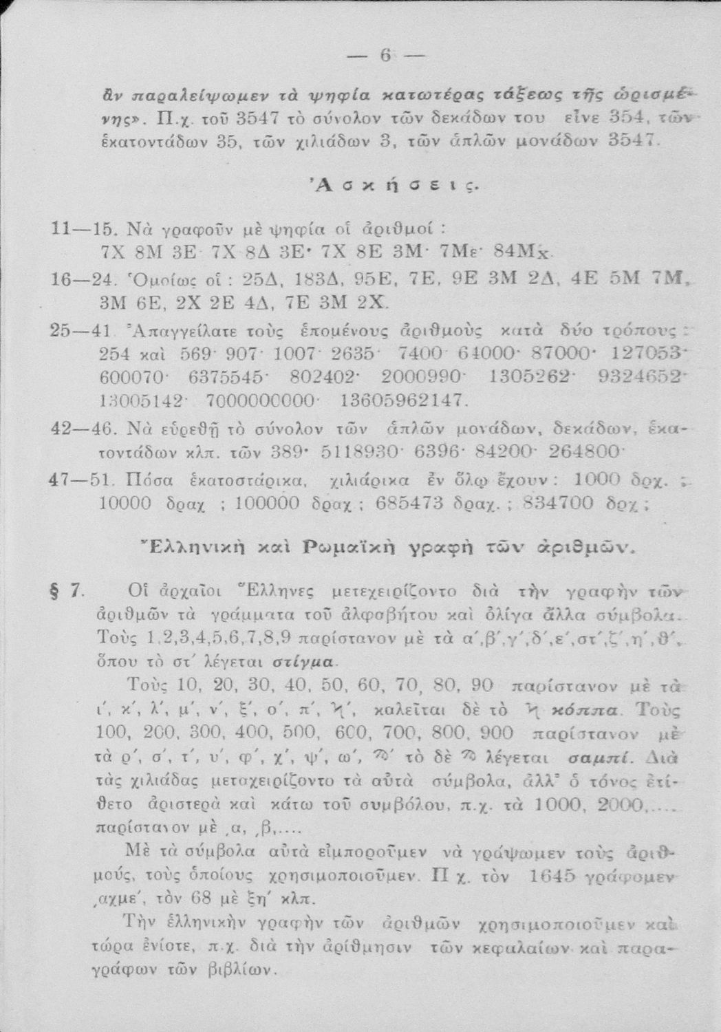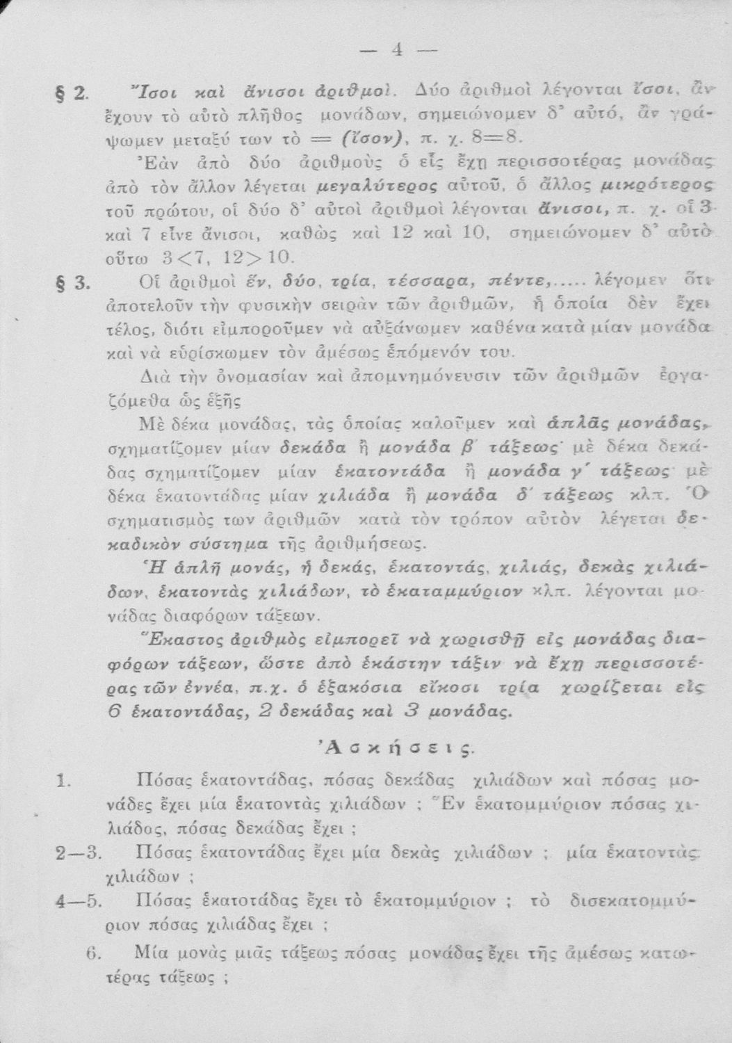 Σχολικό εγχειρίδιο Αριθμητικής για τα Ελληνικά Σχολεία χωρισμένο σε θεωρία και ασκήσεις που εστιάζει στις αριθμητικές πράξεις και τα κλάσματα. Περιέχει και παράρτημα λογιστικής.