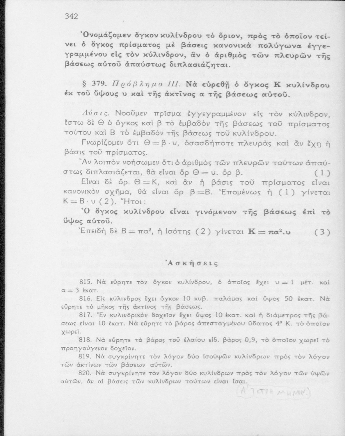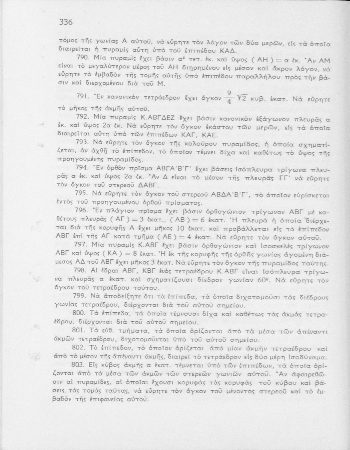 Σχολικό εγχειρίδιο Γεωμετρίας που περιλαμβάνει θεωρία και ασκήσεις και είναι χωρισμένο σε Επιπεδομετρία και Στερεομετρία.