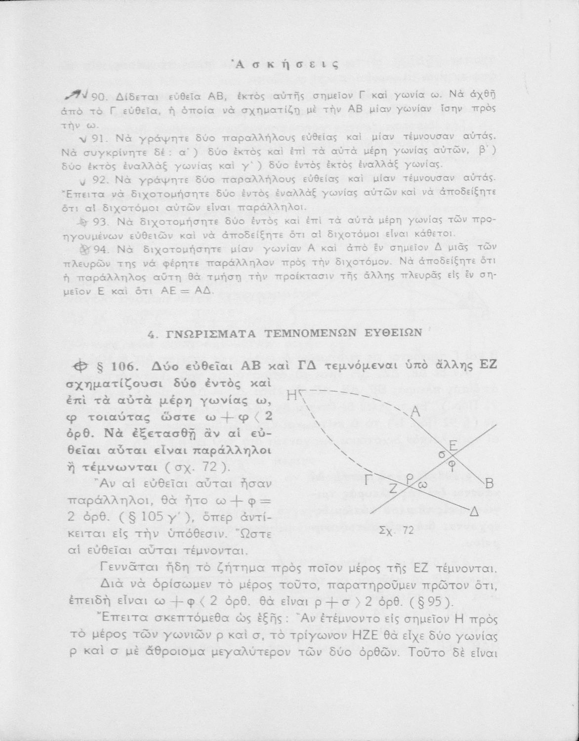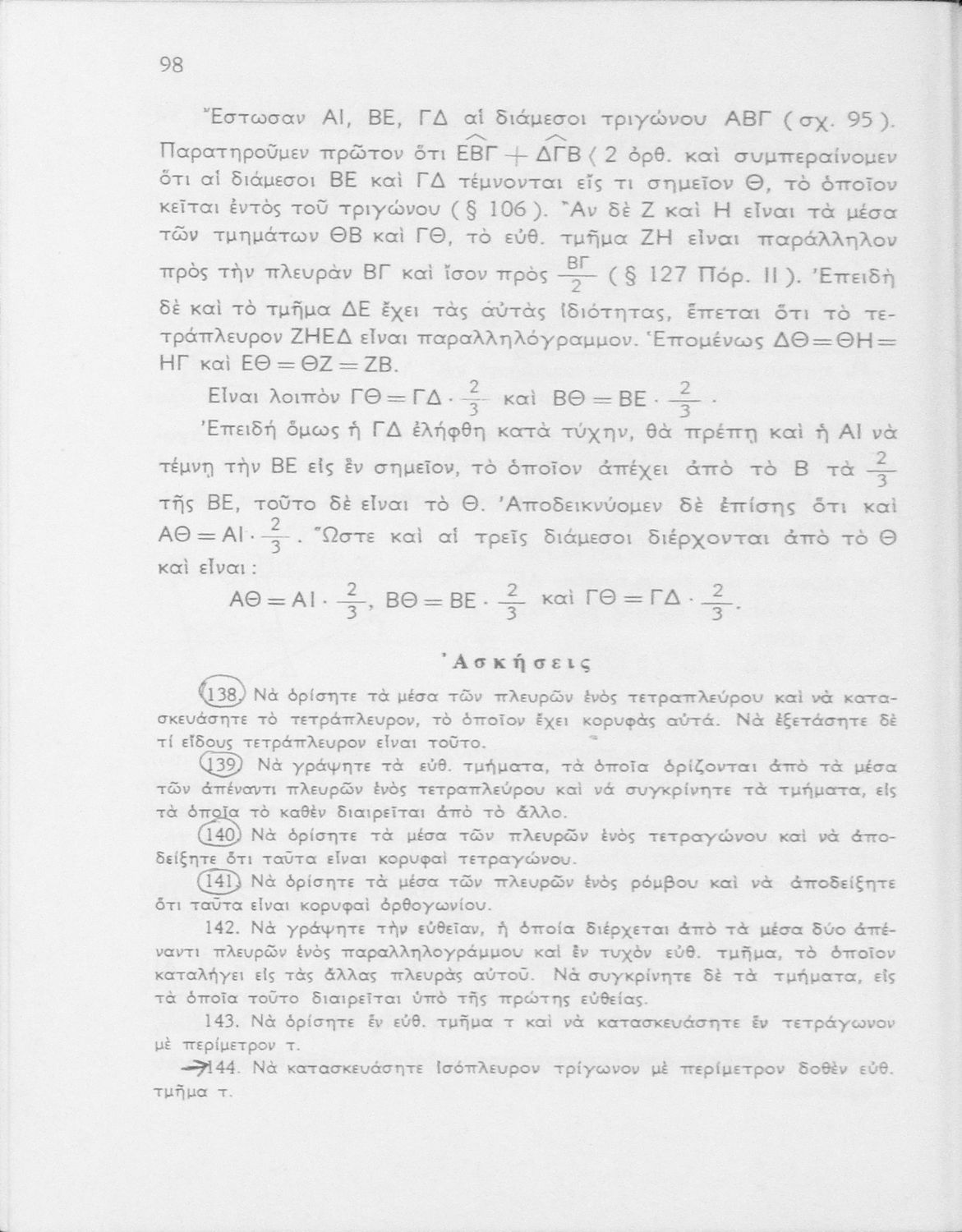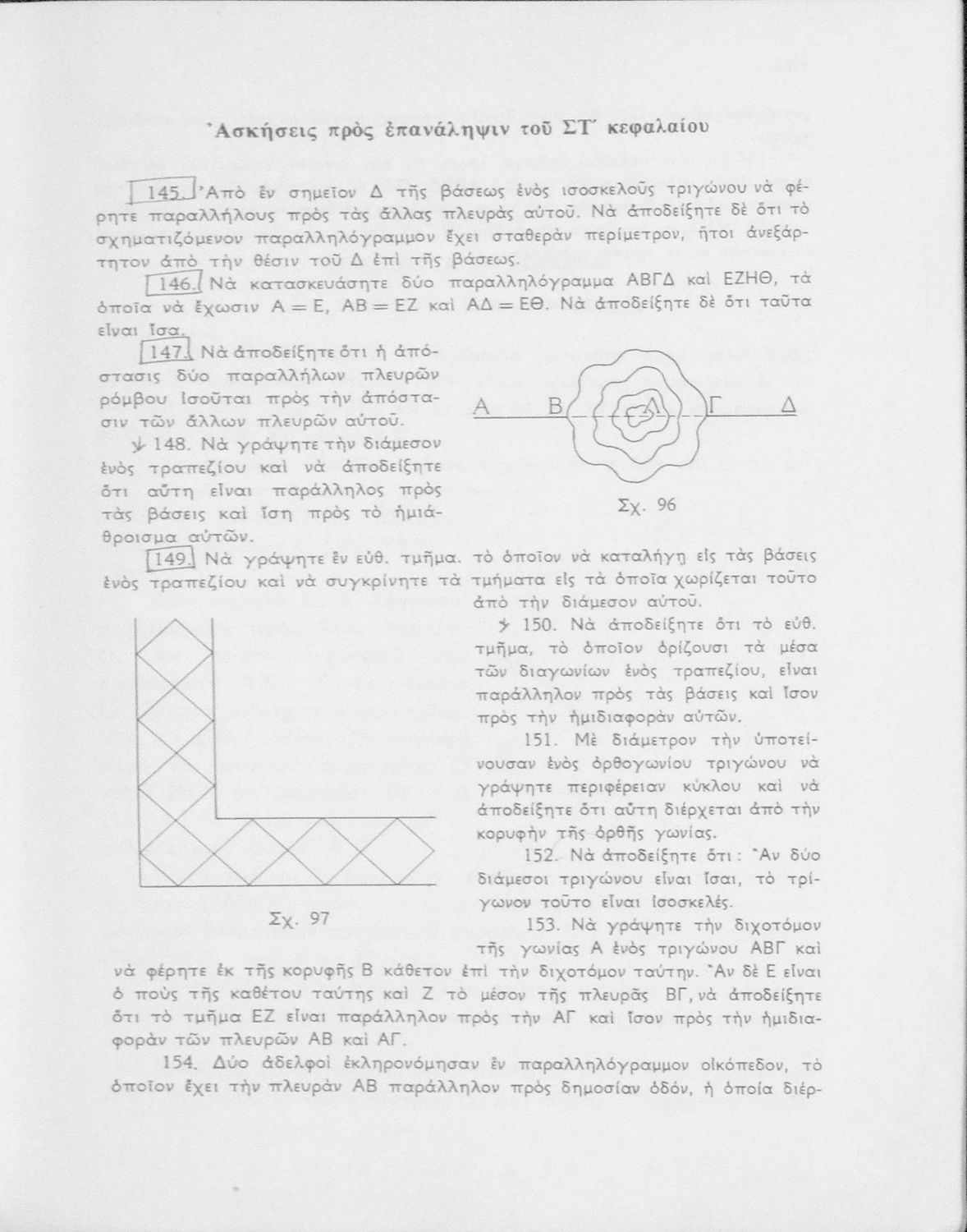 Σχολικό εγχειρίδιο Γεωμετρίας που περιλαμβάνει θεωρία και ασκήσεις και είναι χωρισμένο σε Επιπεδομετρία και Στερεομετρία.