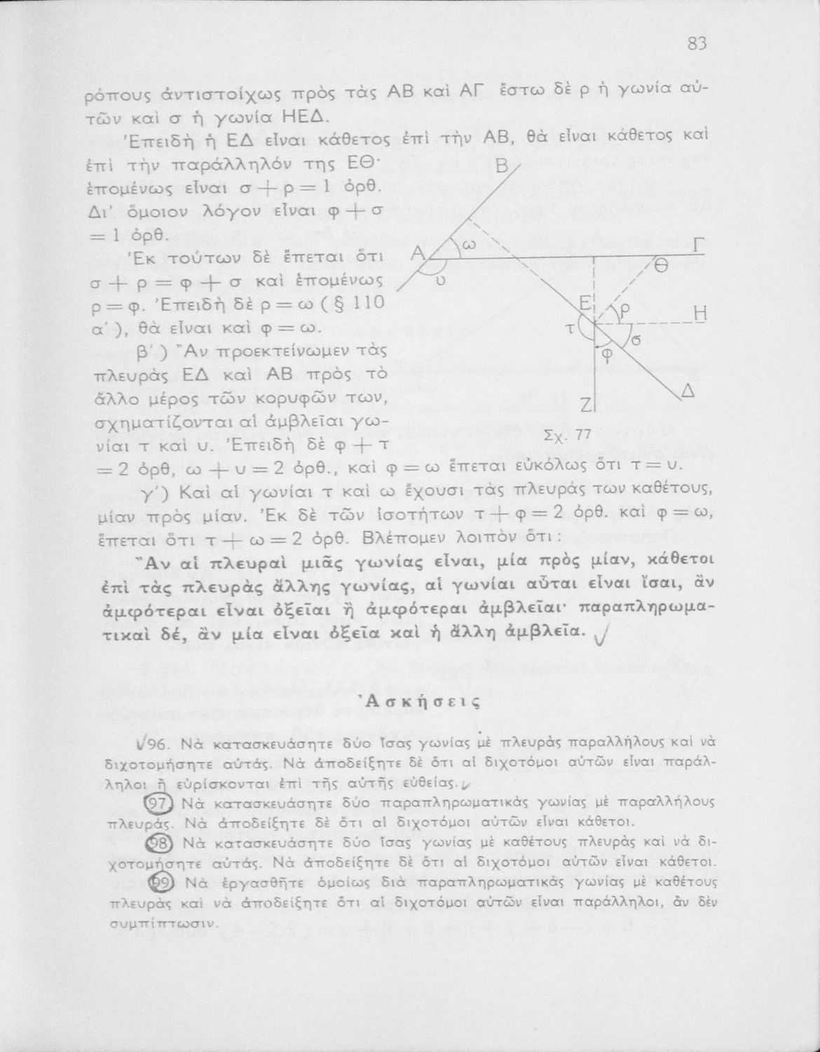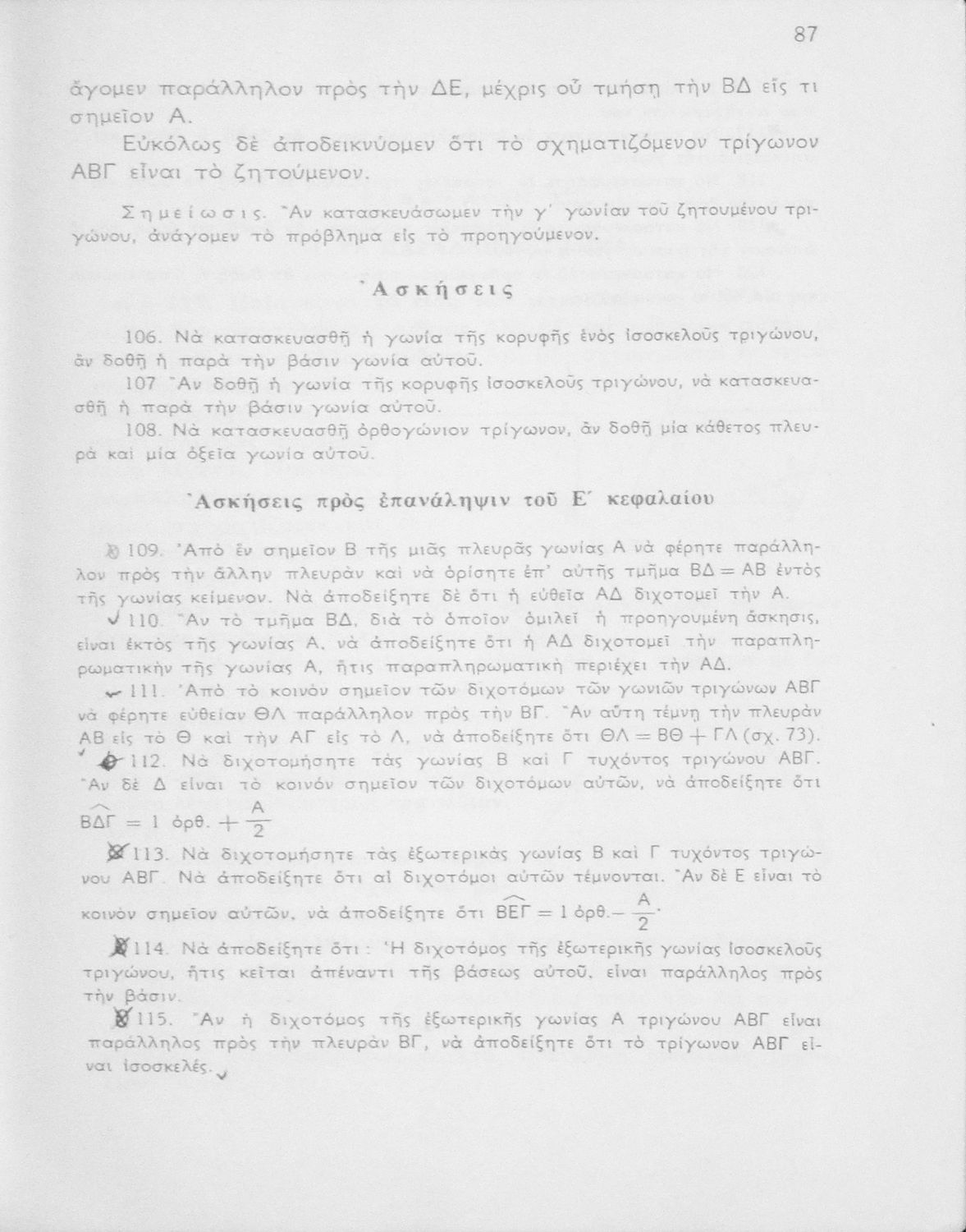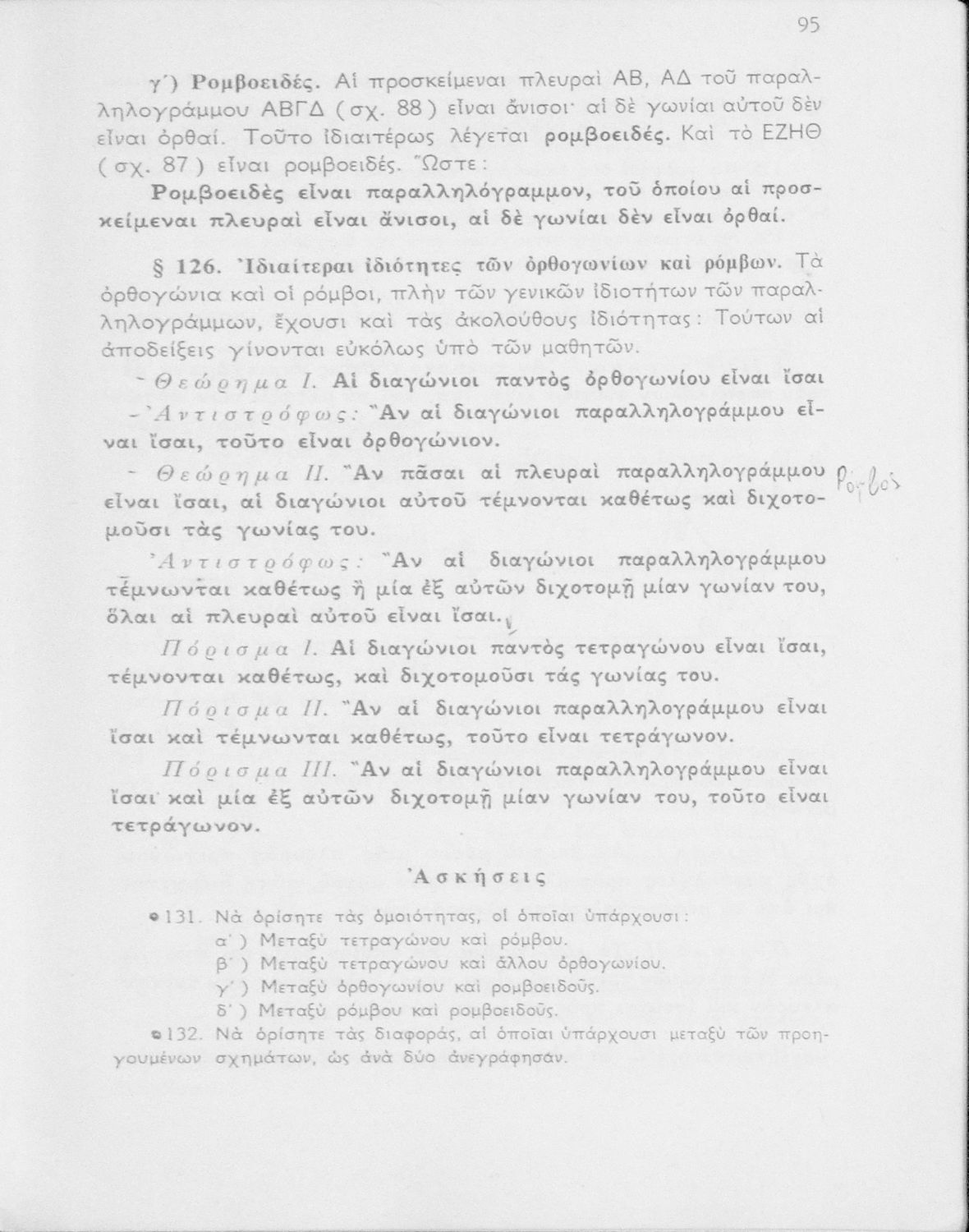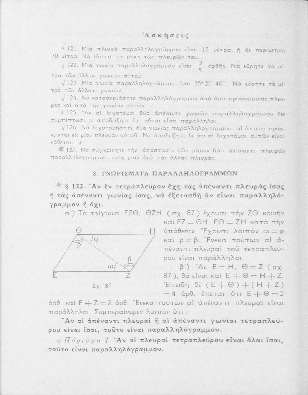 Σχολικό εγχειρίδιο Γεωμετρίας που περιλαμβάνει θεωρία και ασκήσεις και είναι χωρισμένο σε Επιπεδομετρία και Στερεομετρία.
