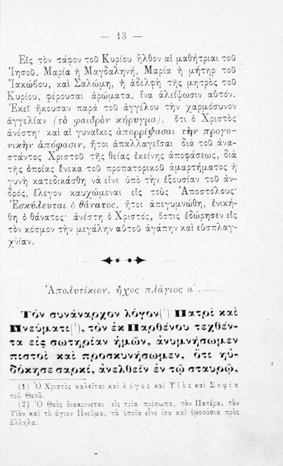 Τα Απολυτίκια ήτοι συλλογή και εξήγησις των απολυτίκιων της οκτώηχου των δεσποτικών και θεομητορικών εορτών και εορτών των αγίων : δια τας τρεις τάξεις των Ελληνικών Σχολείων