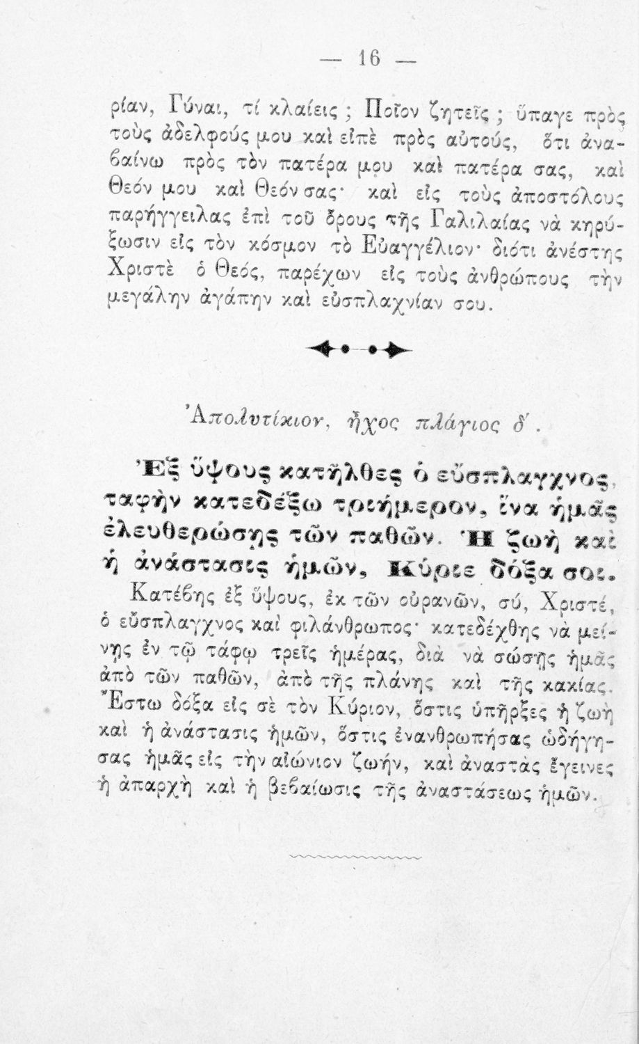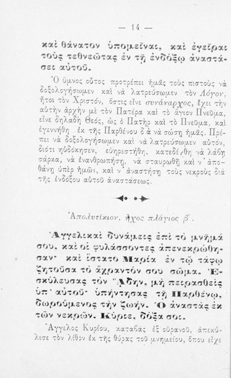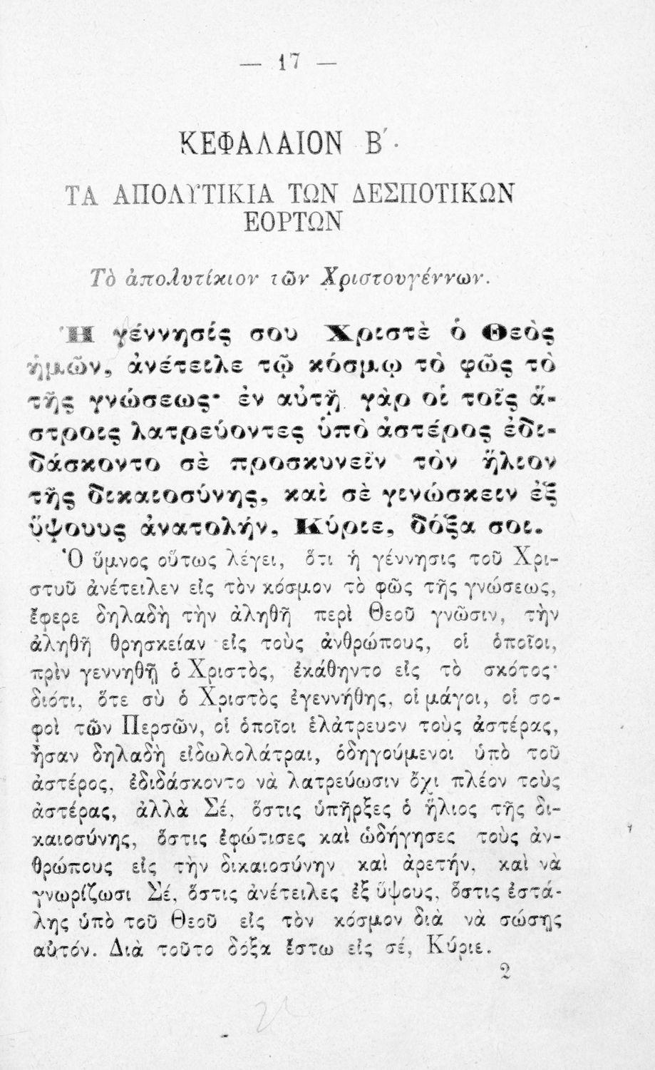 Σχολικό εγχειρίδιο Θρησκευτικών για τις Α΄, Β΄, Γ' Ελληνικού Σχολείου που περιλαμβάνει εισαγωγή στα απολυτίκια, απολυτίκια σε διάφορους ήχους και για διάφορες εορτές και ερμηνευτικές σημειώσεις