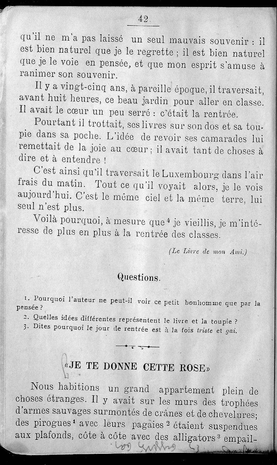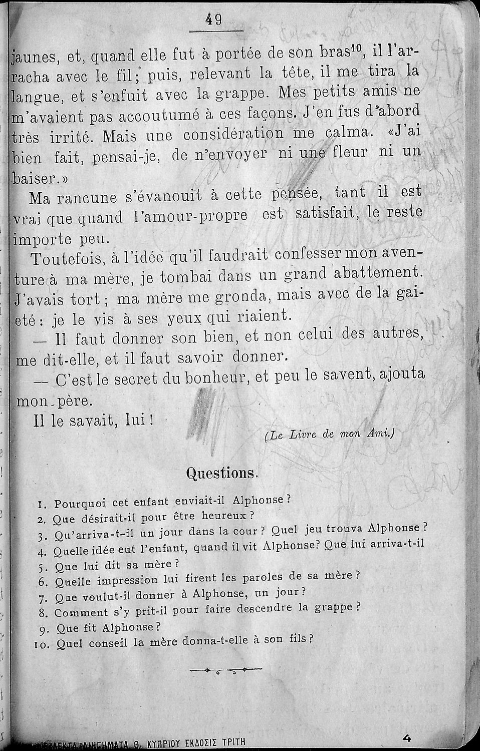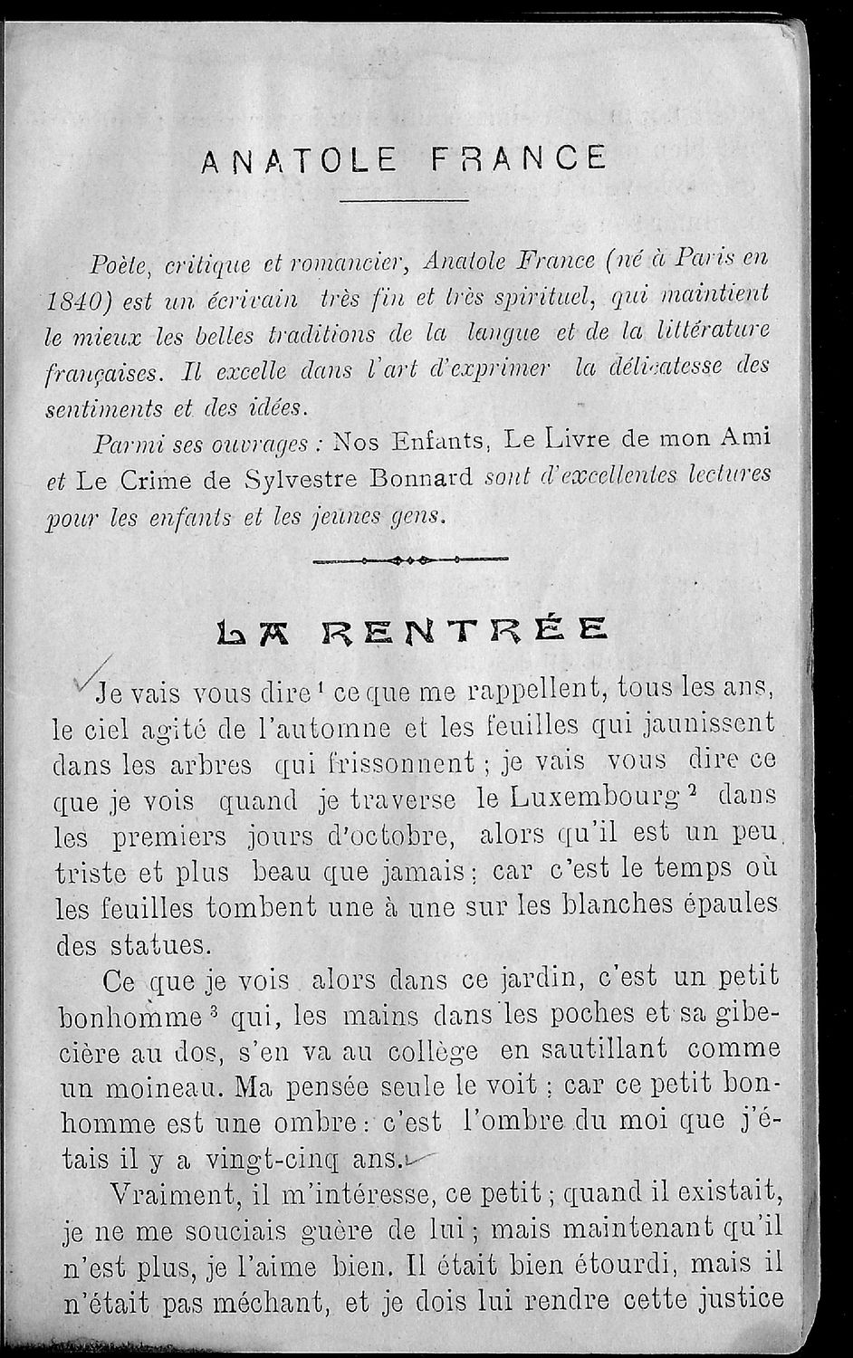 Σχολικό εγχειρίδιο Γαλλικών για τις Γ΄ και Δ΄ Γυμνασίου που περιλαμβάνει διηγήματα διάσημων Γάλλων συγγραφέων, ερωτήσεις επί του κειμένου και επεξηγηματικές σημειώσεις.