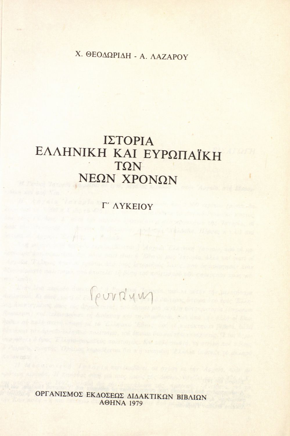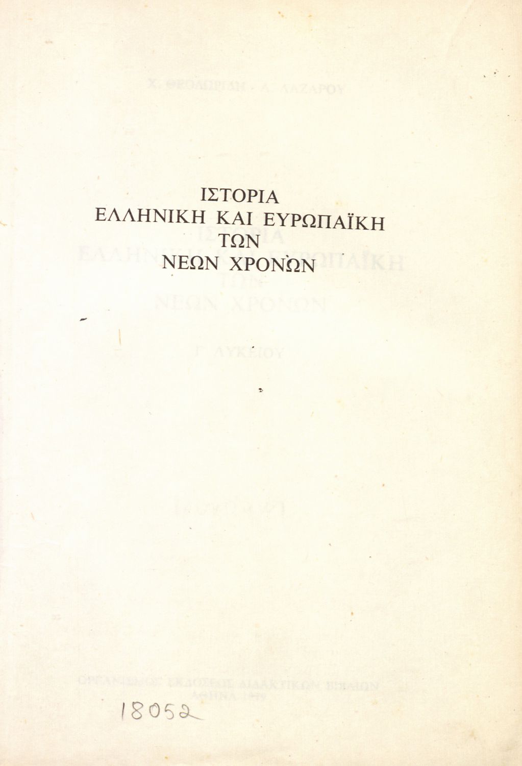 Τίτλος: Ιστορία ελληνική και ευρωπαϊκή των νέων χρόνων. Γ΄ Λυκείου