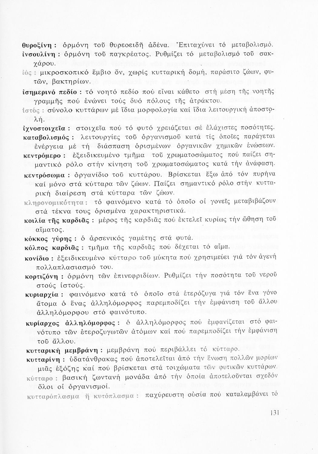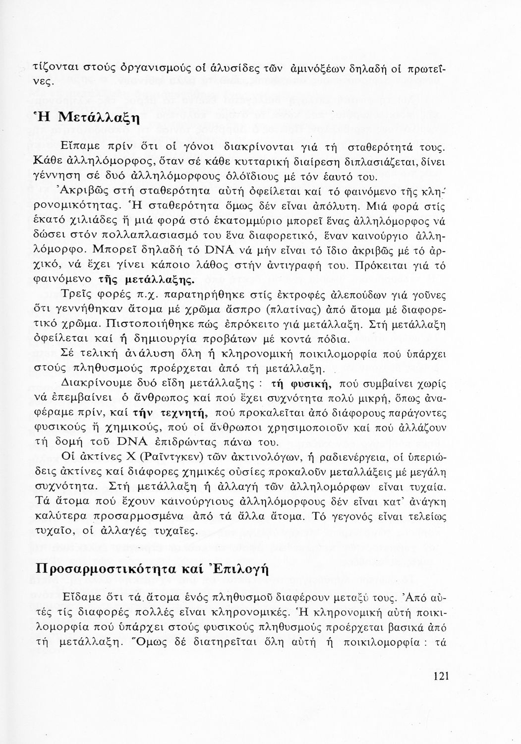 Σχολικό εγχειρίδιο Βιολογίας ΣΤ΄ Γυμνασίου που εστιάζει στις συνθήκες γέννησης, μεταβολής και θανάτου των έμβιων οργανισμών. Φέρει το σύμβολο της δικτατορίας. Ο συγγραφέας ήταν υφηγητής του Πανεπιστημίου ...