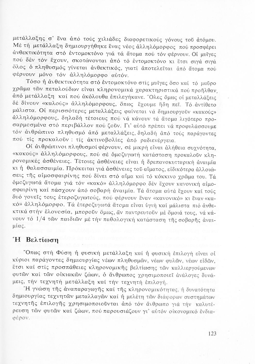 Σχολικό εγχειρίδιο Βιολογίας Γ΄ Γυμνασίου που εστιάζει στις συνθήκες γέννησης, μεταβολής και θανάτου των έμβιων οργανισμών. Φέρει το σύμβολο της δικτατορίας.