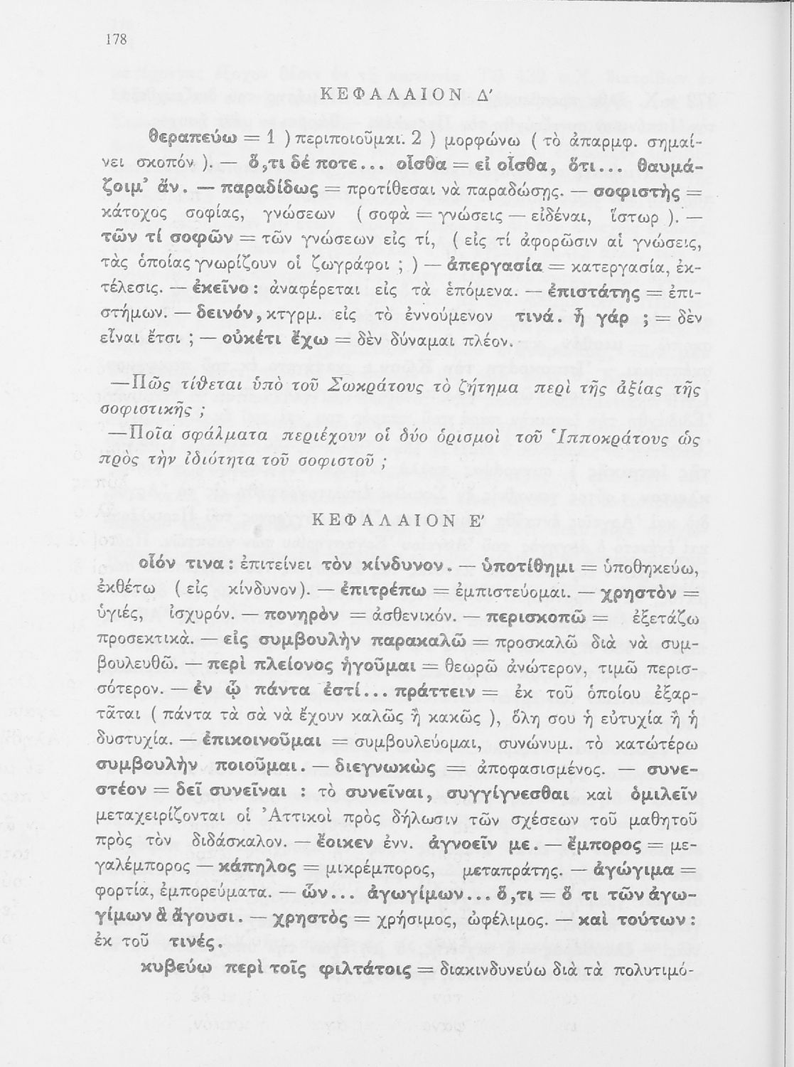 Σχολικό εγχειρίδιο για τις Τάξεις του Γυμνασίου για το μάθημα των Αρχαίων Ελληνικών. Περιλαμβάνει αποσπάσματα του αρχαίου κειμένου από τους διαλόγους του Πλάτωνα. Περιέχει μετάφραση ερμηνευτικά, πραγματολογικά