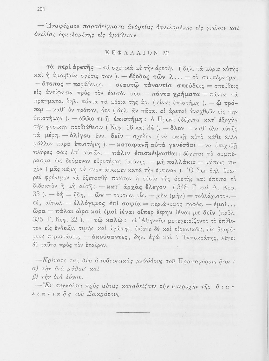 Σχολικό εγχειρίδιο για τις Τάξεις του Γυμνασίου για το μάθημα των Αρχαίων Ελληνικών. Περιλαμβάνει αποσπάσματα του αρχαίου κειμένου από τους διαλόγους του Πλάτωνα. Περιέχει μετάφραση ερμηνευτικά, πραγματολογικά