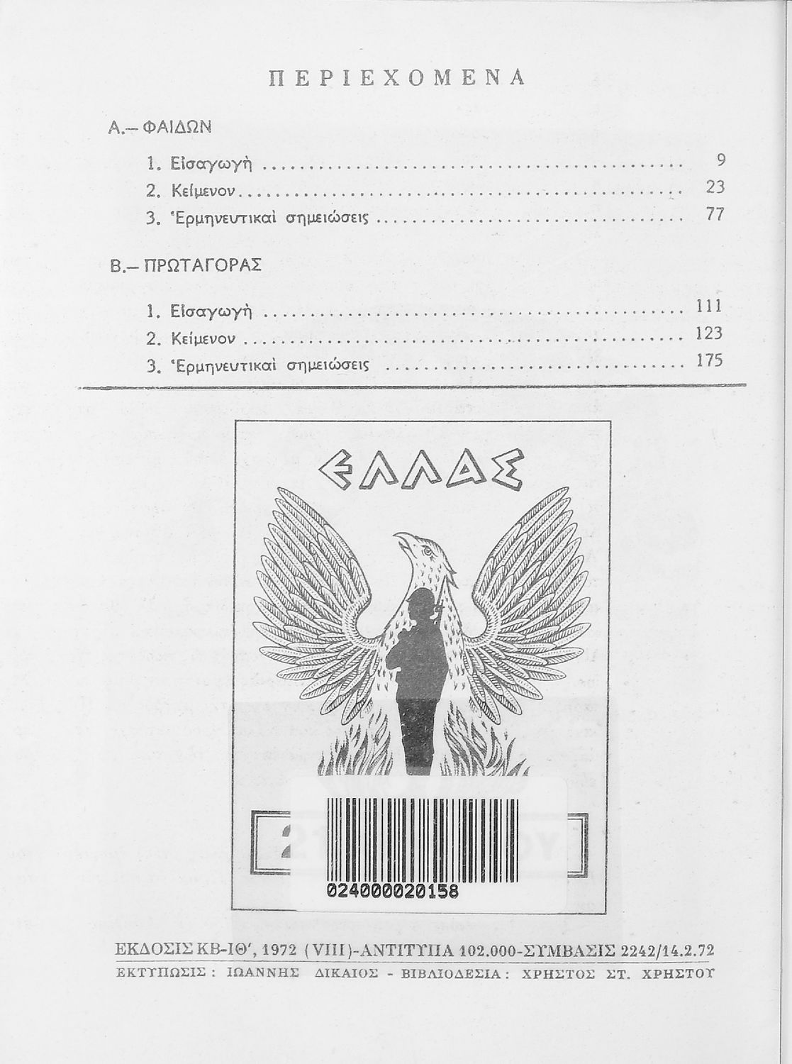 Τίτλος: Πλάτωνος Διάλογοι Φαίδων - Πρωταγόρας ΣΤ΄ Γυμνασίου