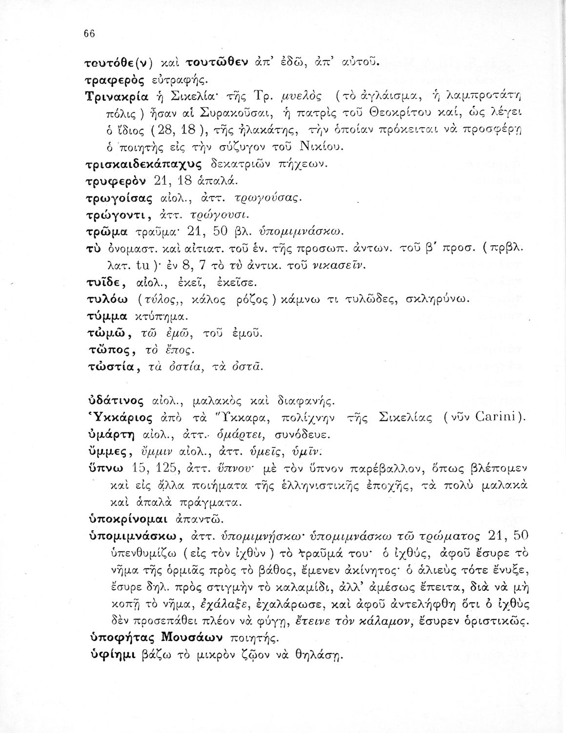 Μαθητικό βοήθημα Αρχαίων Ελληνικών Γ΄ Λυκείου που περιέχει τα Ειδύλλια ου Θεόκριτου, μετάφραση, και γραμματικά και συντακτικά σχόλια.