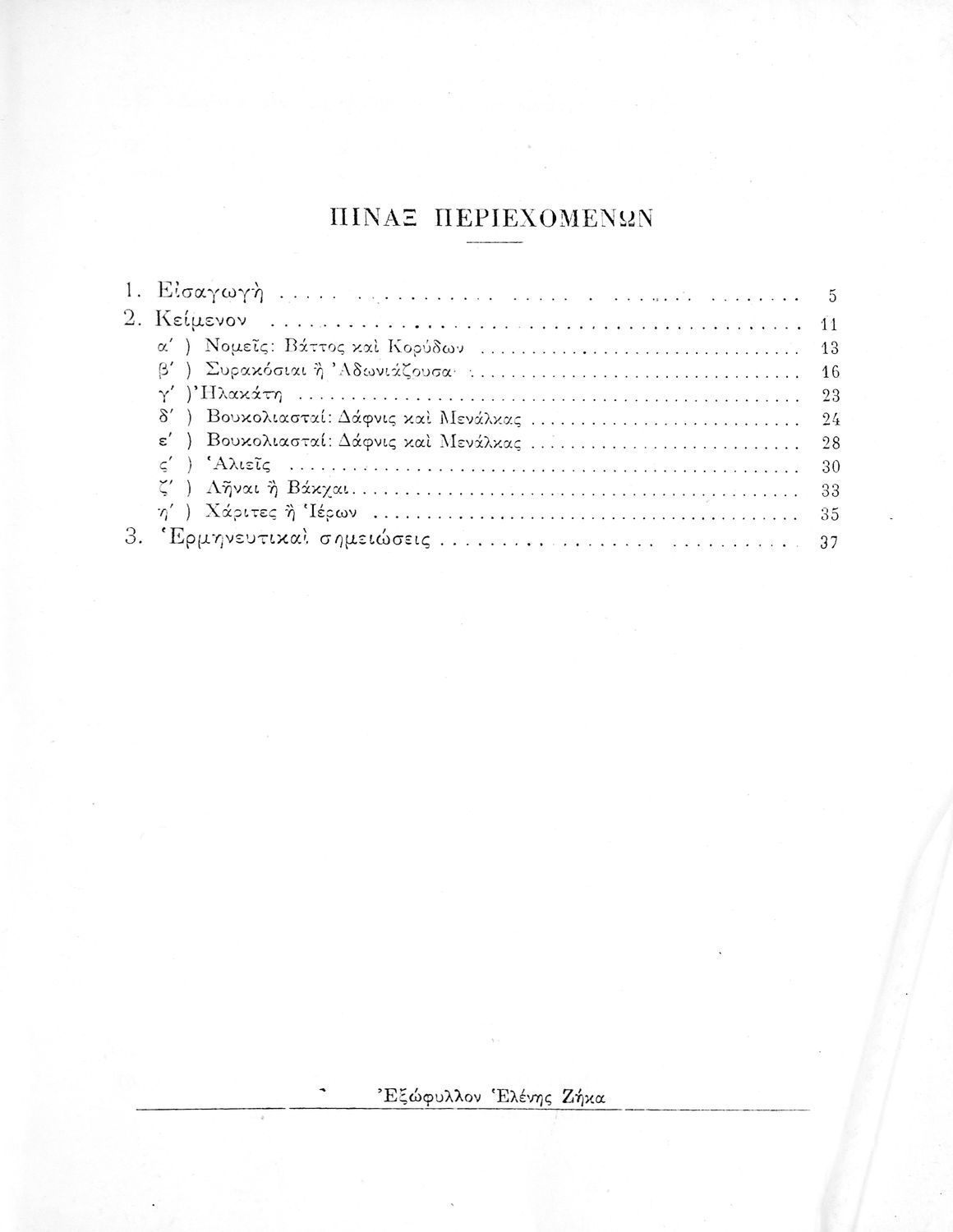 Σχολικό εγχειρίδιο Αρχαίων Ελληνικών Γ΄ Λυκείου που περιλαμβάνει εισαγωγή στη ζωή και το έργο του Θεόκριτου, τα Ειδύλλιά του και ερμηνευτικά και πραγματολογικά σχόλια.