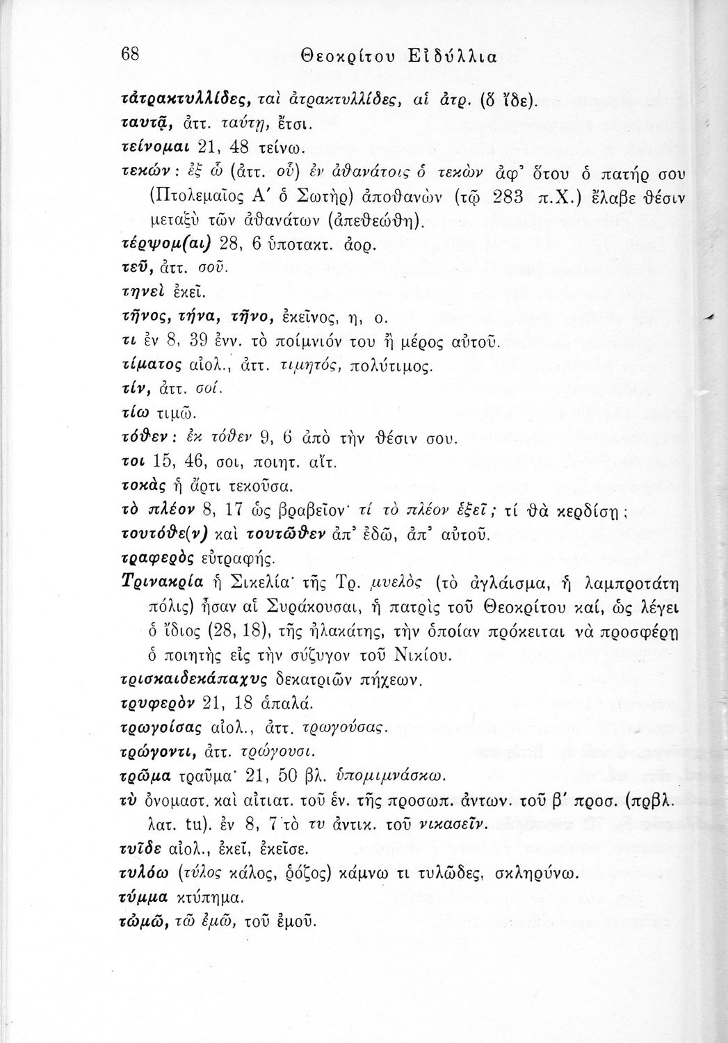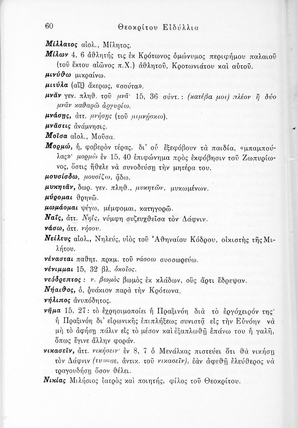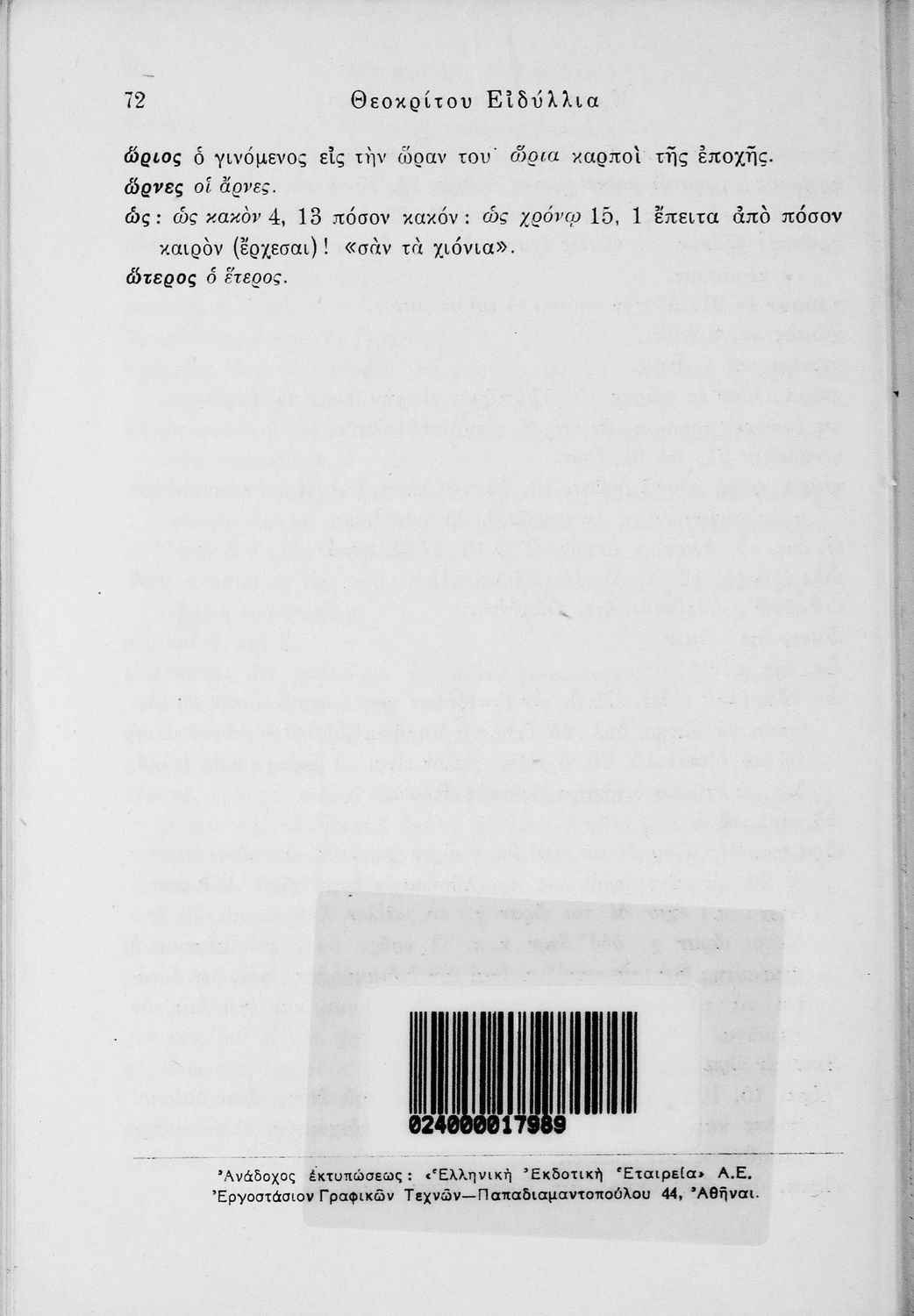 Σχολικό εγχειρίδιο Αρχαίων Ελληνικών ΣΤ΄ Γυμνασίου που περιλαμβάνει εισαγωγή στη ζωή και το έργο του Θεόκριτου, τα Ειδύλλιά του και ερμηνευτικά σχόλια.