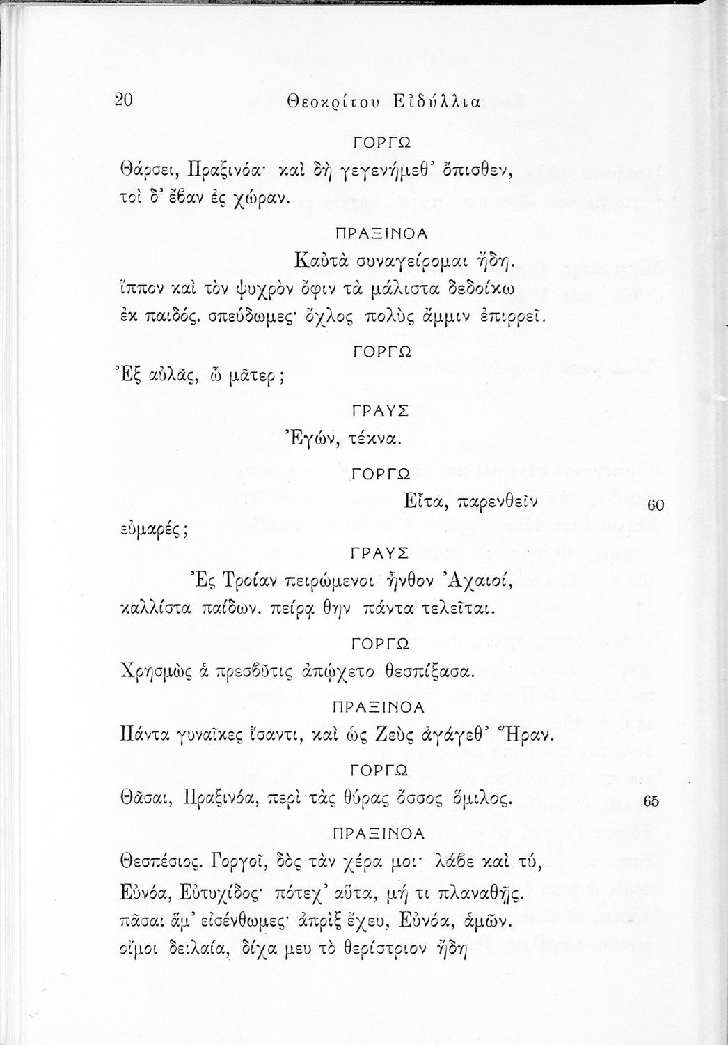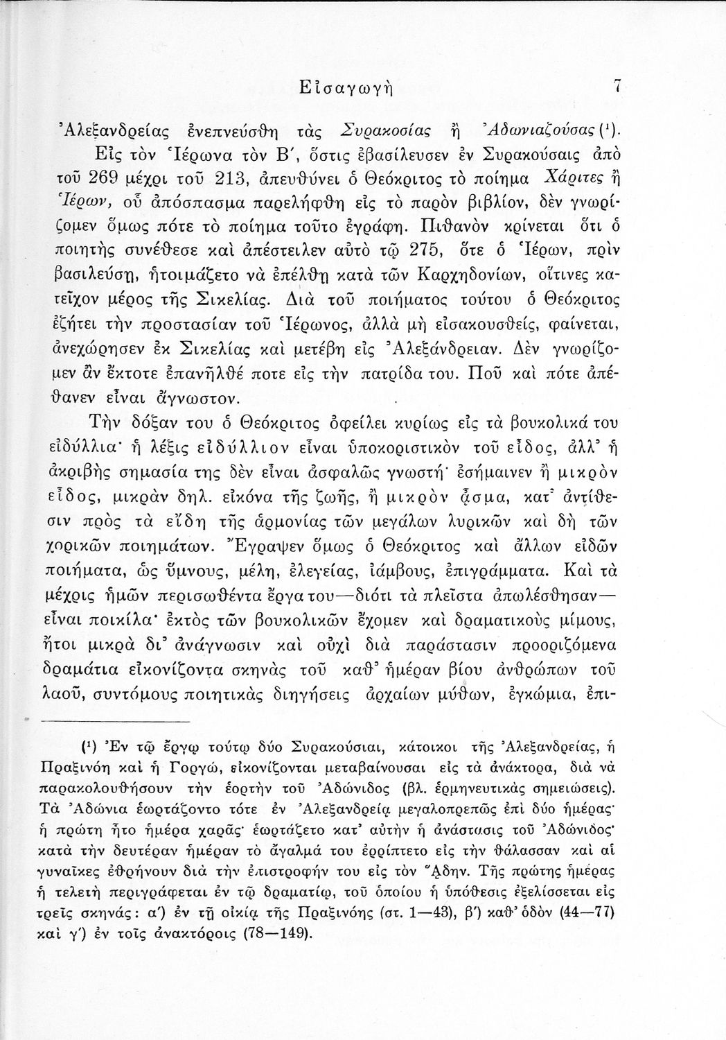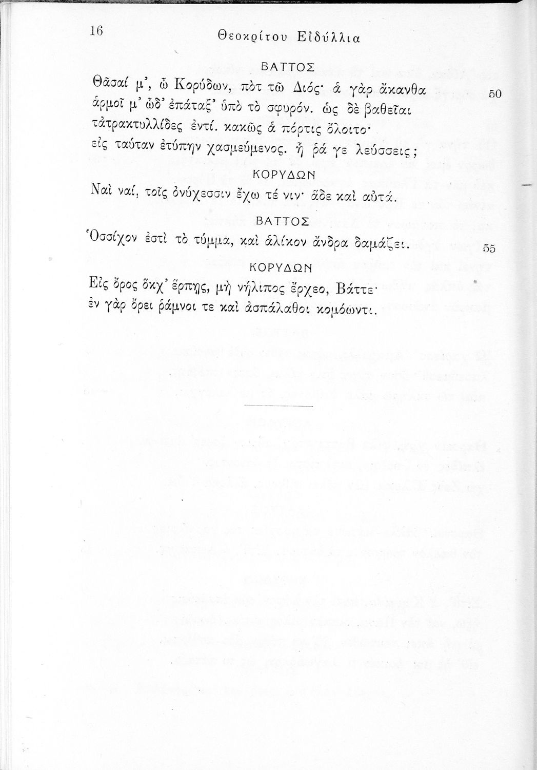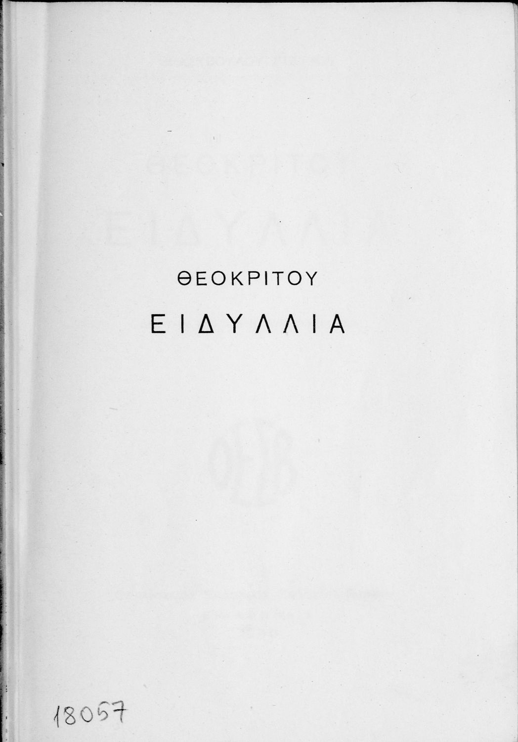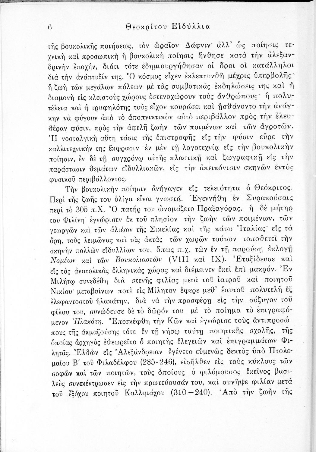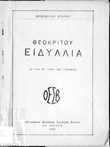 Σχολικό εγχειρίδιο Αρχαίων Ελληνικών ΣΤ΄ Γυμνασίου που περιλαμβάνει εισαγωγή στη ζωή και το έργο του Θεόκριτου, τα Ειδύλλιά του και ερμηνευτικά σχόλια.