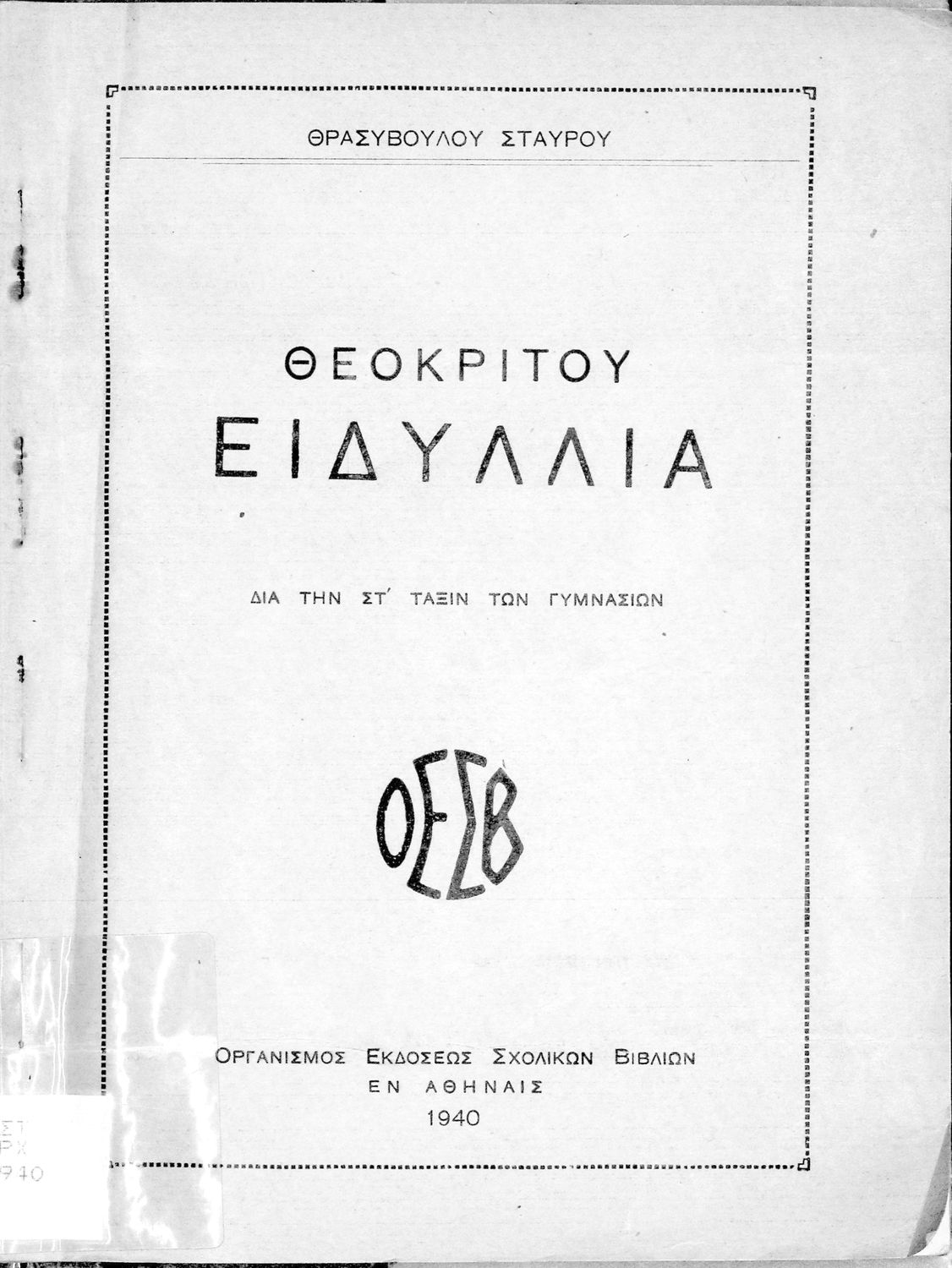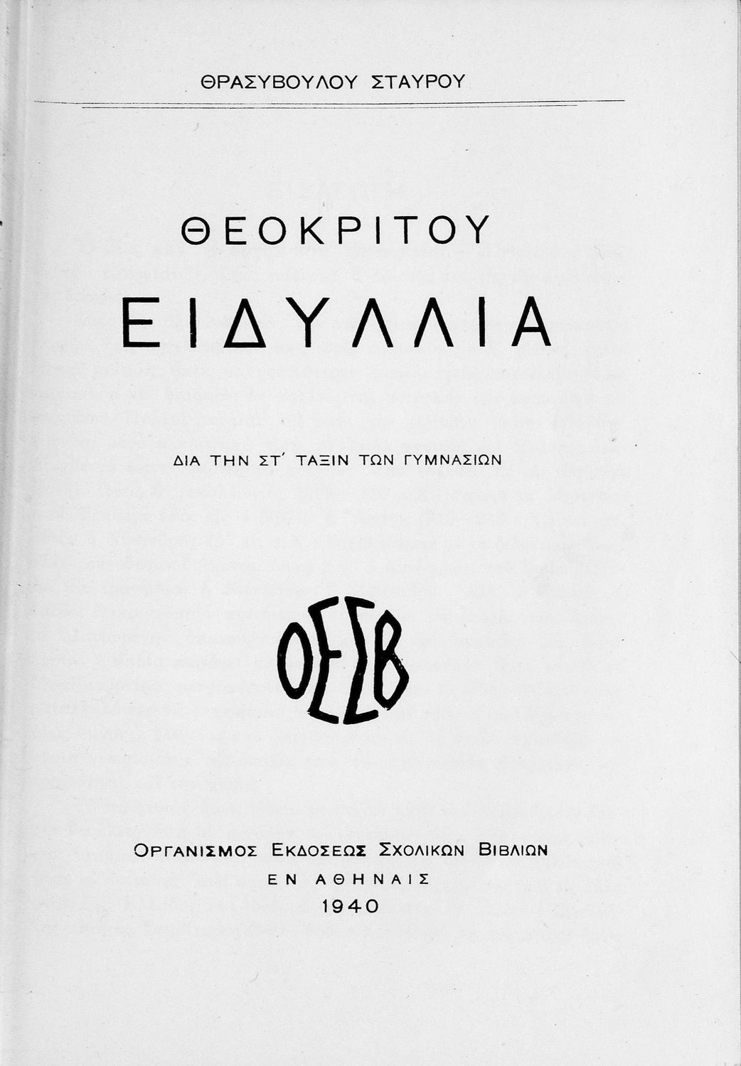 Εκδότης: Οργανισμός Εκδόσεως Σχολικών Βιβλίων Έτος έκδοσης: 1940 Τόπος έκδοσης: Αθήνα |