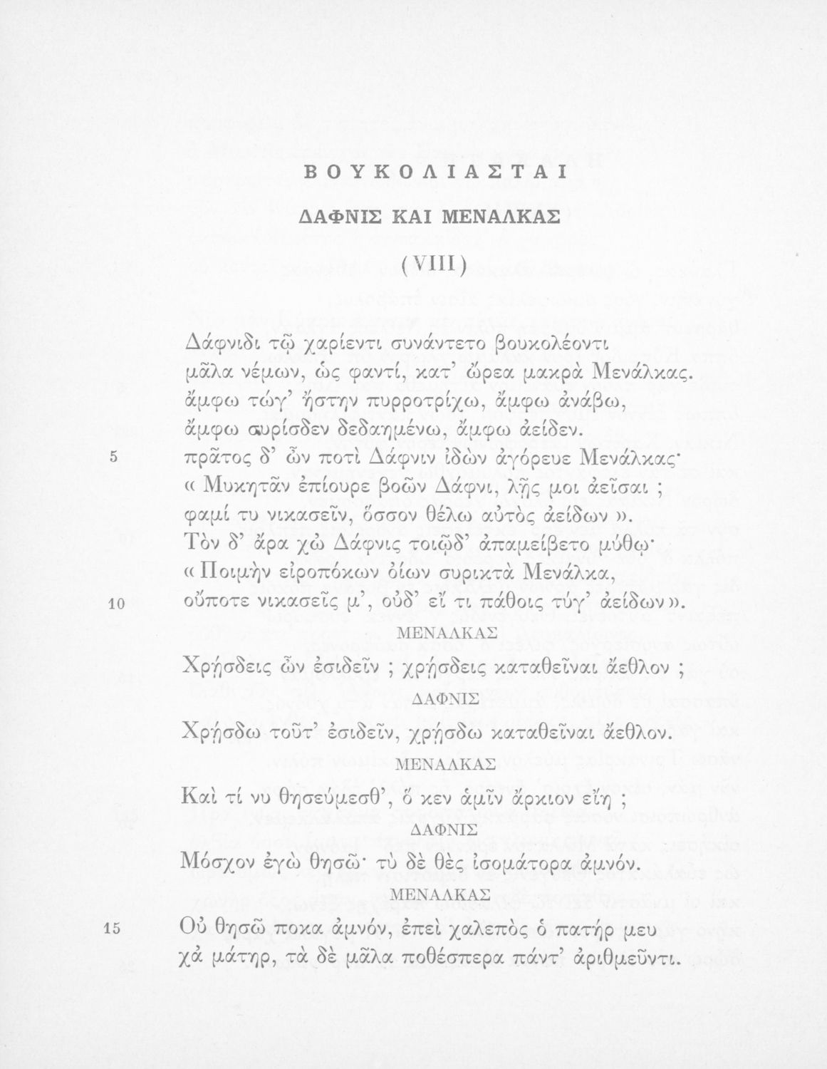 Μαθητικό βοήθημα Αρχαίων Ελληνικών Η' Γυμνασίου που περιέχει μετάφραση των Ειδυλλίων του Θεόκριτου, συντακτική ανάλυση και ερμηνευτικά σχόλια.
