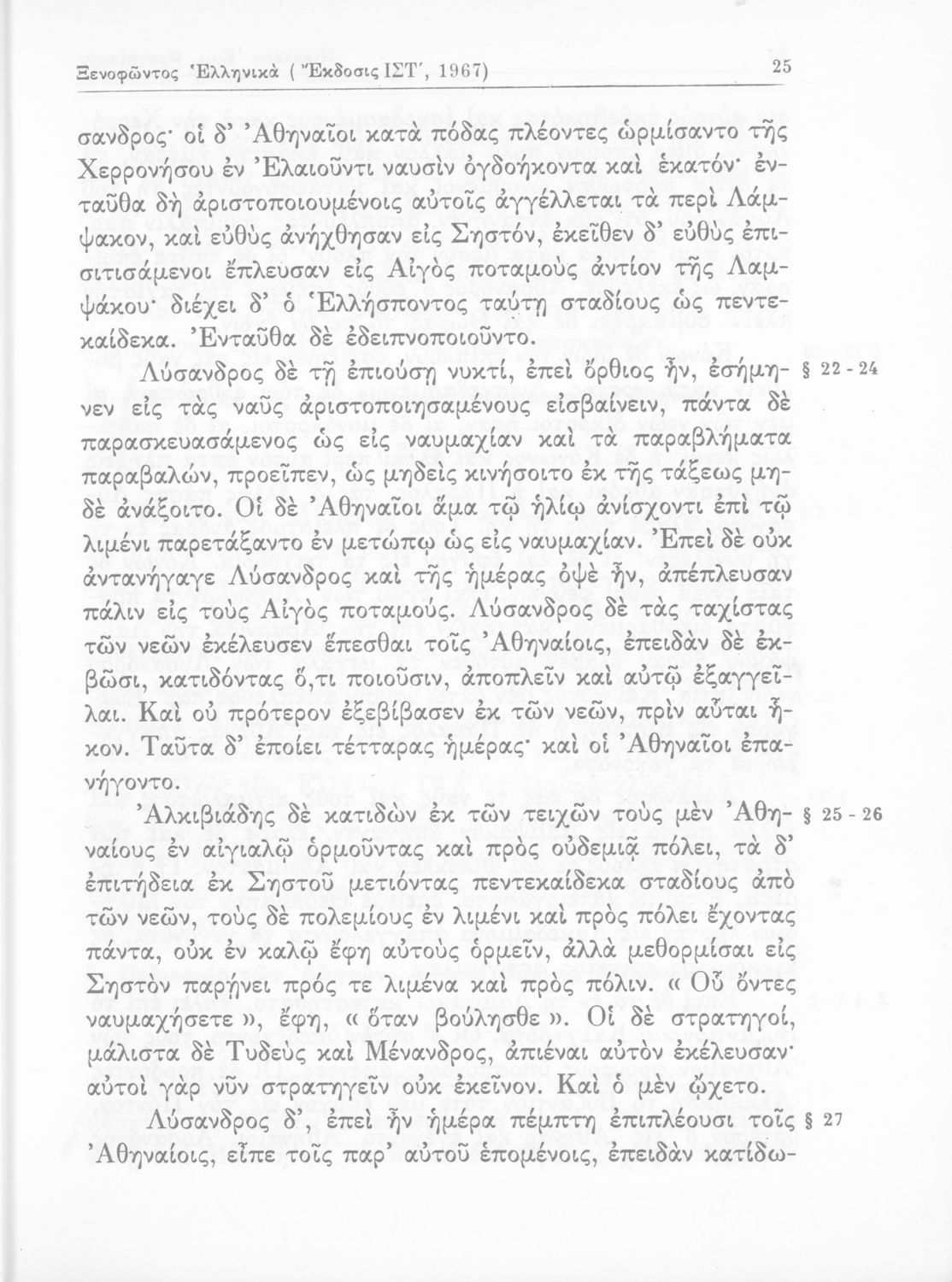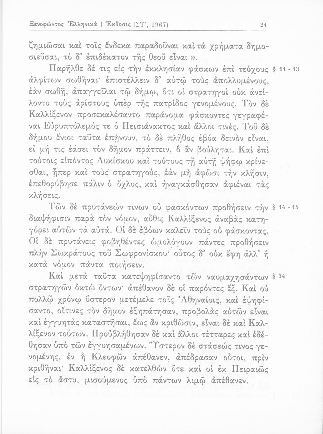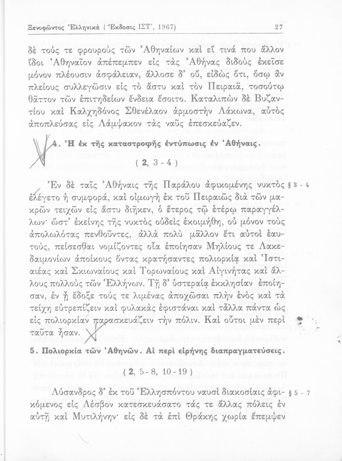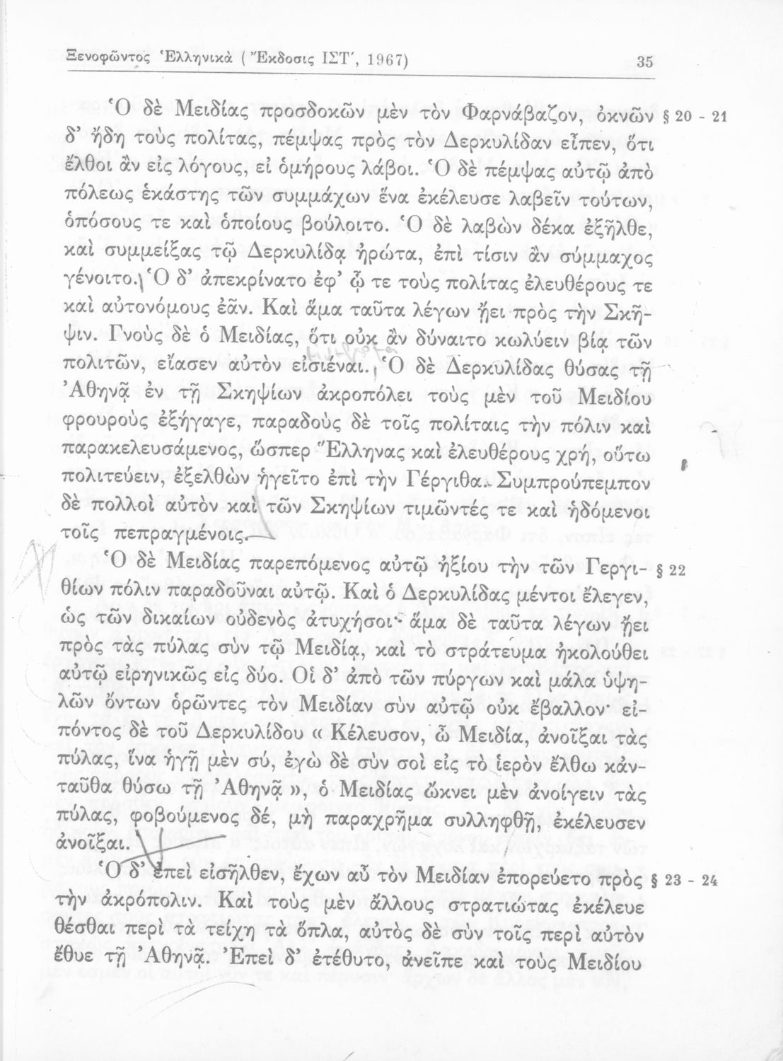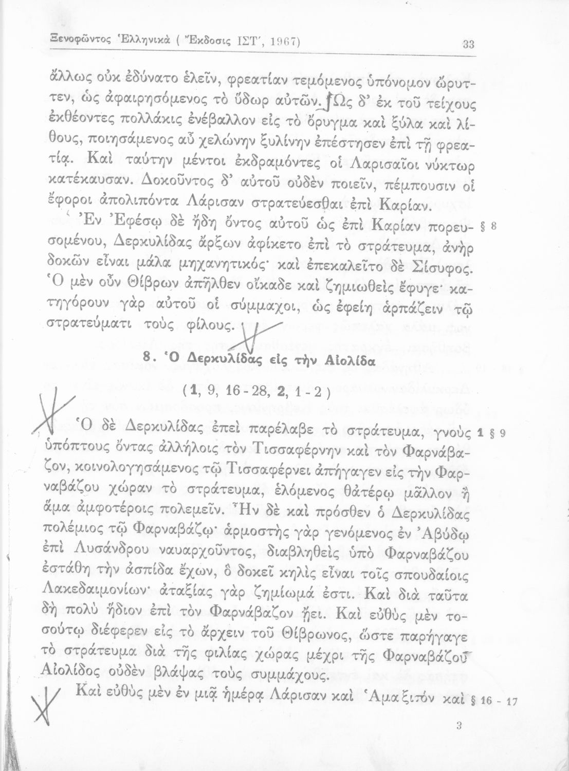 Σχολικό εγχειρίδιο Αρχαίων ελληνικών Α΄ Λυκείου που περιλαμβάνει αποσπάσματα από τα Ελληνικά του Ξενοφώντα, εισαγωγή στη ζωή και το έργο του, ερμηνευτικές σημειώσεις, τοπογραφικούς πίνακες και σχεδιαγράμματα μαχών.