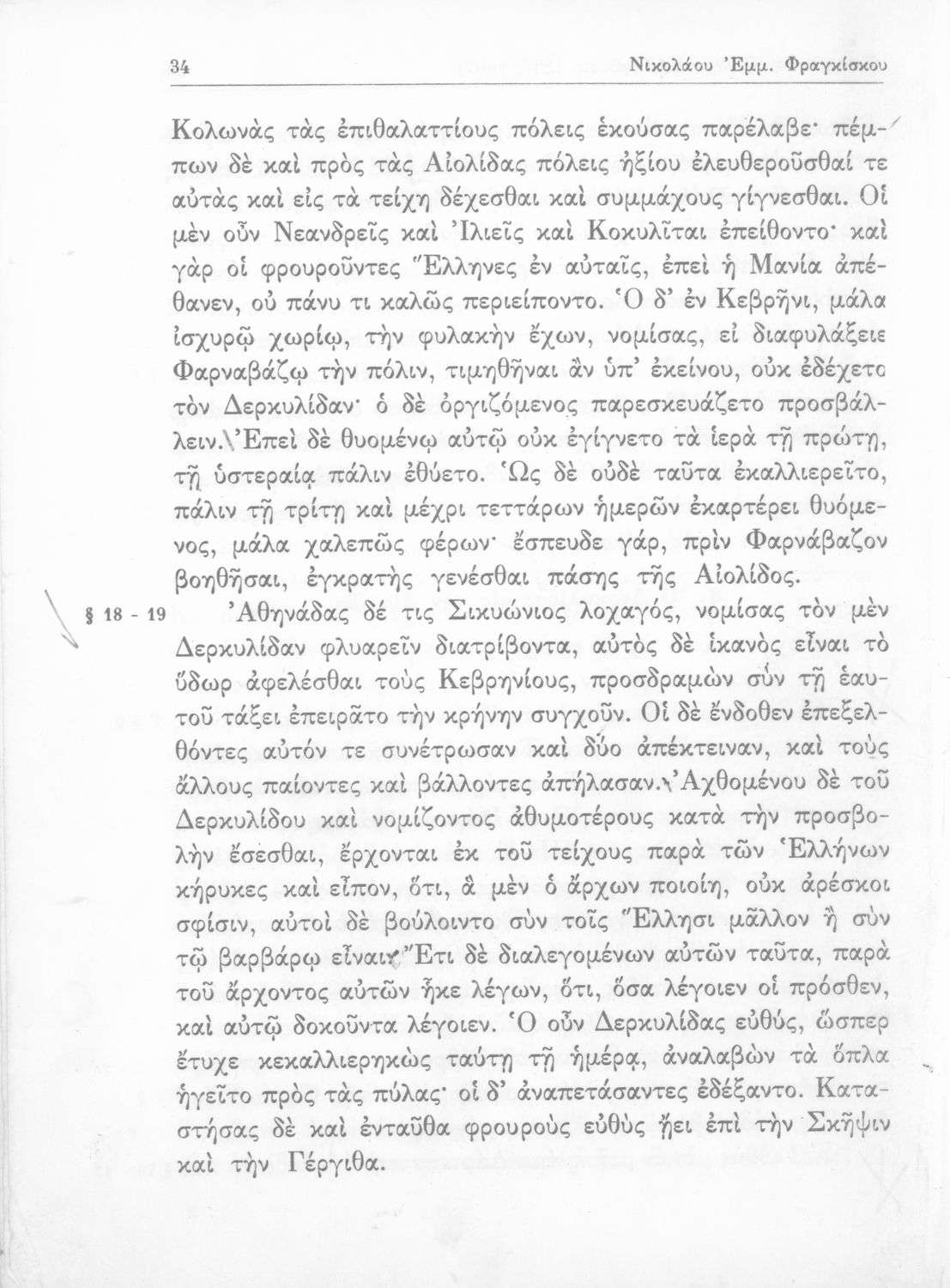 Ξενοφών, Κυριάκος Κοσμάς, Νικόλαος Φραγκίσκος (σχόλια)