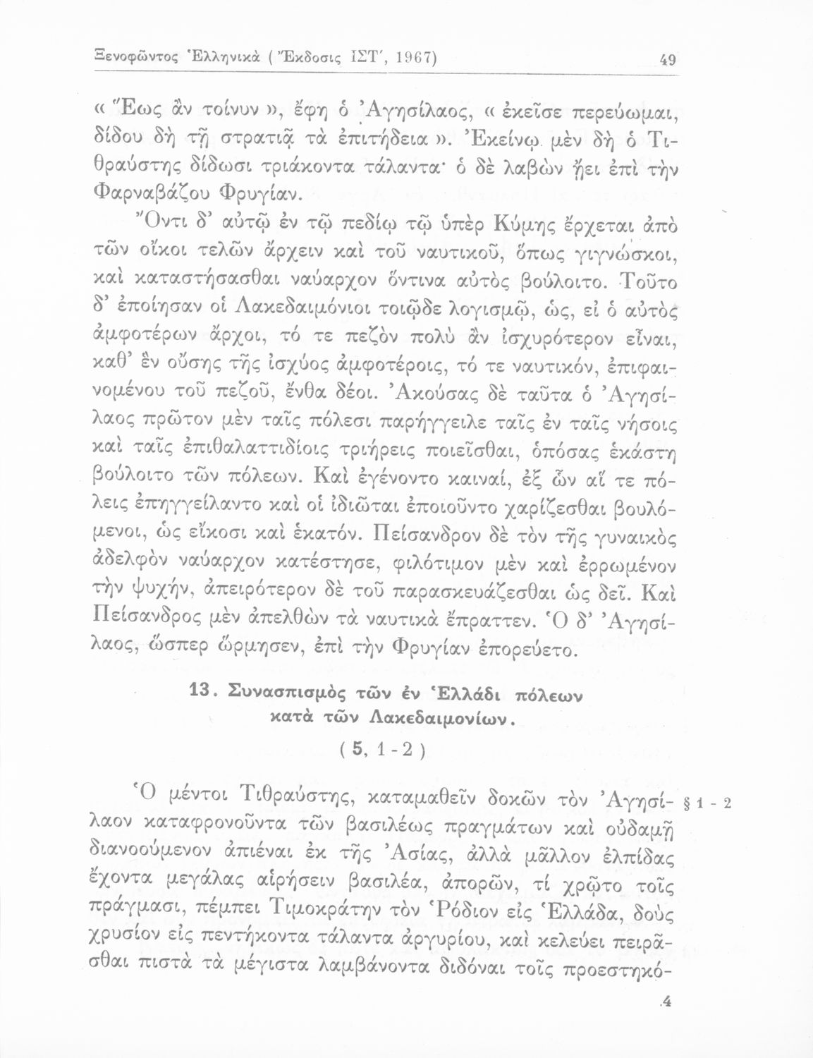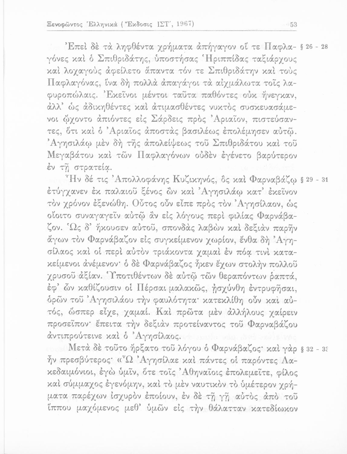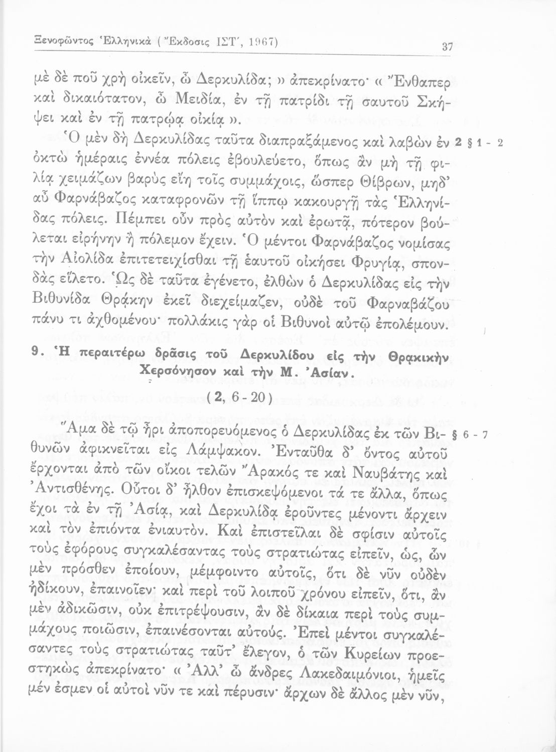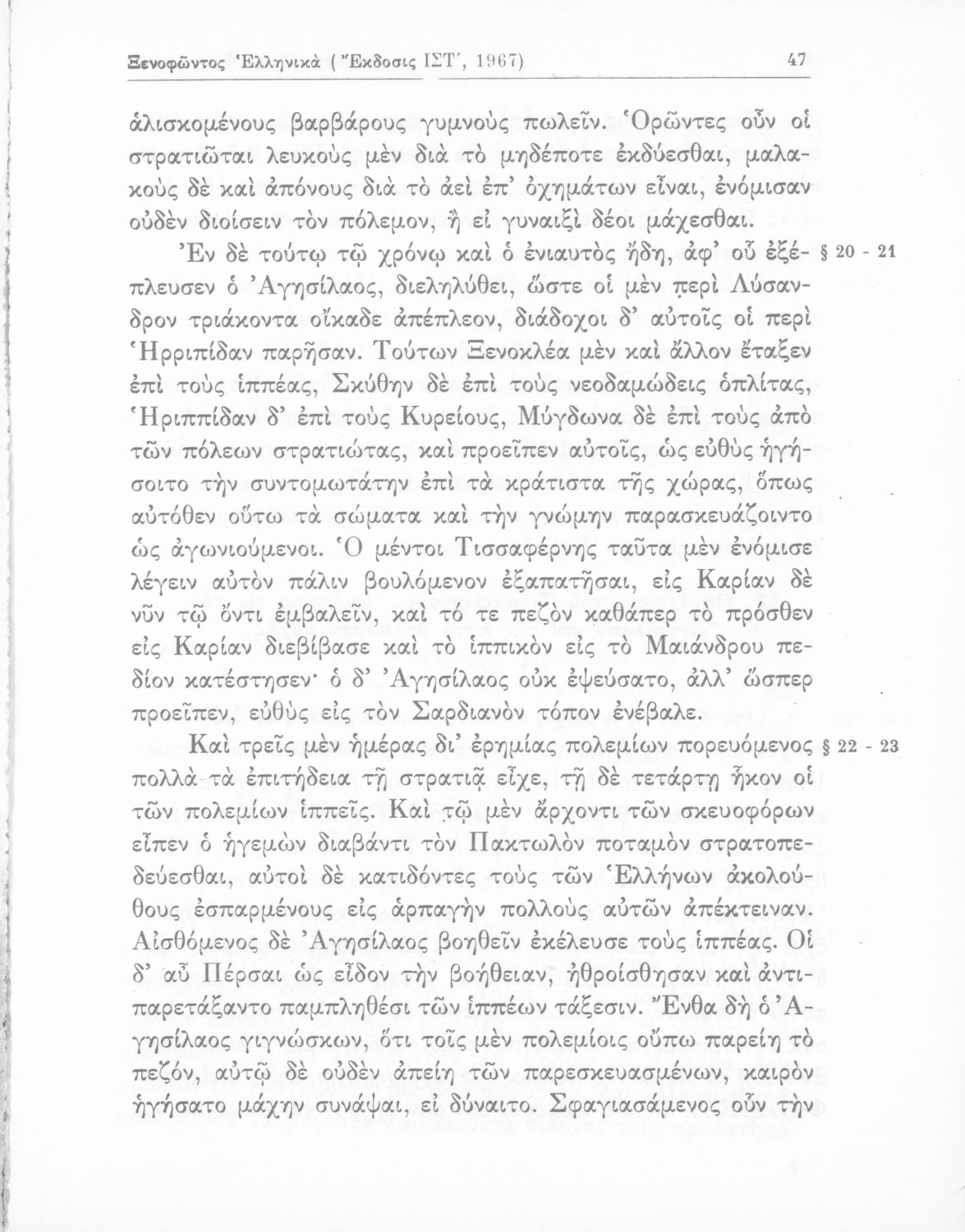 Σχολικό εγχειρίδιο Αρχαίων ελληνικών Α΄ Λυκείου που περιλαμβάνει αποσπάσματα από τα Ελληνικά του Ξενοφώντα, εισαγωγή στη ζωή και το έργο του, ερμηνευτικές σημειώσεις, τοπογραφικούς πίνακες και σχεδιαγράμματα μαχών.